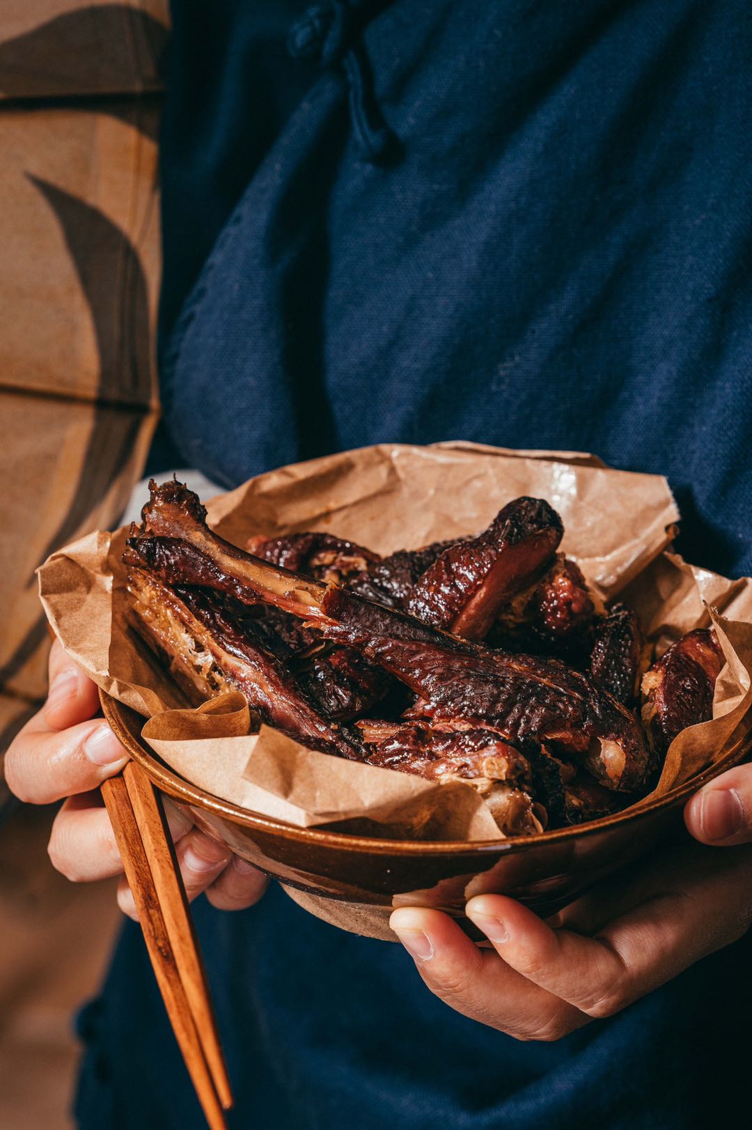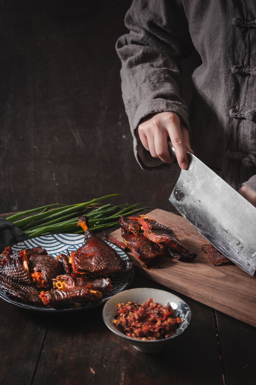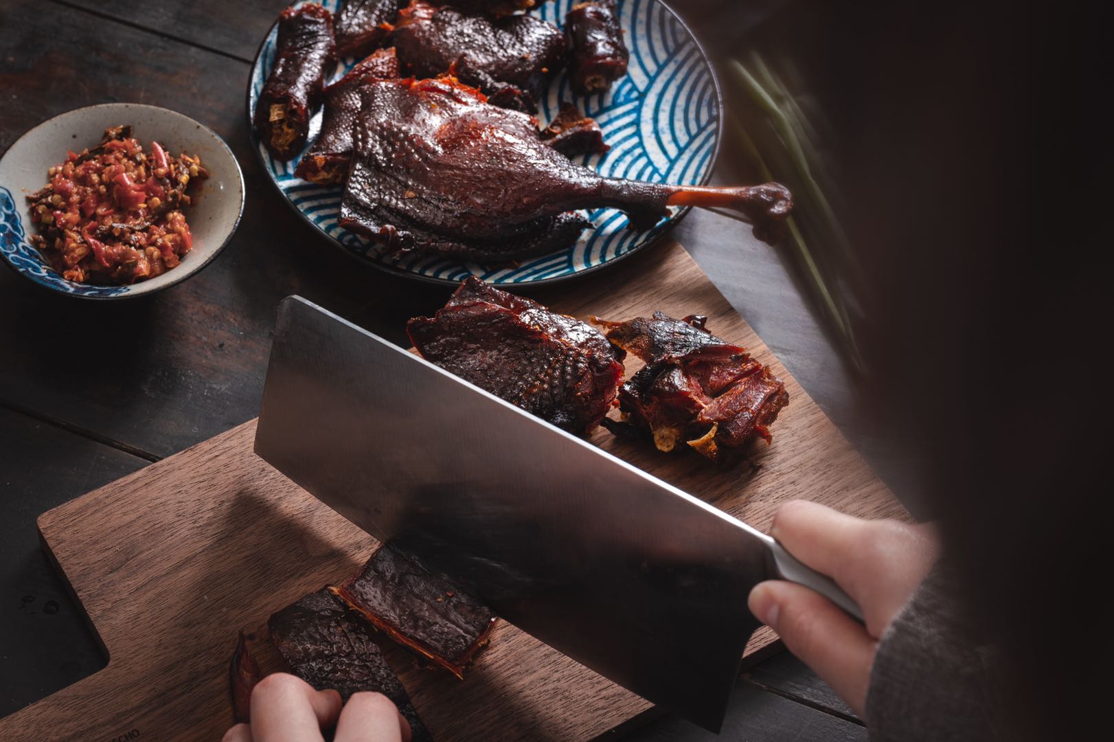 等到秘制之味完全渗入鹅之肌理,再出缸进行晾晒除湿发酵,让香辛料与酱鹅进一步交融,漫长的等待之后,油脂在这过程中融化在皮肉汁水里,酱香与鹅香不分彼此,互相渗透。