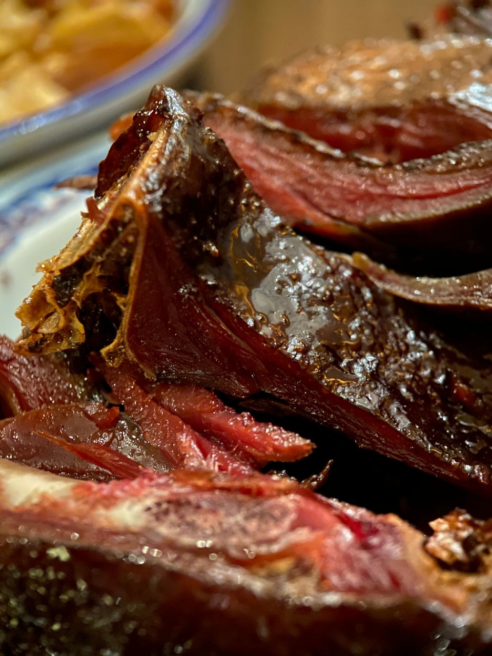 而酱鹅肥瘦相间的部分,则肉酥嫩不烂,肉丰脂美,脂香与汁水在唇齿中流淌四溢,回味无穷。