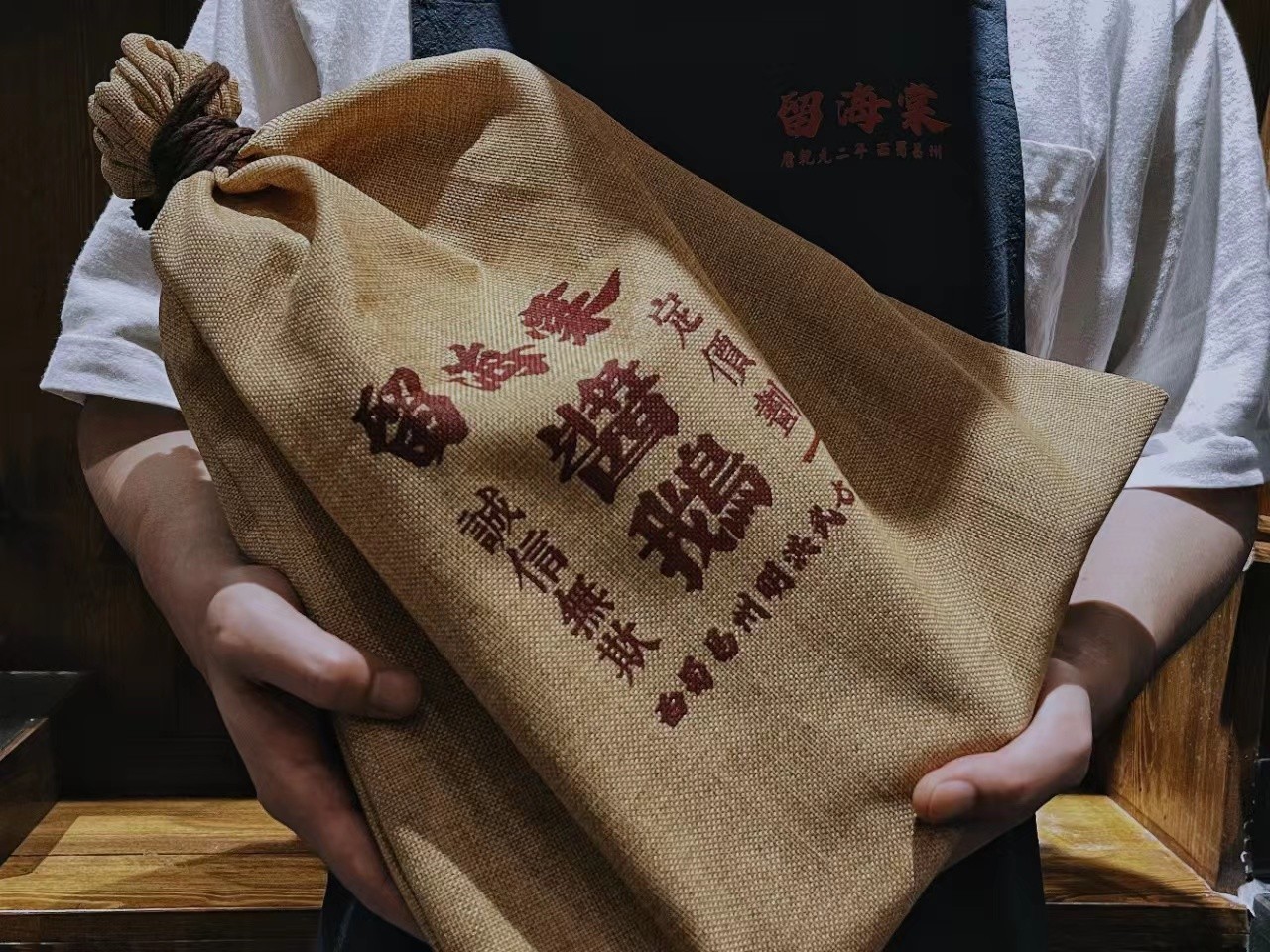 “留海棠”酱鹅内用真空包装,外面用牛皮纸袋或粗麻袋封裹。