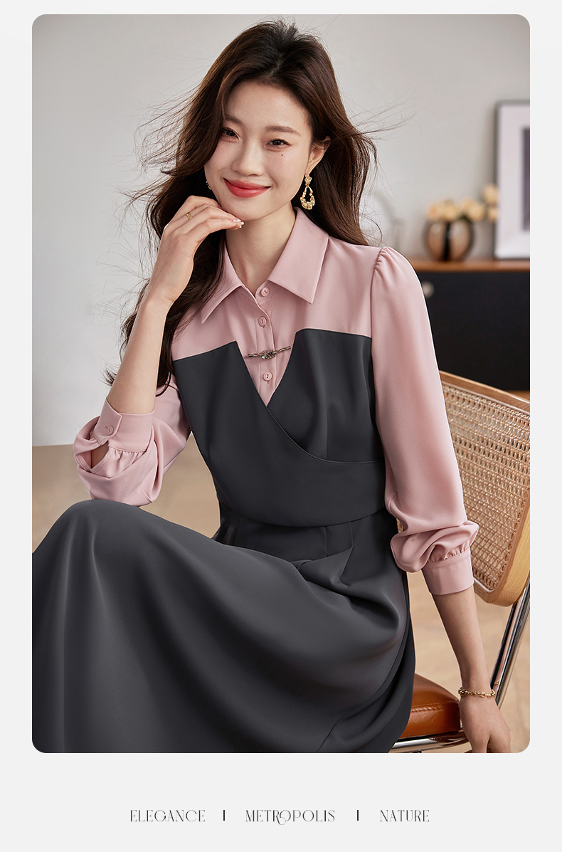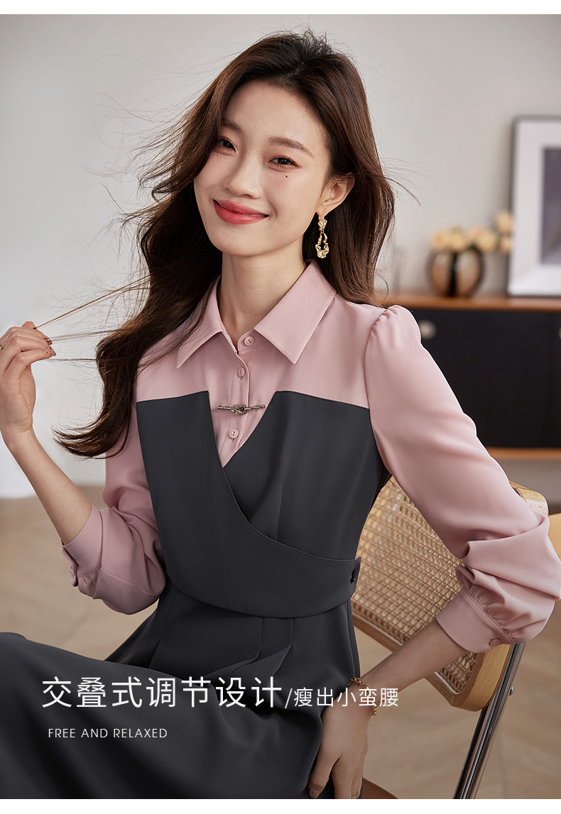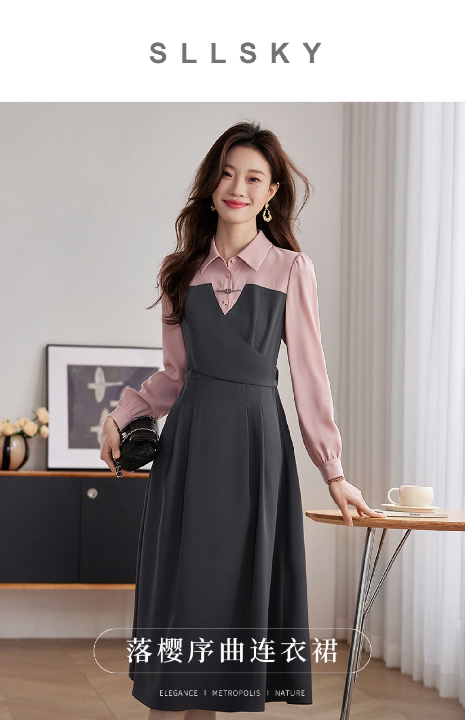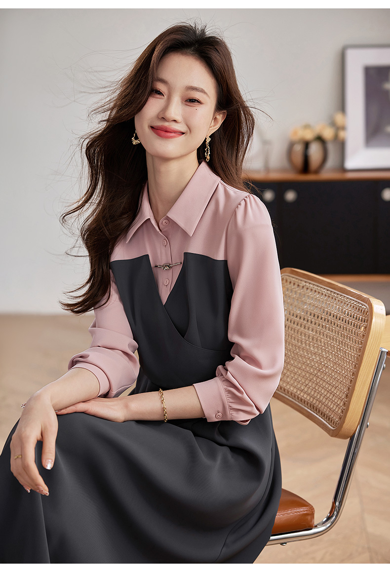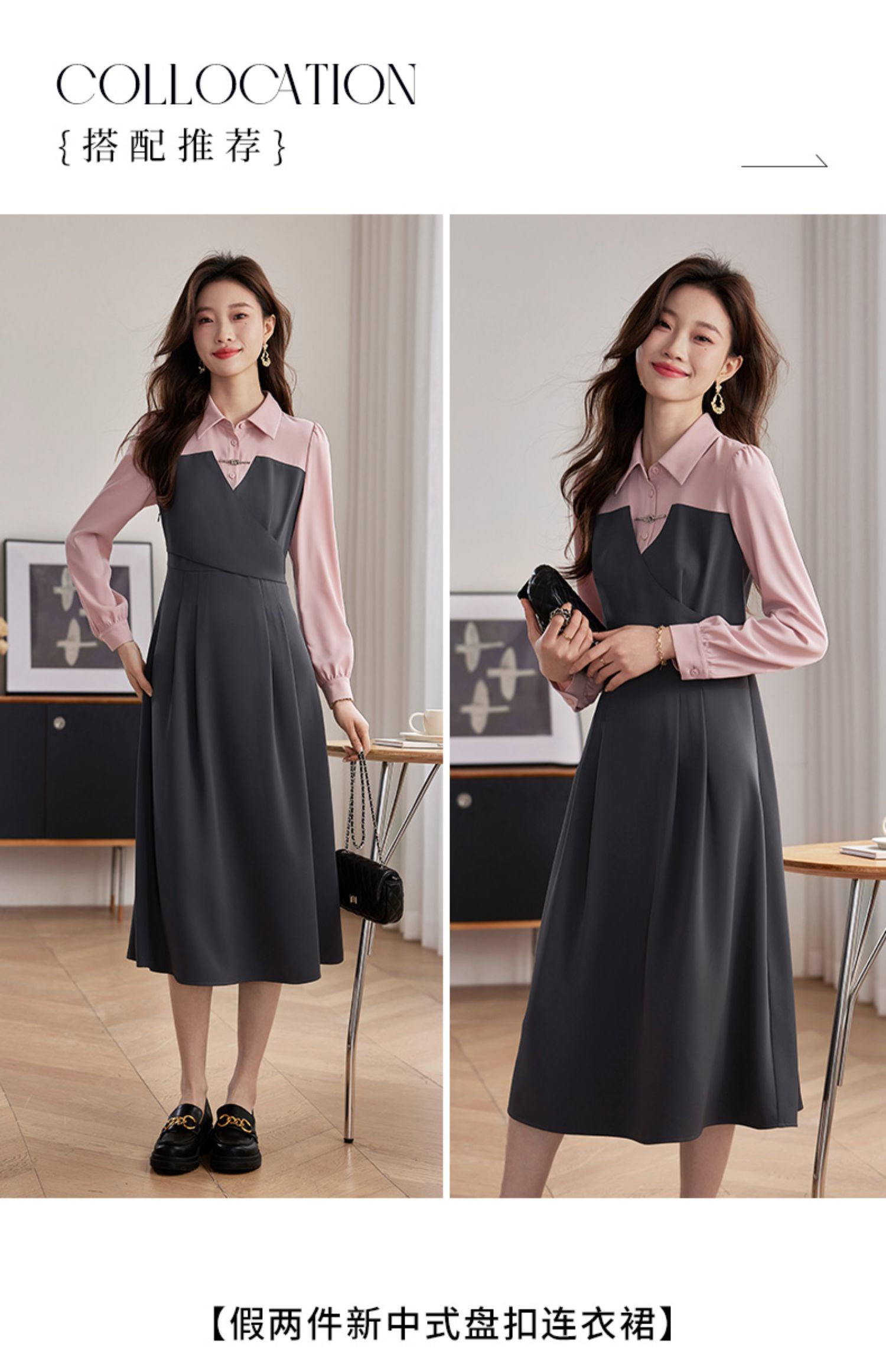 【专属特价】熙世界假两件法式衬衫裙女2025早秋款新中式盘扣POLO领连衣裙