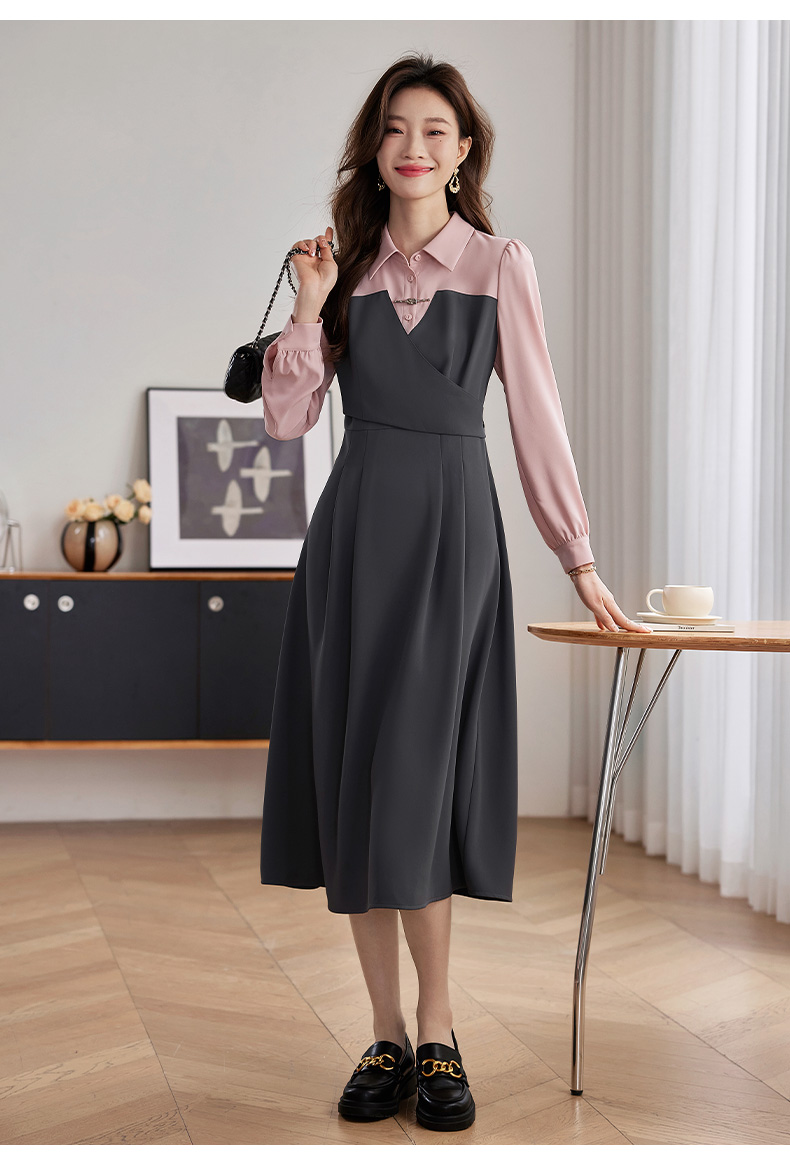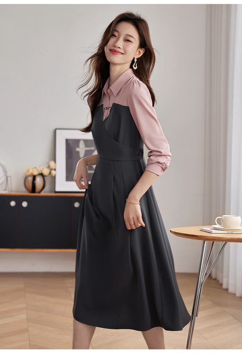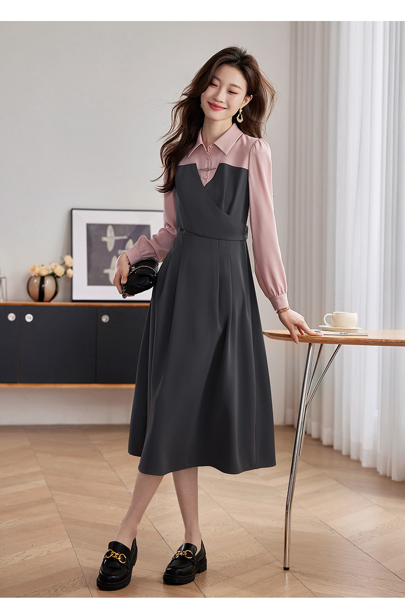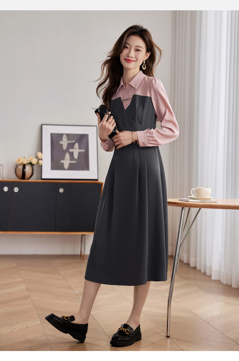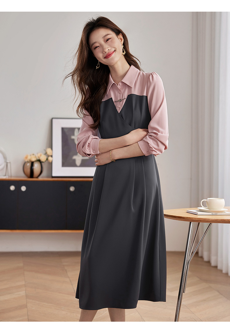 【专属特价】熙世界假两件法式衬衫裙女2025早秋款新中式盘扣POLO领连衣裙