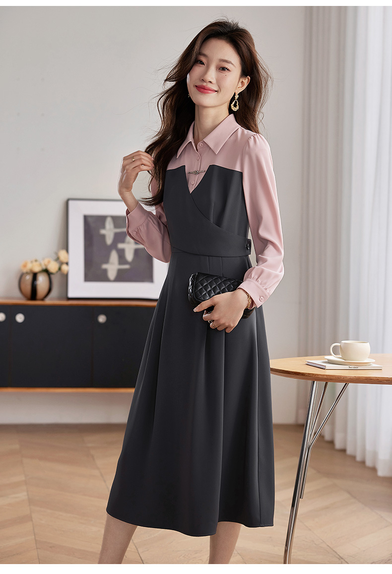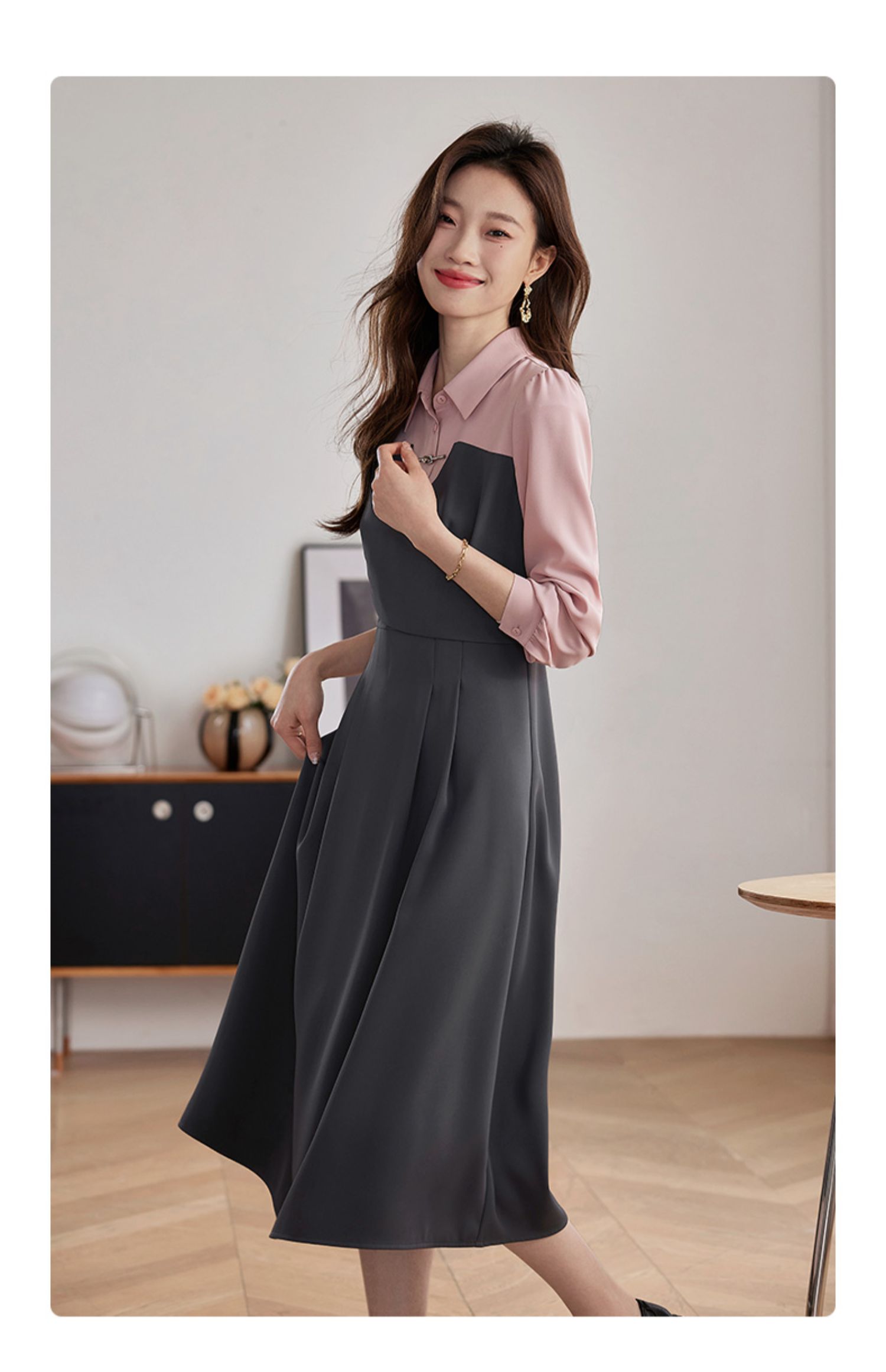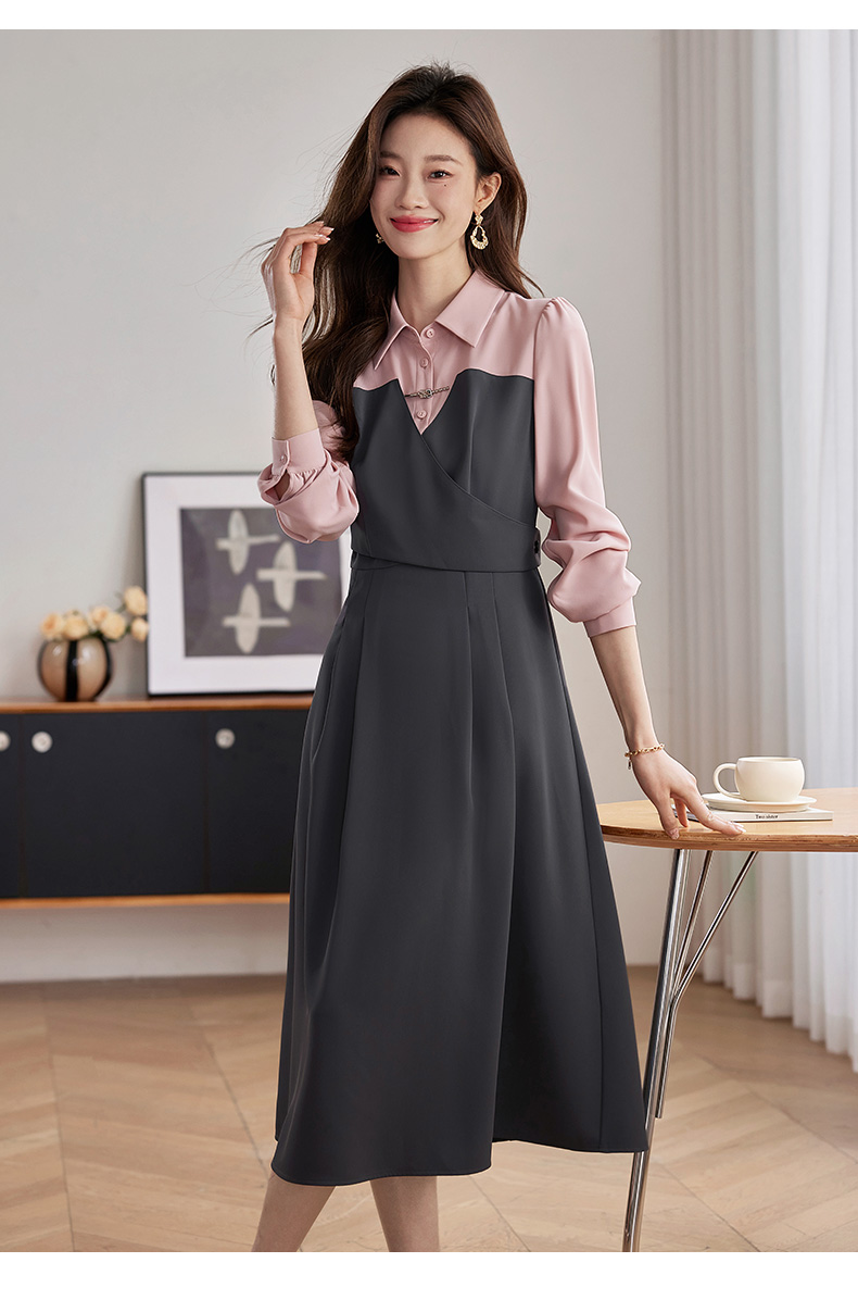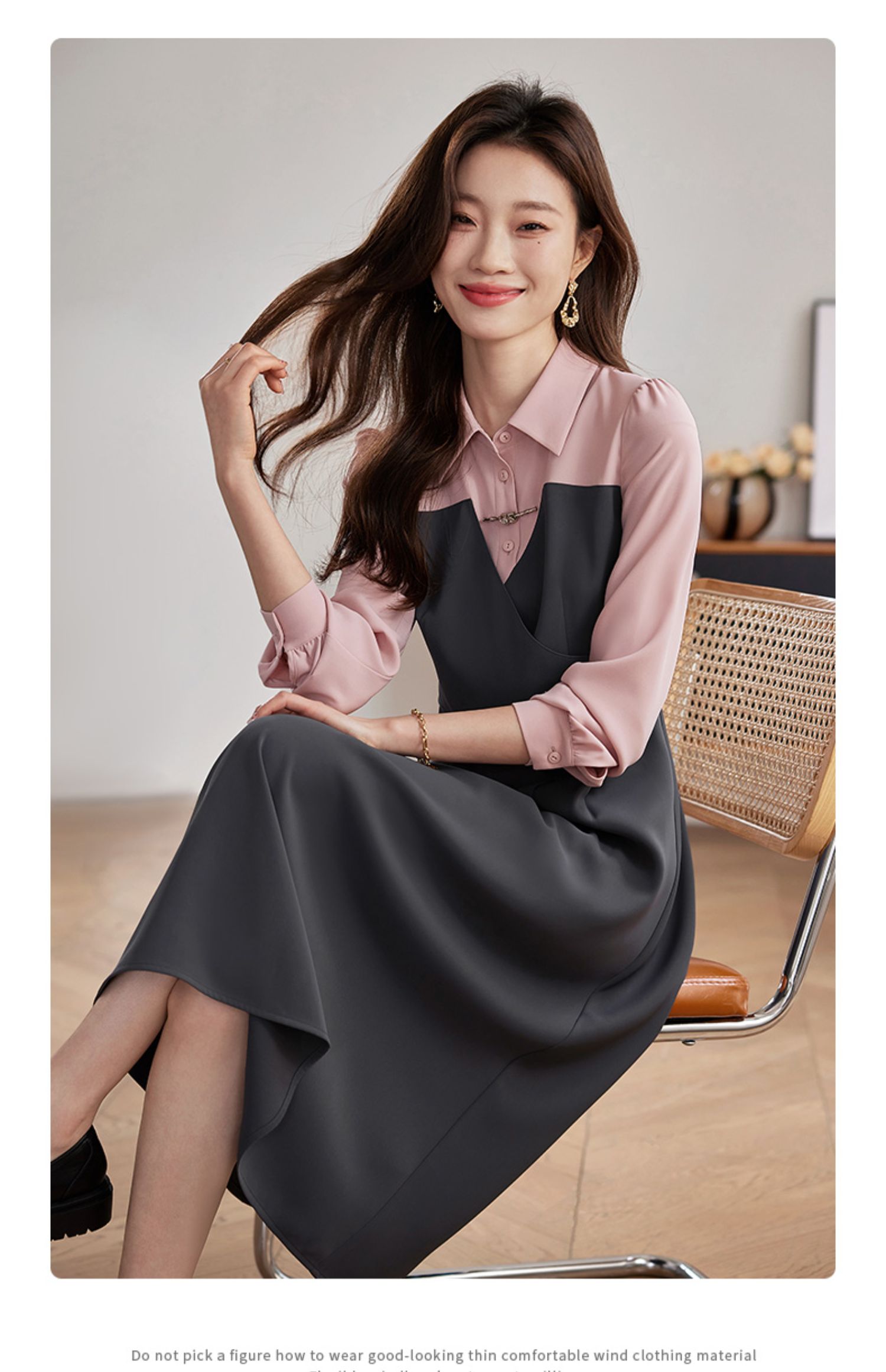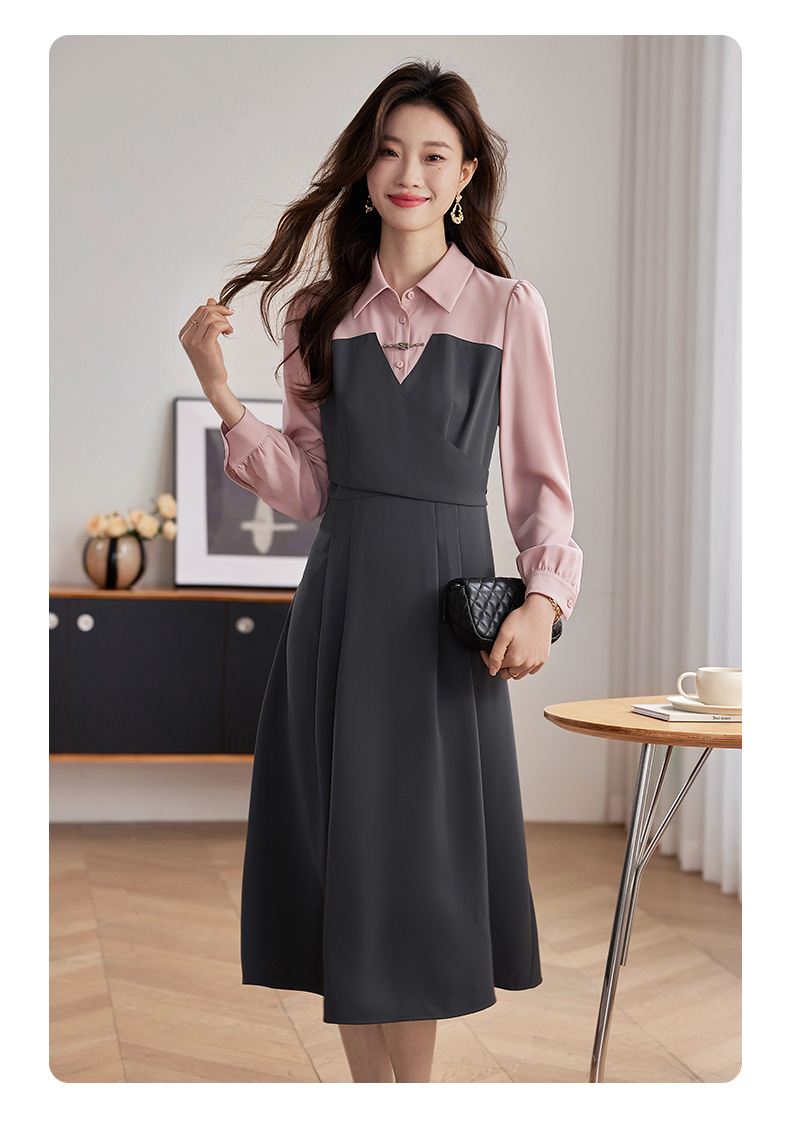 【专属特价】熙世界假两件法式衬衫裙女2025早秋款新中式盘扣POLO领连衣裙