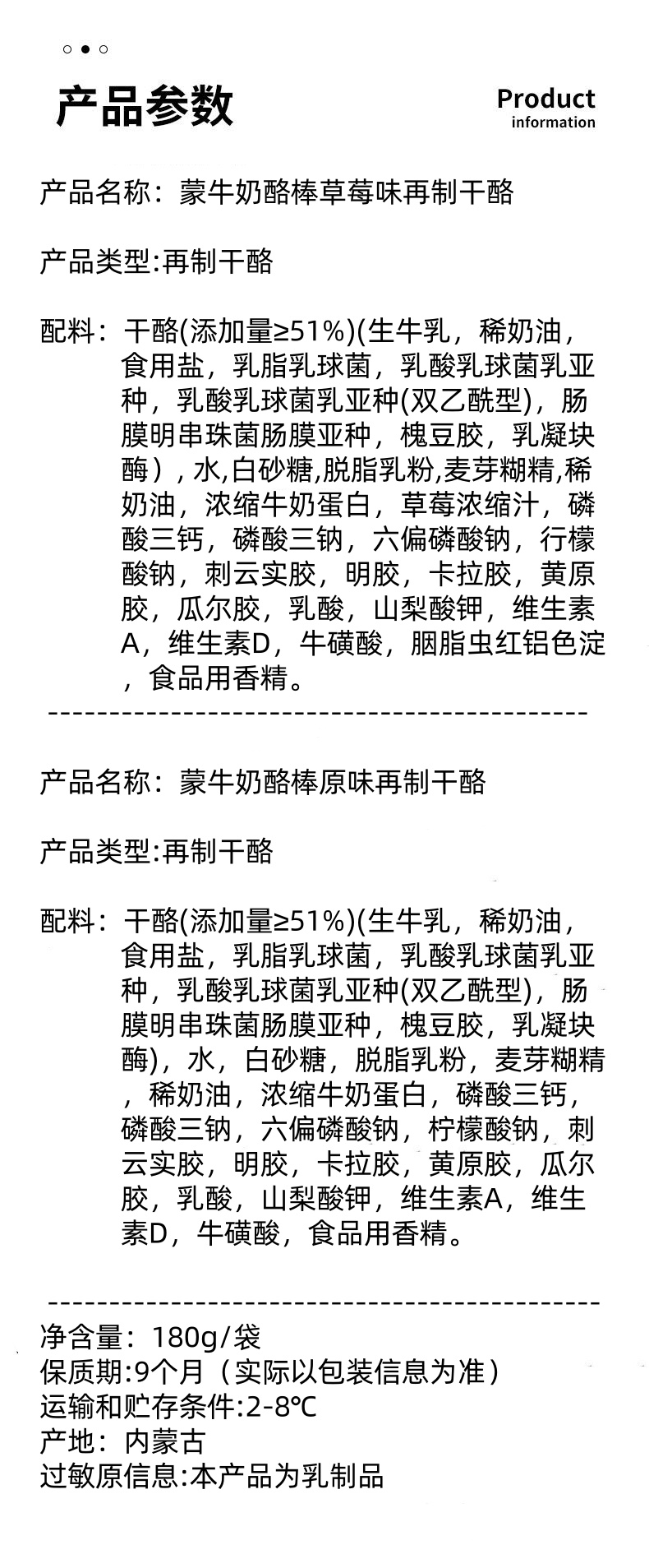 蒙牛奶酪棒原味|草莓味再制干酪180g