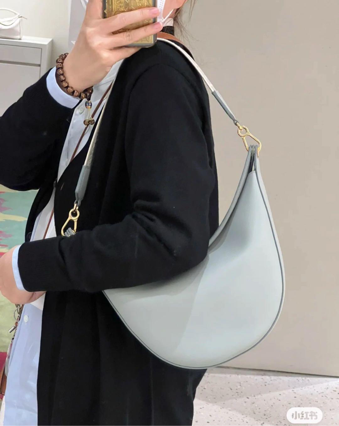 【商品详情】正品二手 罗意威 浅蓝色 牛皮 大号 半月腋下包🤽🏻♂️97新 22×27 配件:肩带 防尘袋 吊牌。包口配皮轻微使用感 包面轻微使用痕迹