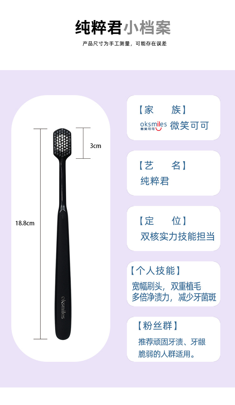 「8支装!绵密洁净」纯粹君宽头软毛牙刷 黑白简洁成人现货牙刷口腔护理 商品图3
