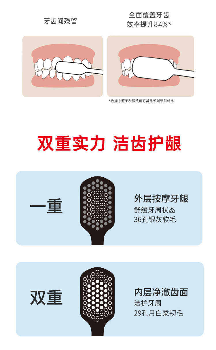 「8支装!绵密洁净」纯粹君宽头软毛牙刷 黑白简洁成人现货牙刷口腔护理 商品图4