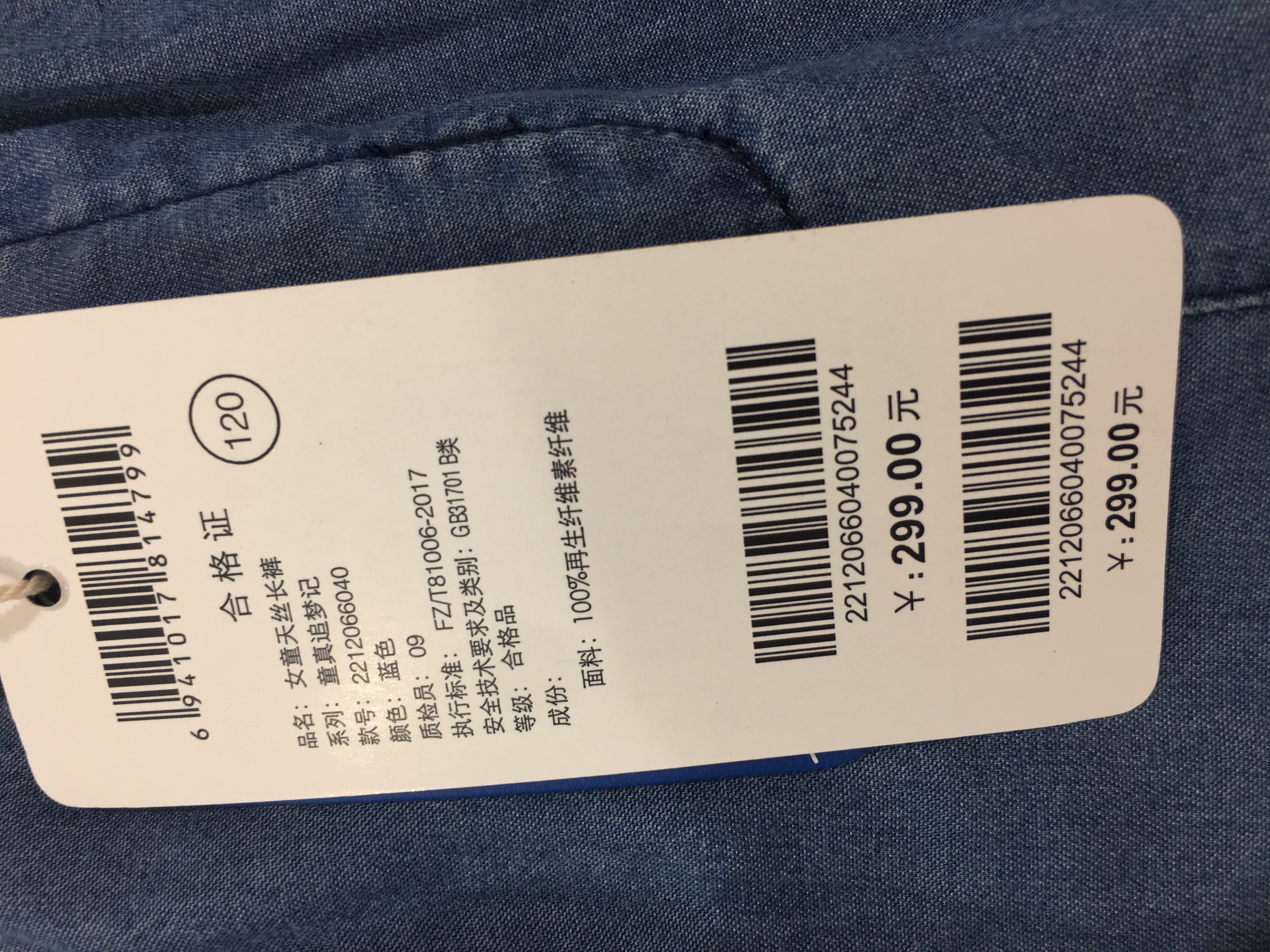 NEEZA乐鲨女童天丝长裤2212066040