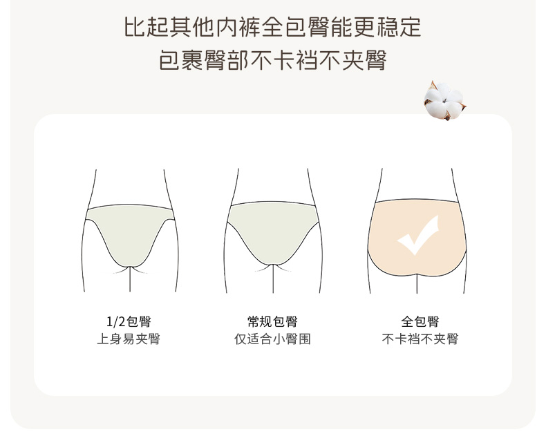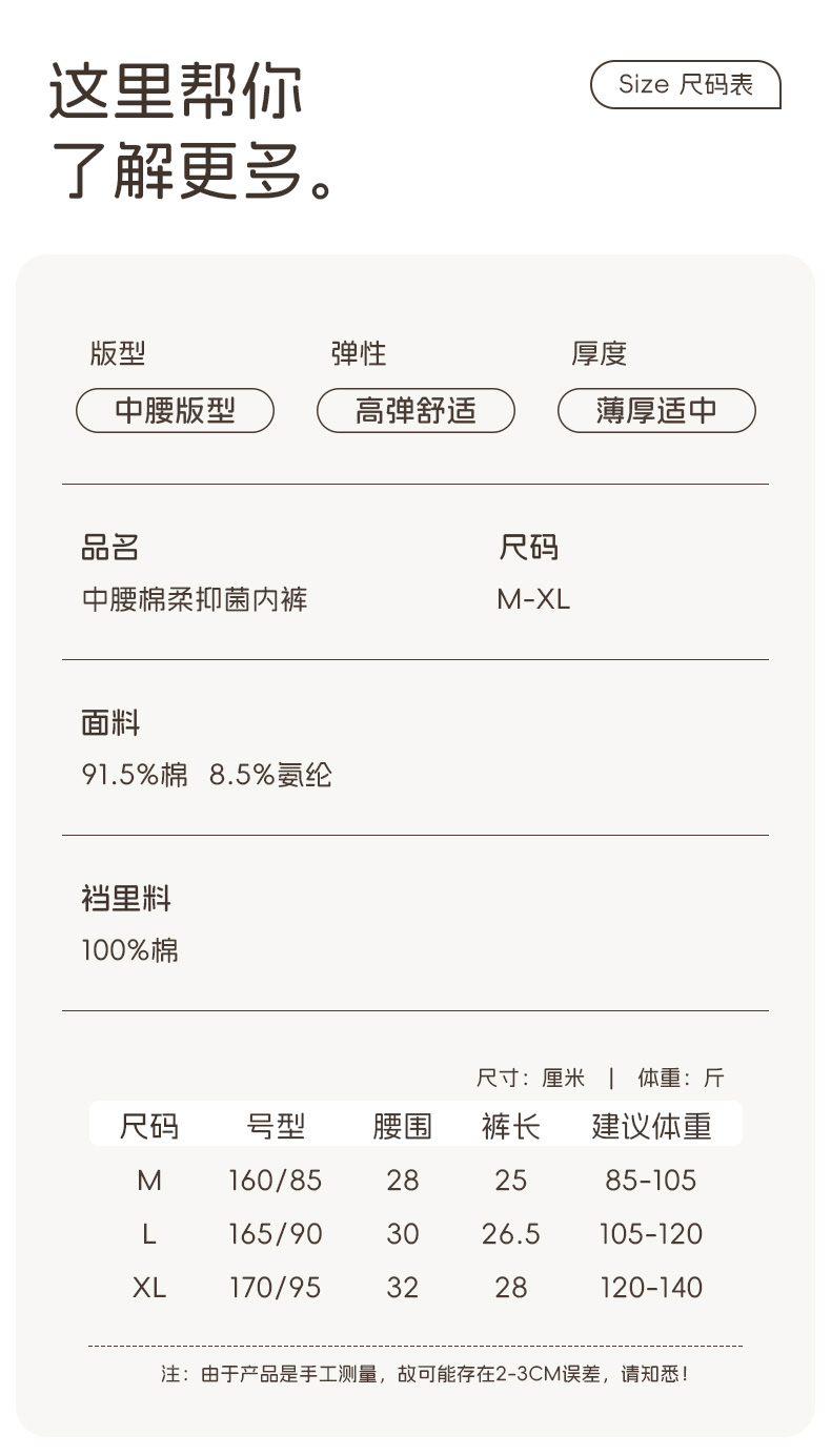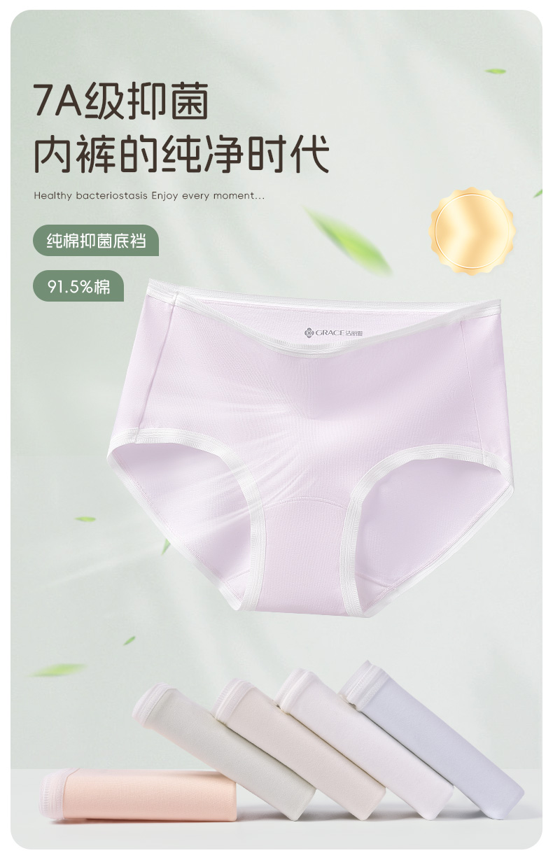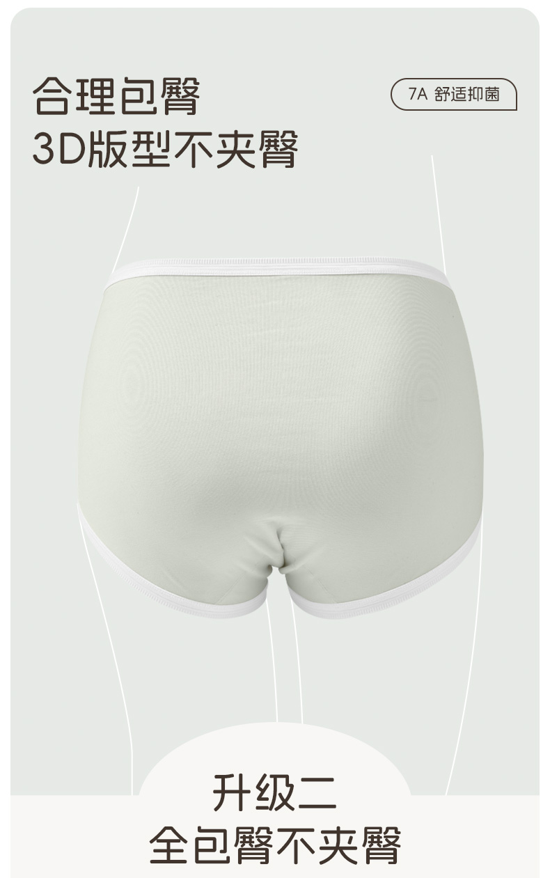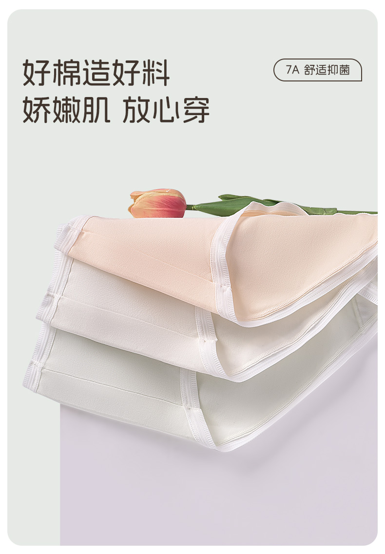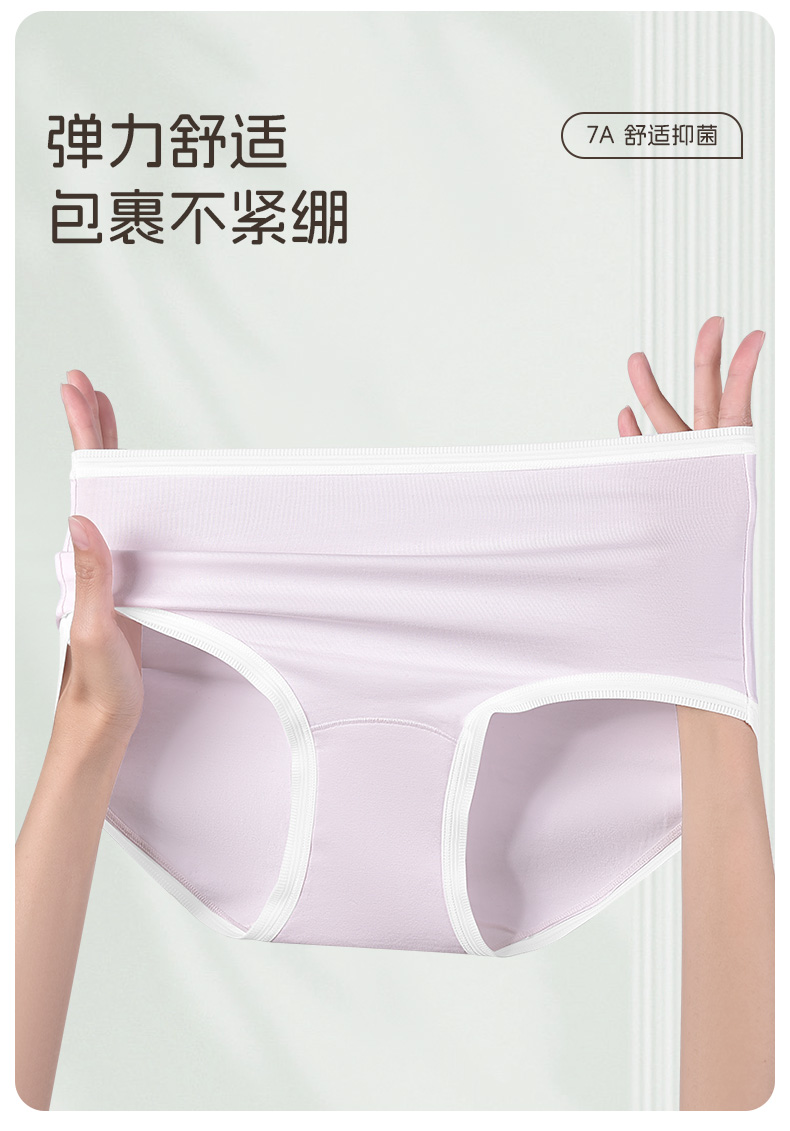 【7A抑菌】洁丽雅3条装中腰纯棉女士内裤高弹舒适亲肤透气三角裤
