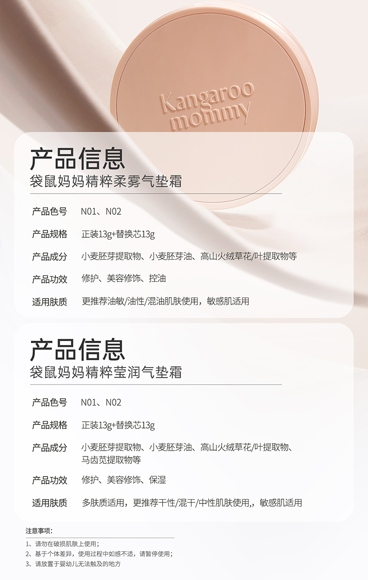 【气垫霜】 油皮/干皮适用 出色遮瑕 12H持妆 水润服帖不卡粉 精粹柔雾/莹润气垫霜13g