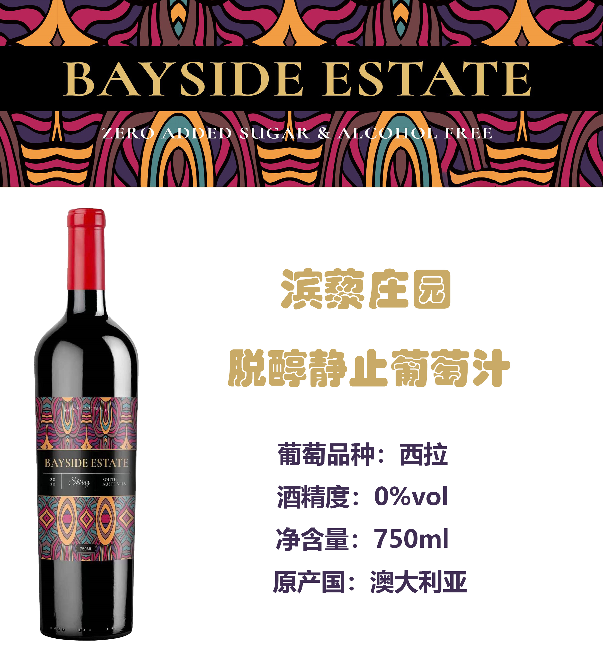 澳洲原瓶进口滨黎庄园零度脱醇静止葡萄汁