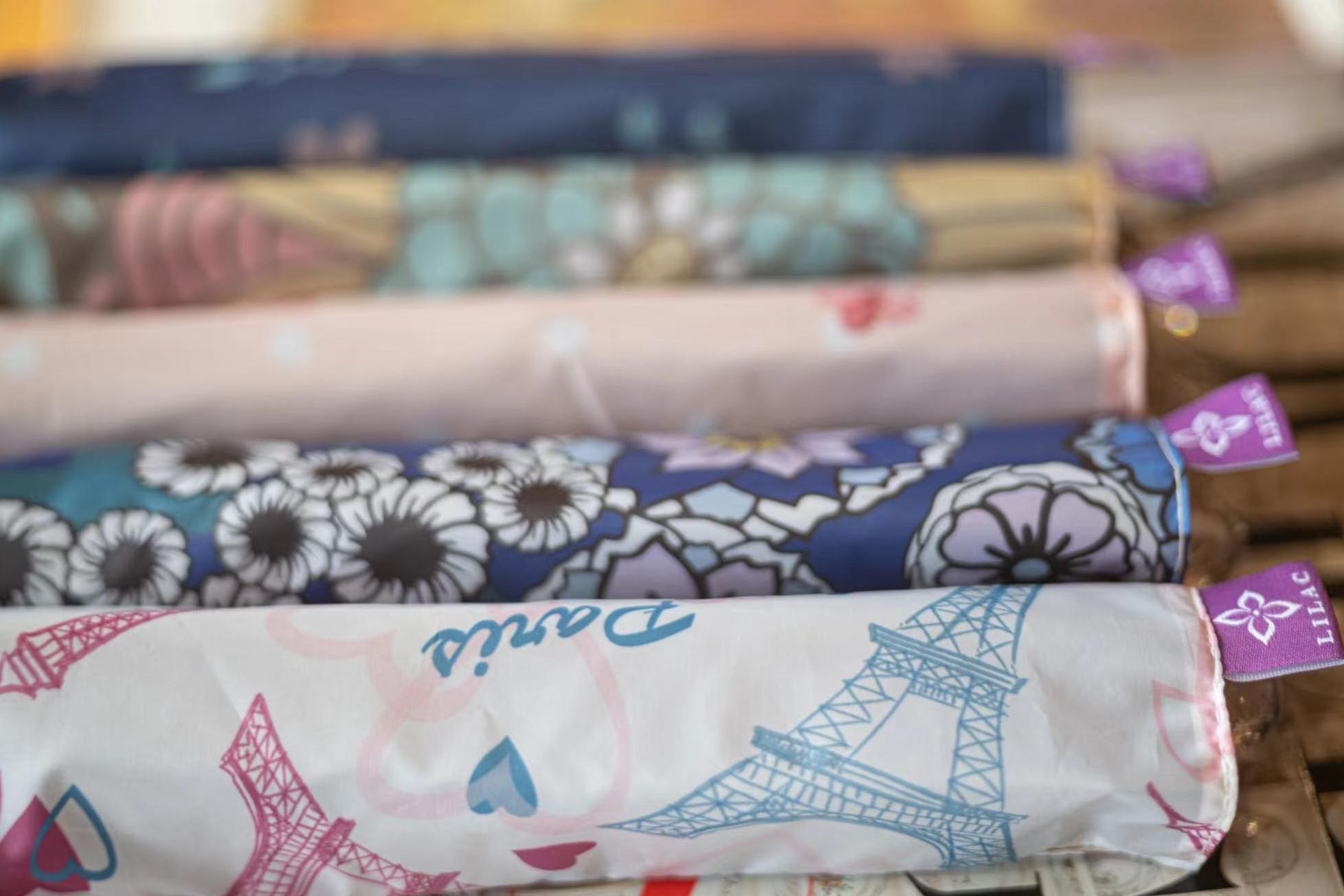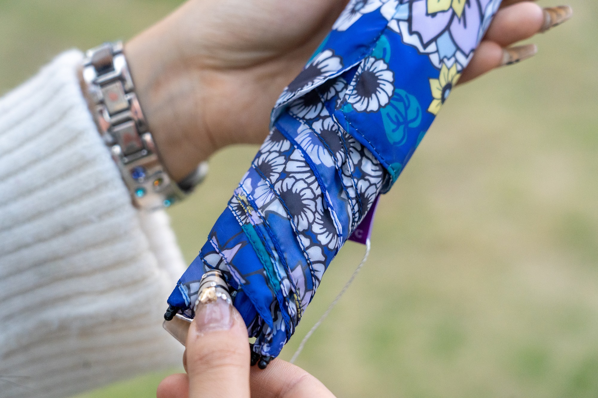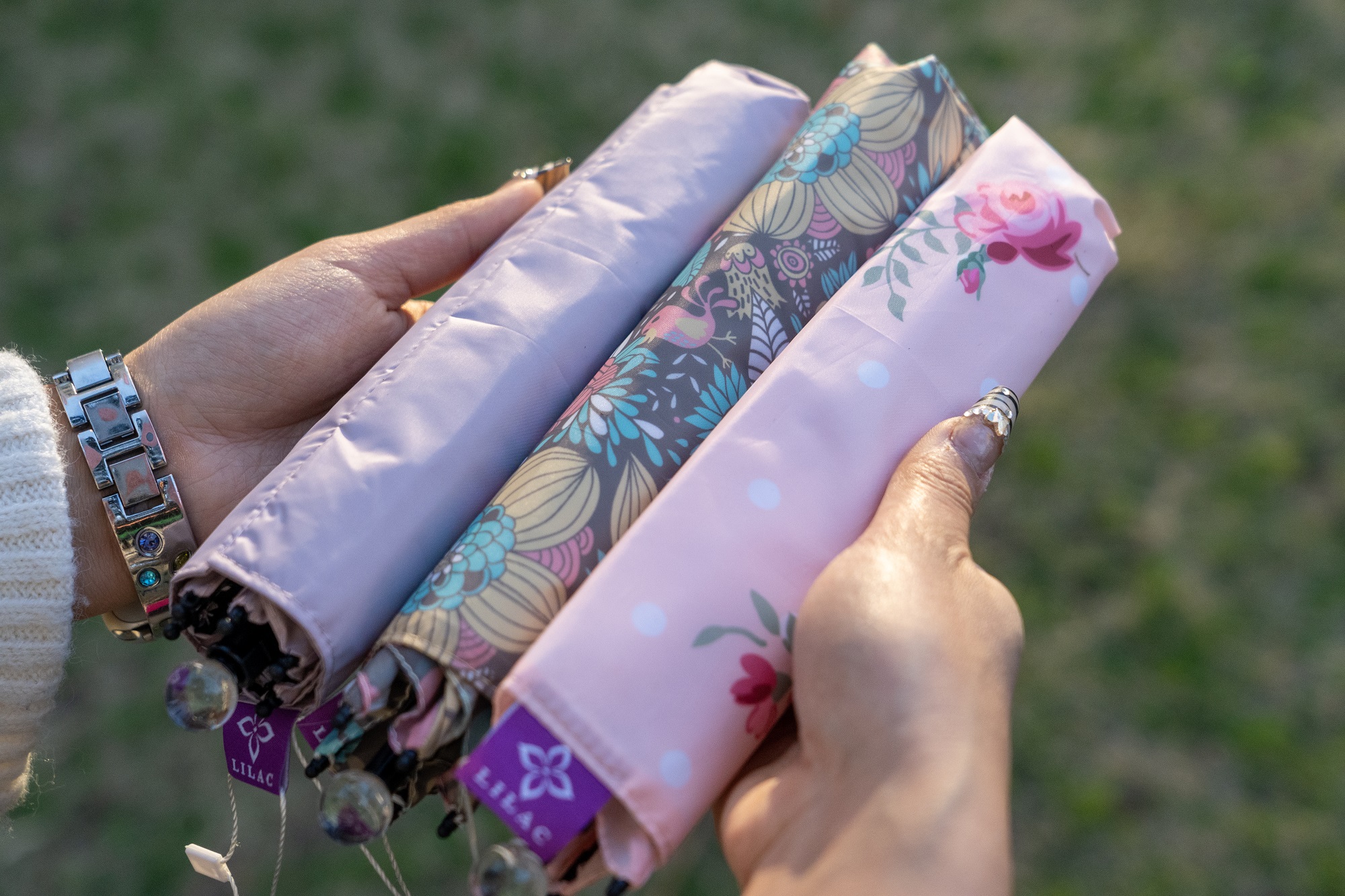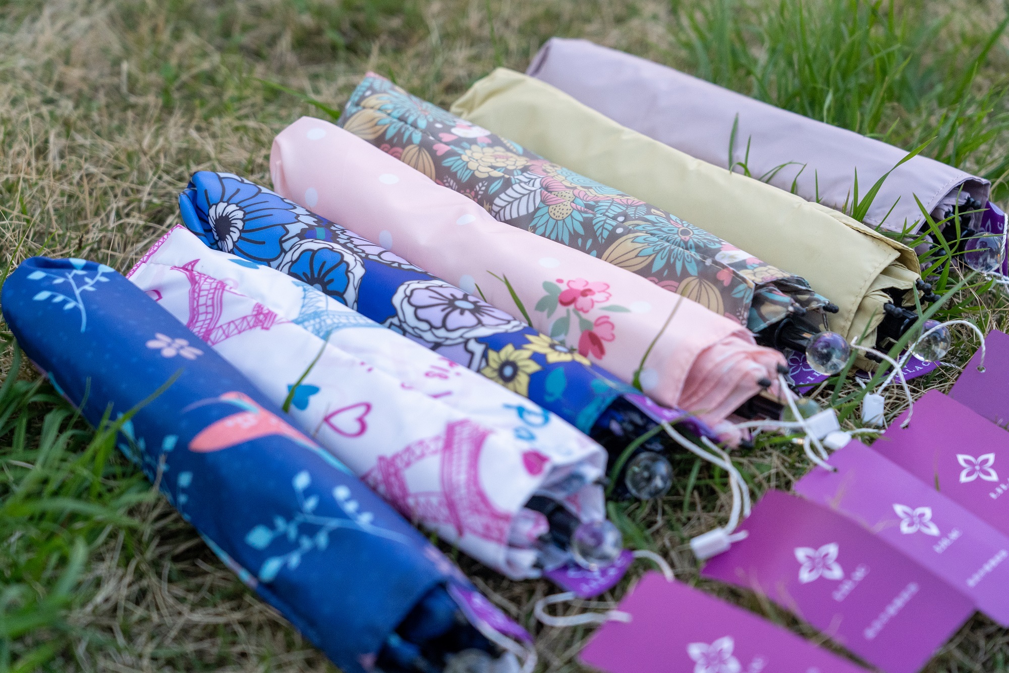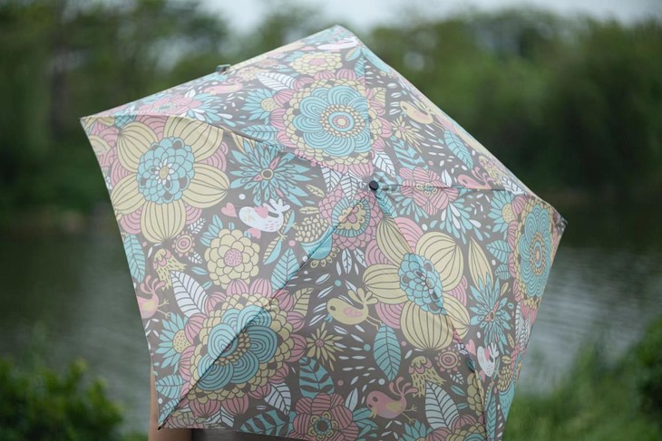 “印花伞布的5款花色都来自海外平面设计师原创设计,紫丁香独享版权,采用数码印花技术,整体颜值、质感都在线。”贾勇表示,伞布密度也增大了,重量增加了一些,印花羽毛伞的重量大约是87g一把。