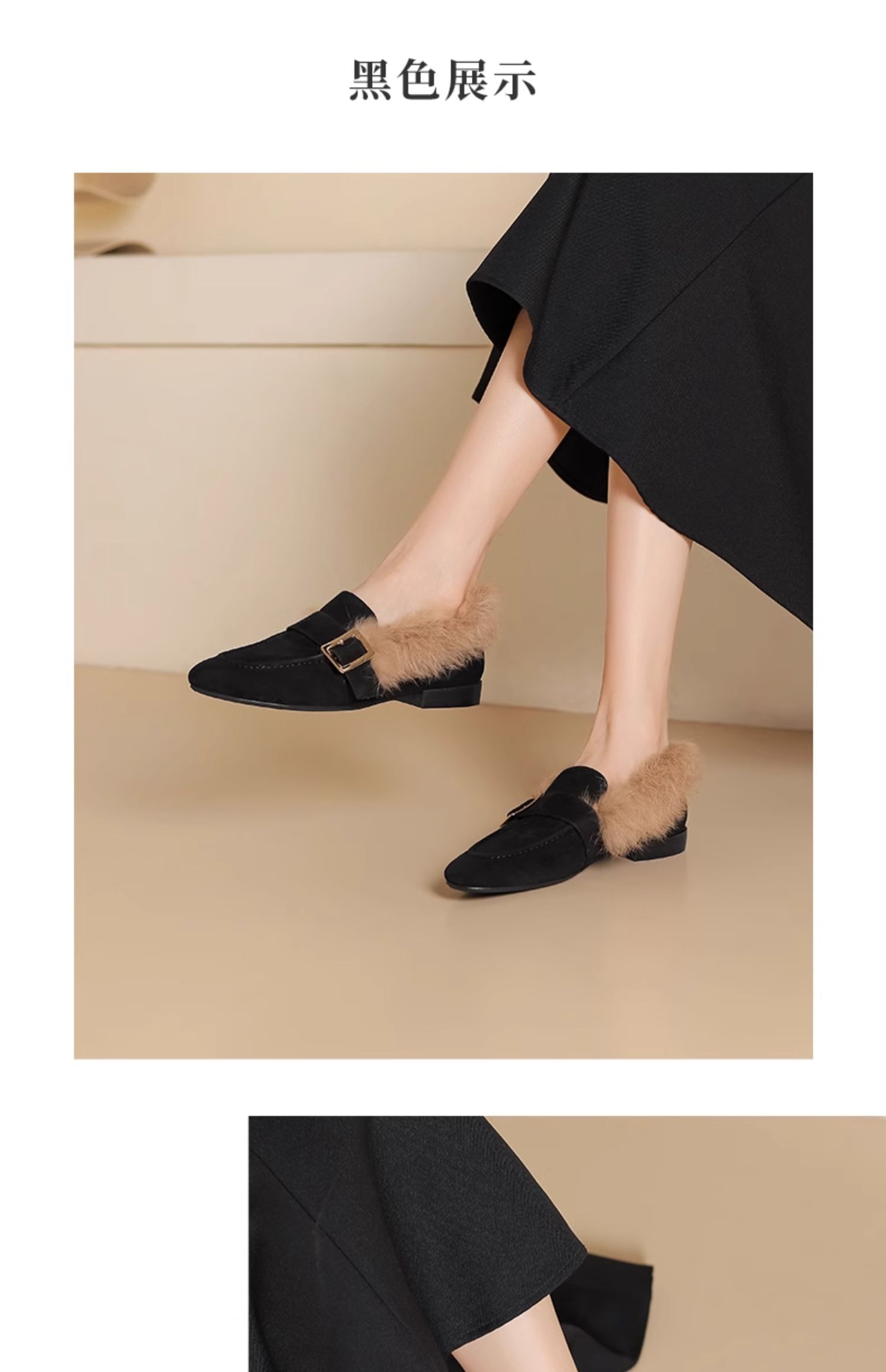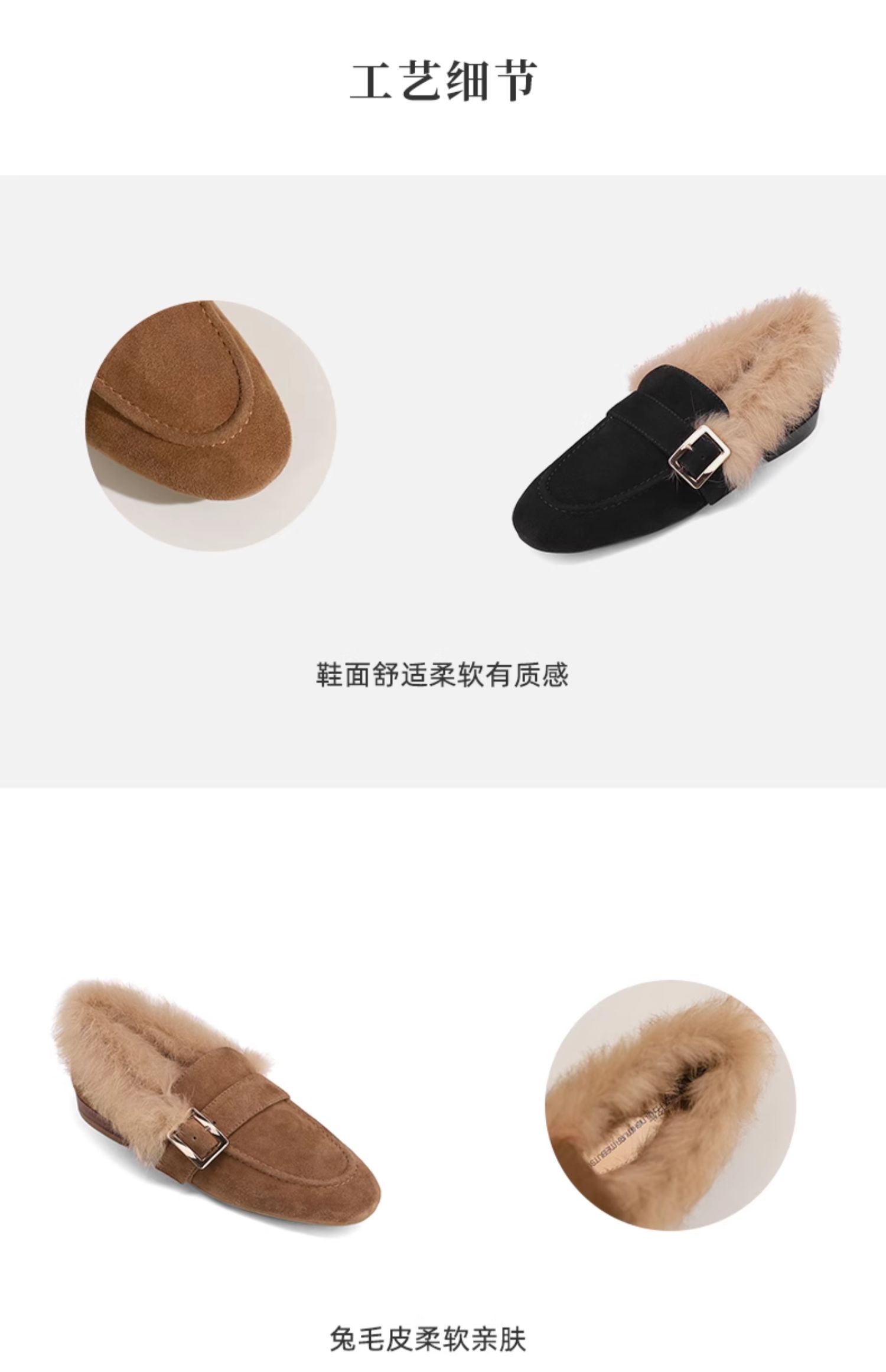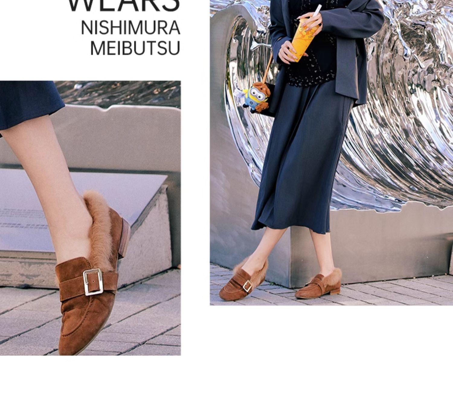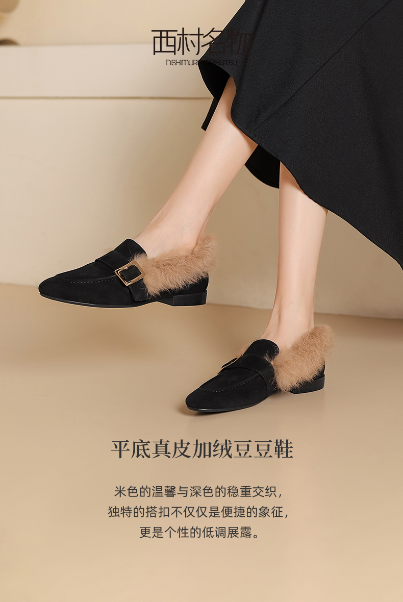 西村名物2024新款女秋冬季外穿高级感厚底一脚蹬小香风加绒毛毛鞋T24DM46661