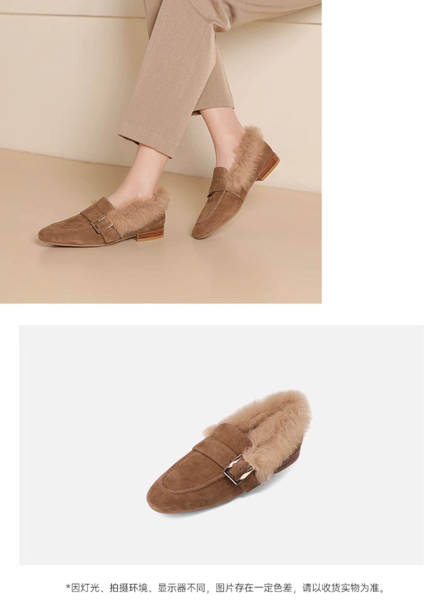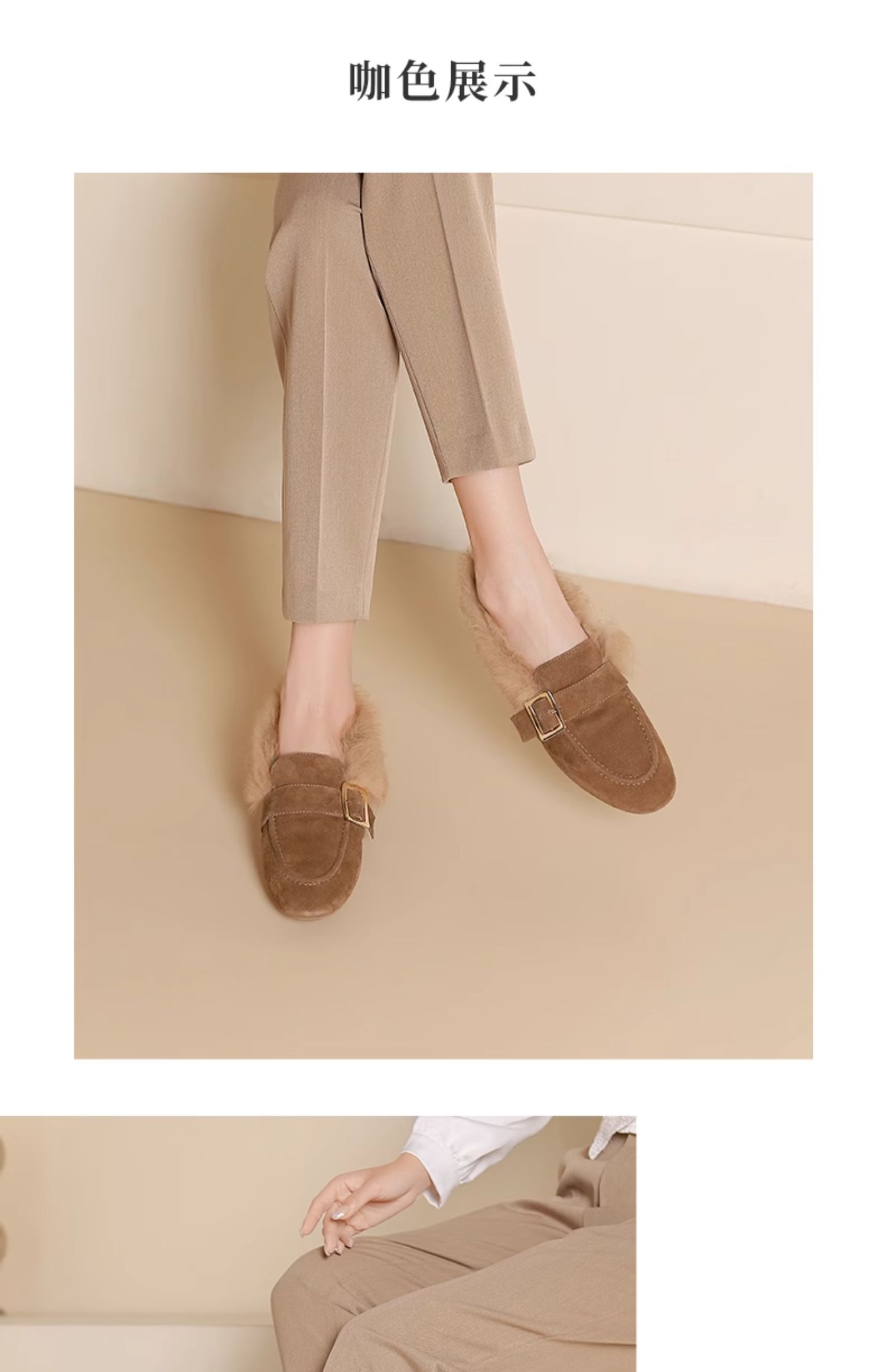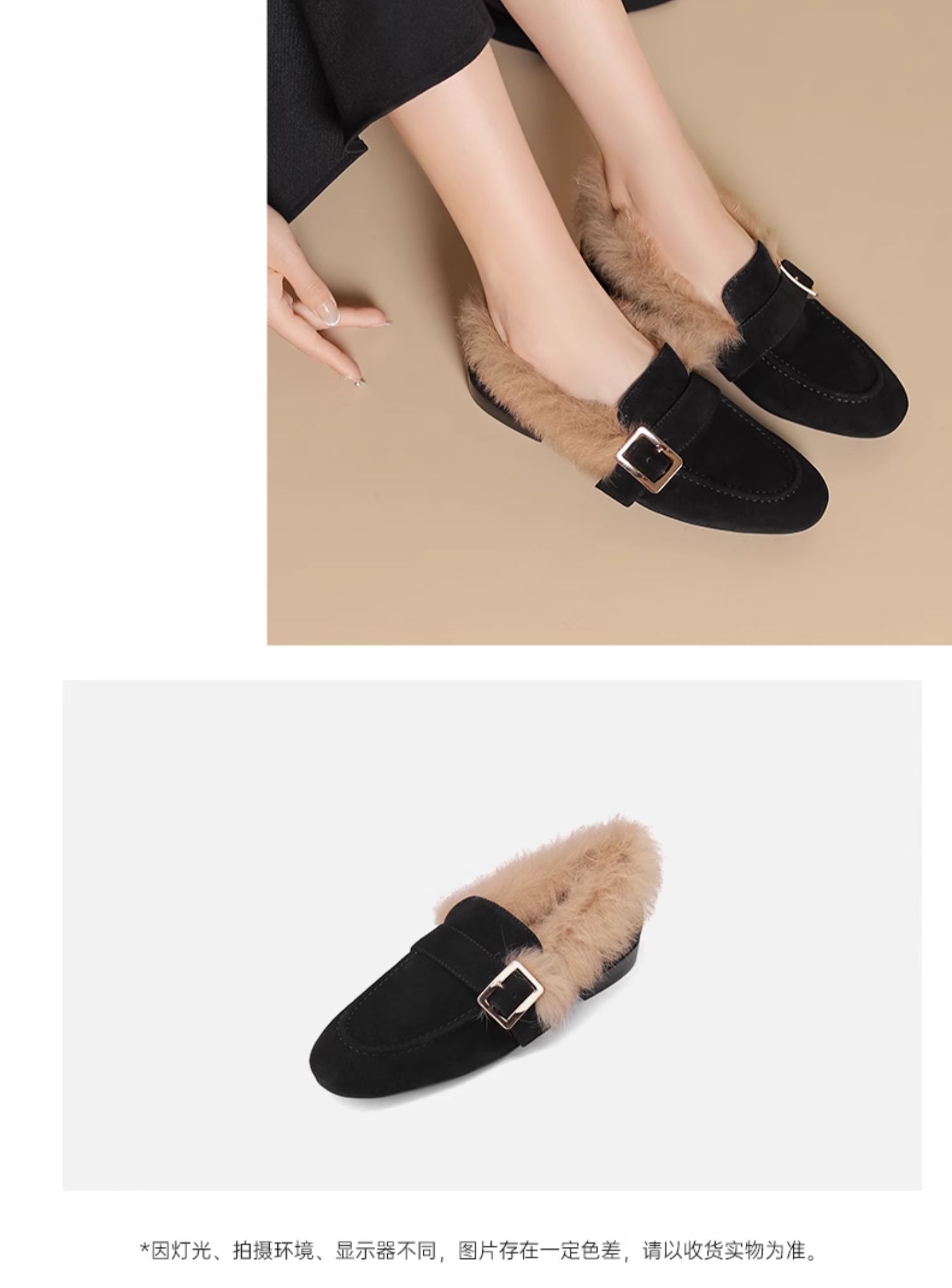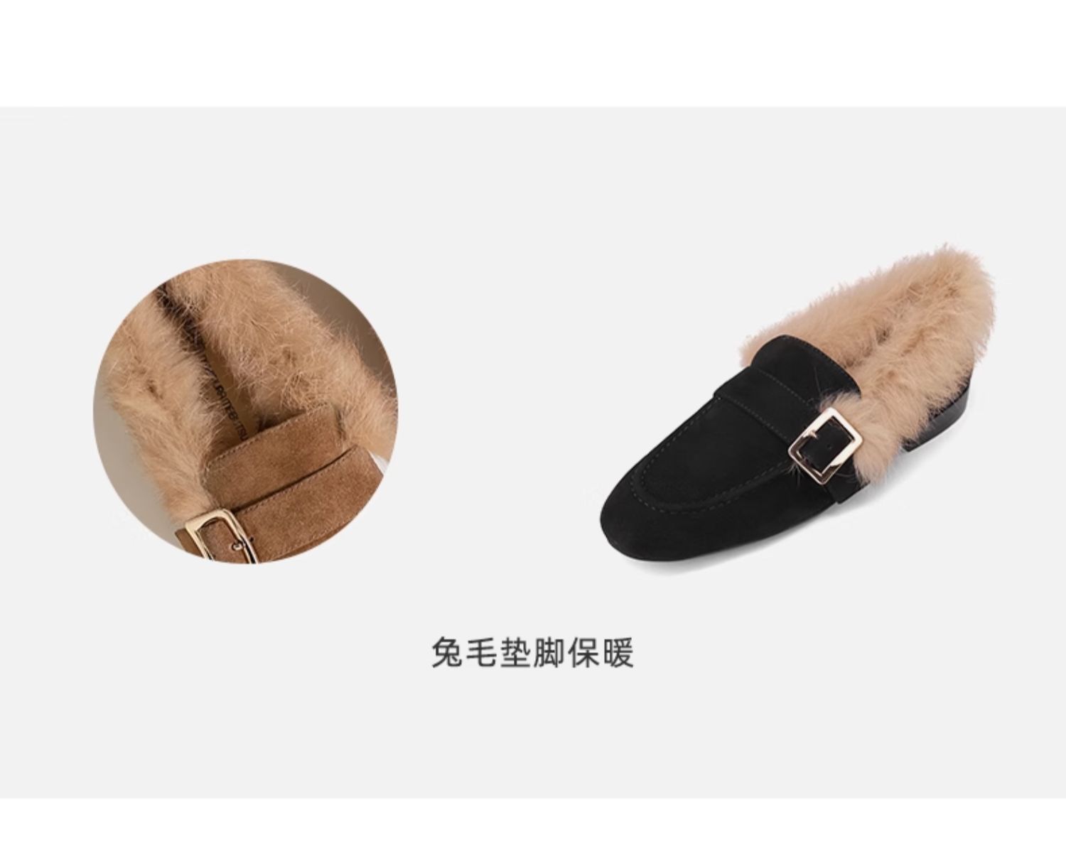 西村名物2024新款女秋冬季外穿高级感厚底一脚蹬小香风加绒毛毛鞋T24DM46661