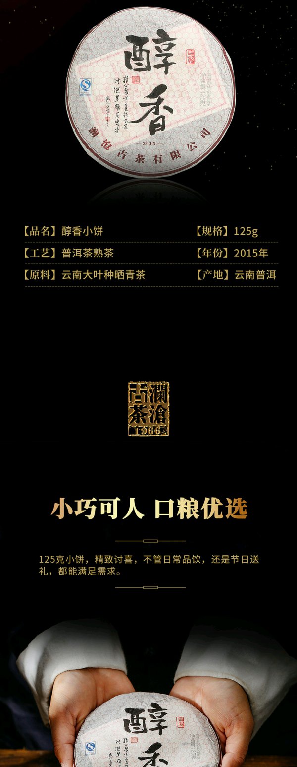 澜沧古茶2015年醇香小饼普洱茶熟茶熟普云南茶叶老茶125g