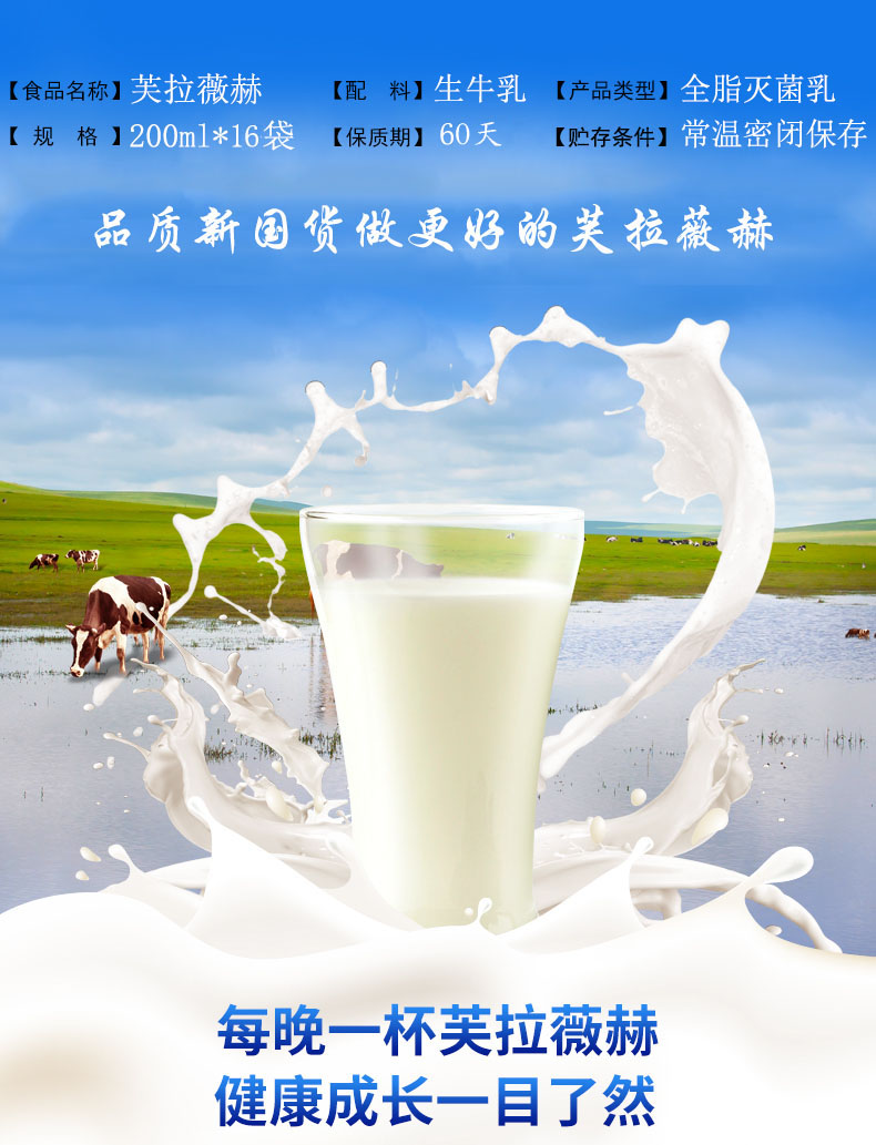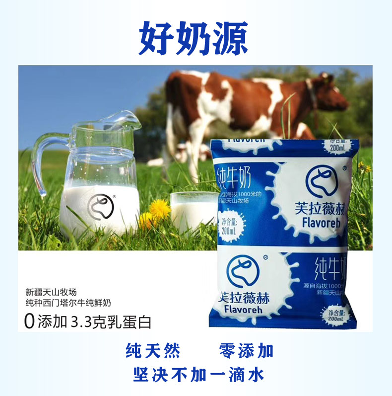 【百】新疆芙拉薇赫纯全脂纯牛奶200ml/袋*16