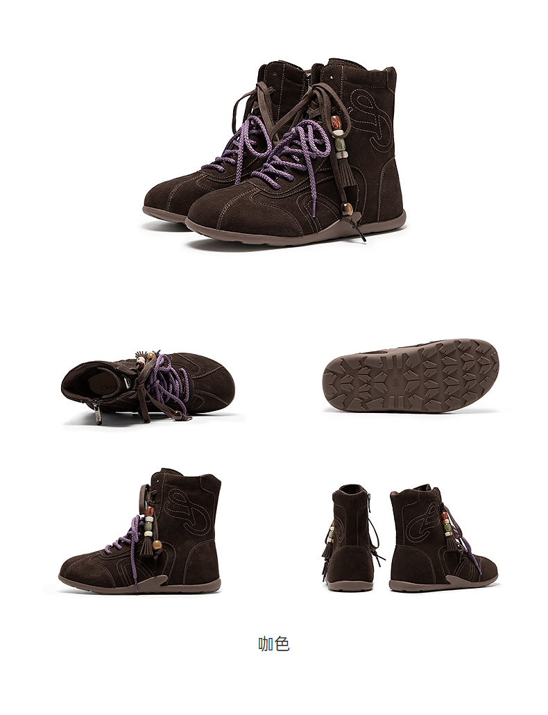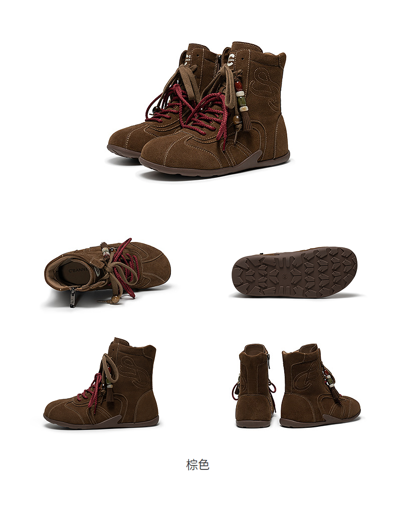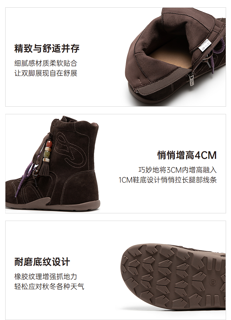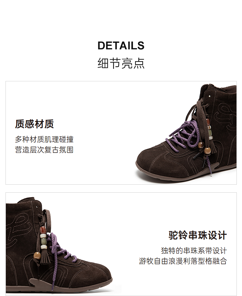 千百度内增高复古德训鞋女高帮美拉德薄底休闲鞋增高鞋短靴A25525708