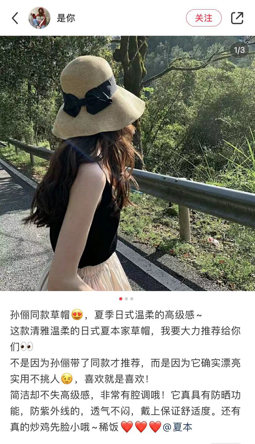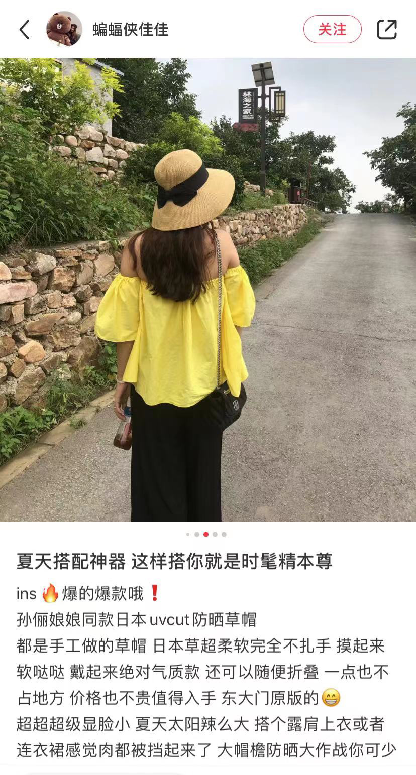 这款草帽是孙俪同款,除了颜值,质量和防晒功能做的相当出色,采用原版进口纸草材质,原版工厂一比一生产!全编织工艺,高密度气孔,纹路清晰有致,防晒指数可高达90%,和别的材质帽子比起来,草帽也会更清凉透气,戴上也不会很闷热,堪称夏日绝配了。