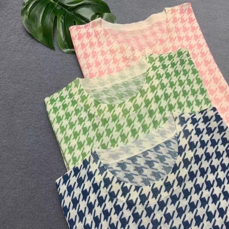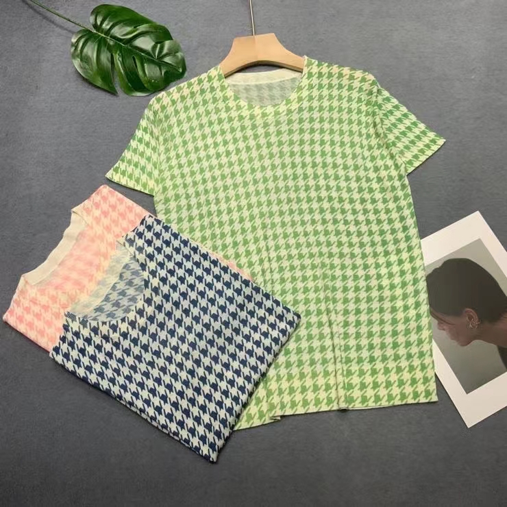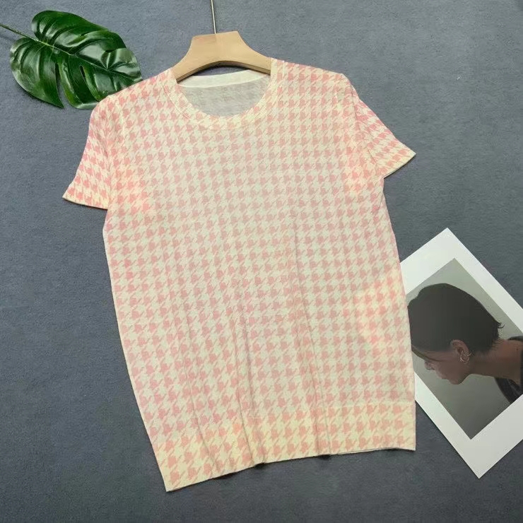 2027# 高订美丽若羊毛80支精纺羊绒印花,短袖上衣,空调房夏季首选,舒适透气有质感! mlxl
