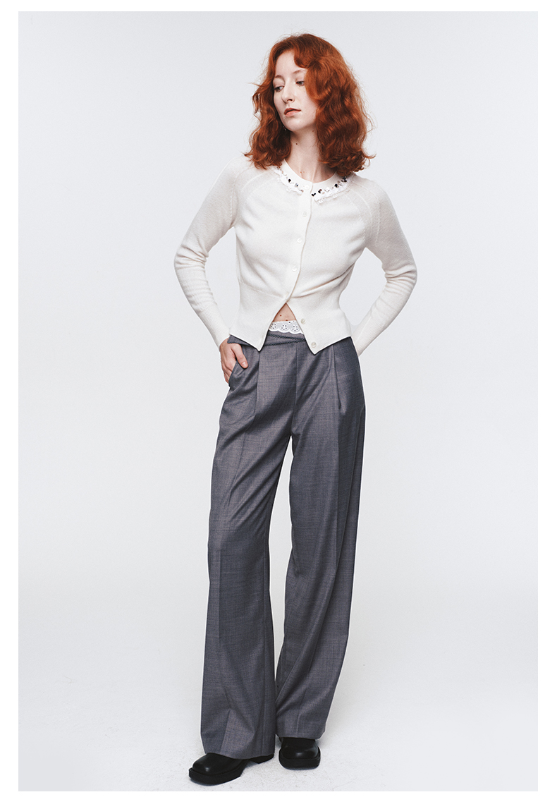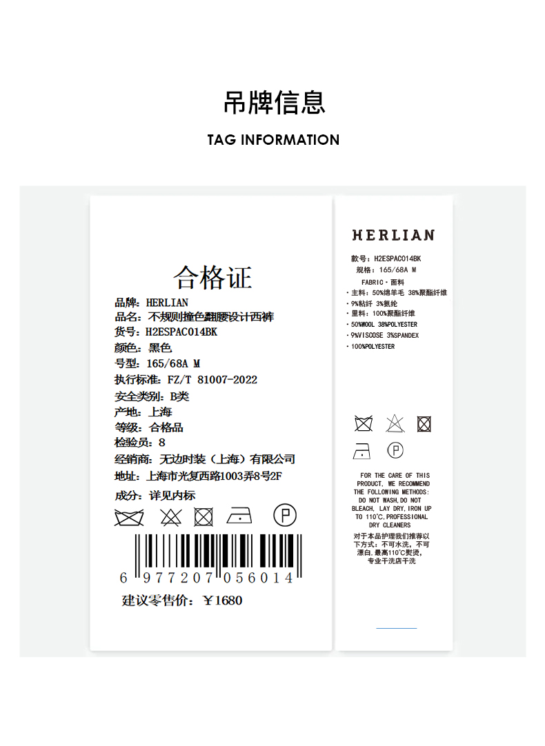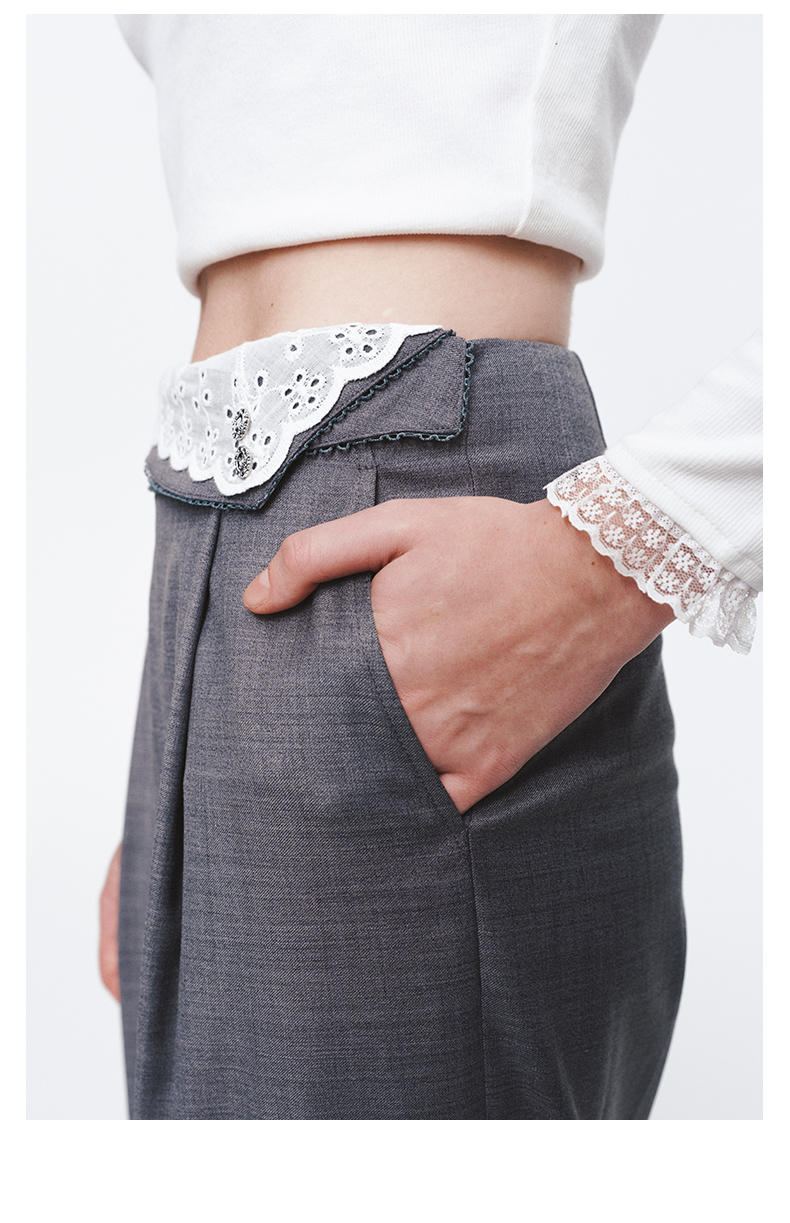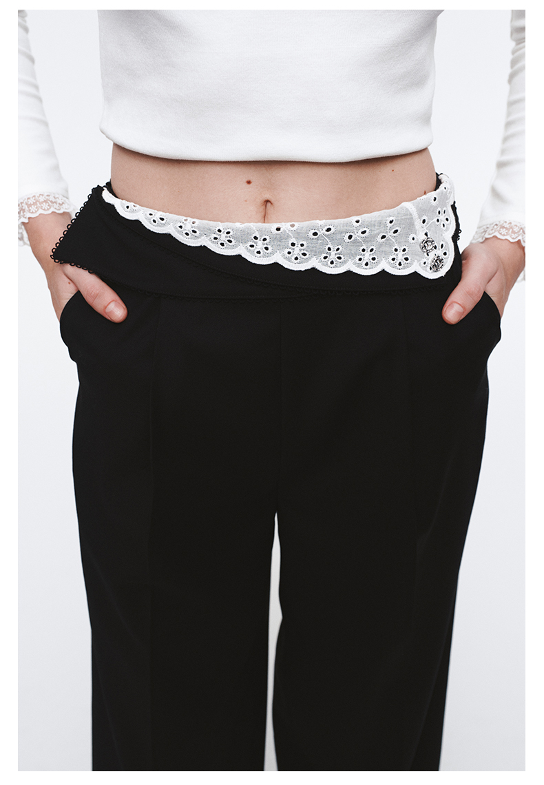 H2ESPAC014不规则撞色翻腰设计西裤