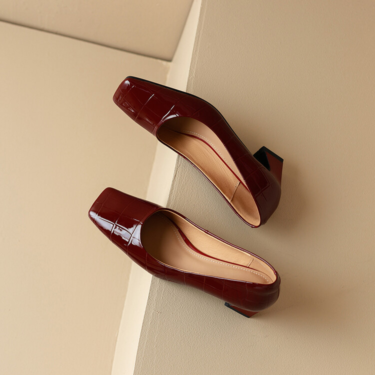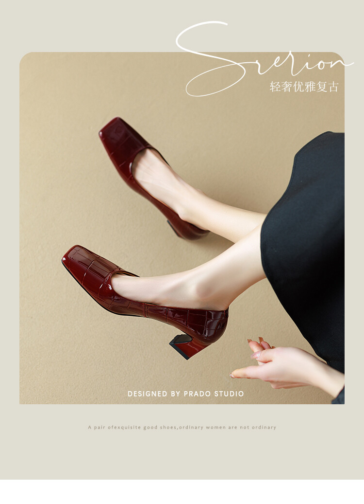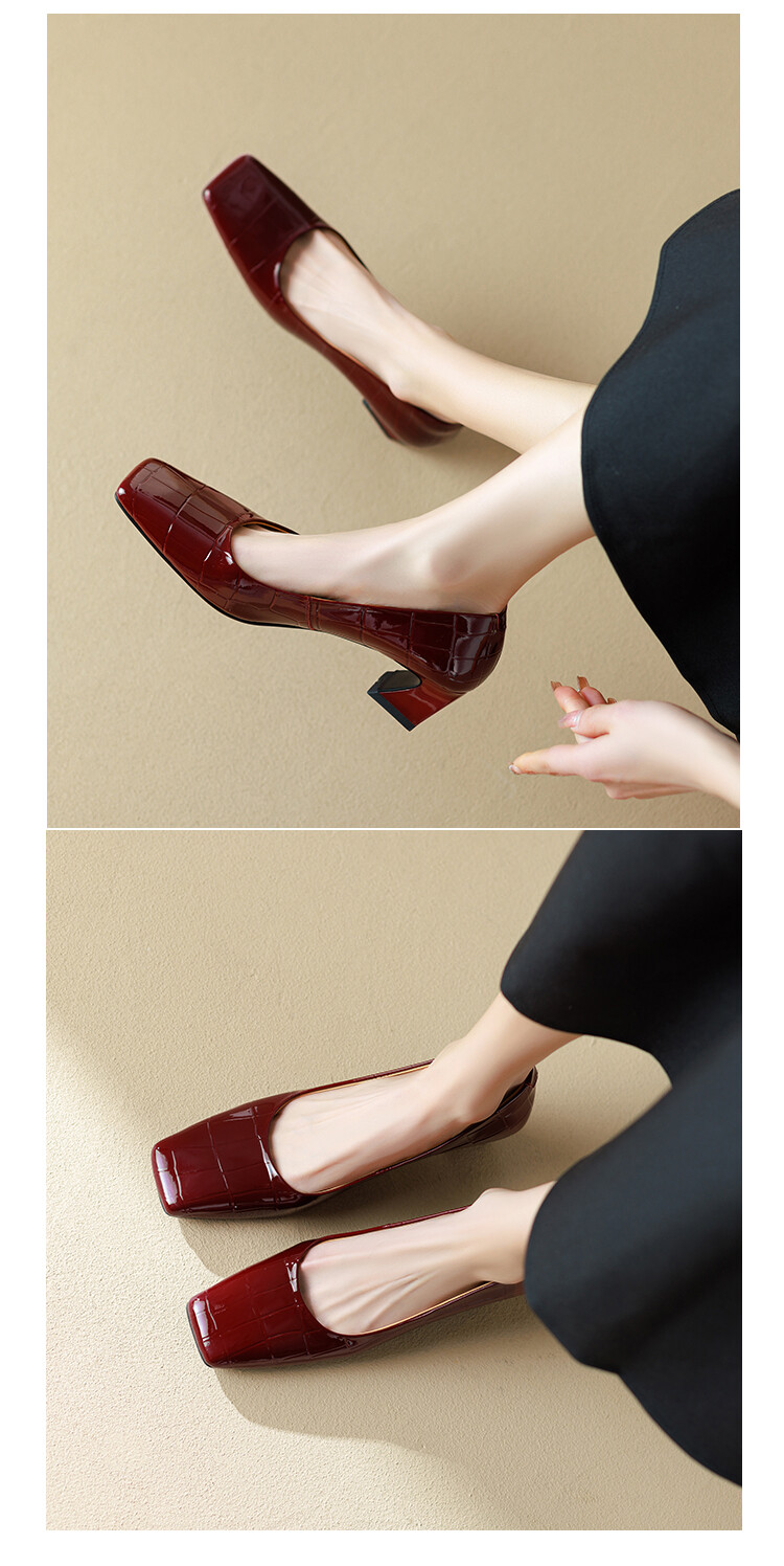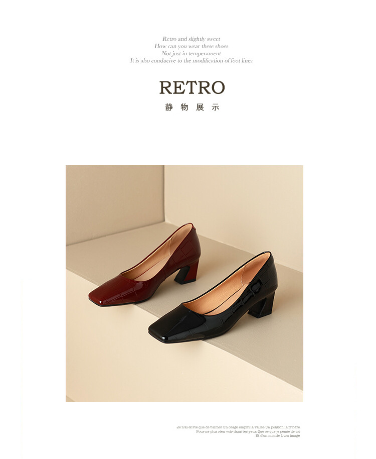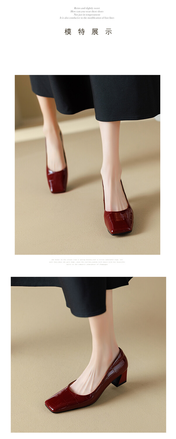 【预售5天】法式时尚酒红色方头小短跟单鞋2024年春季新款职业通勤低跟女鞋SY&G2002-1