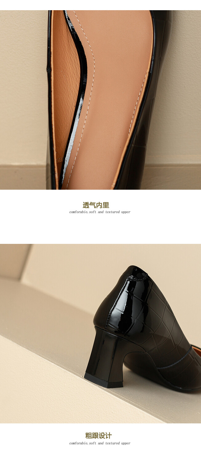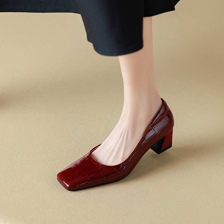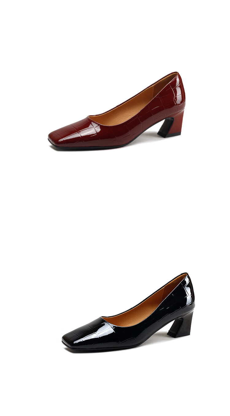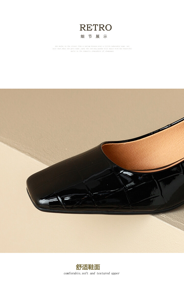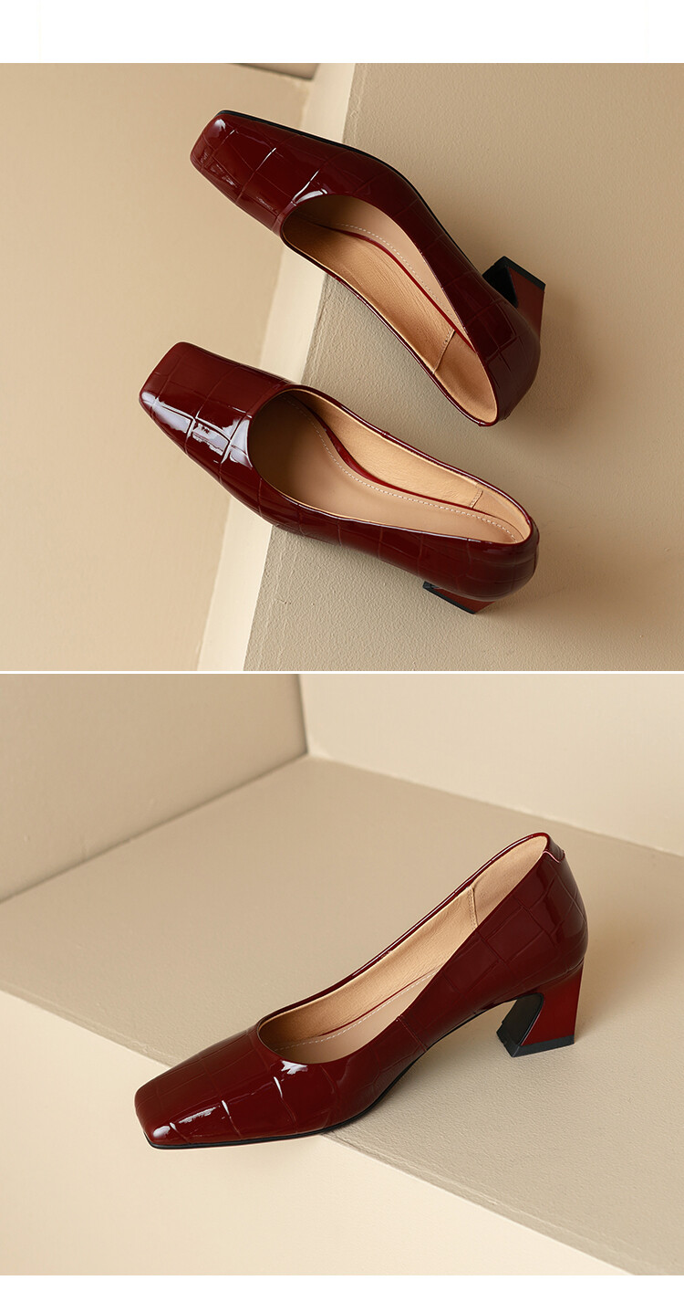 【预售5天】法式时尚酒红色方头小短跟单鞋2024年春季新款职业通勤低跟女鞋SY&G2002-1