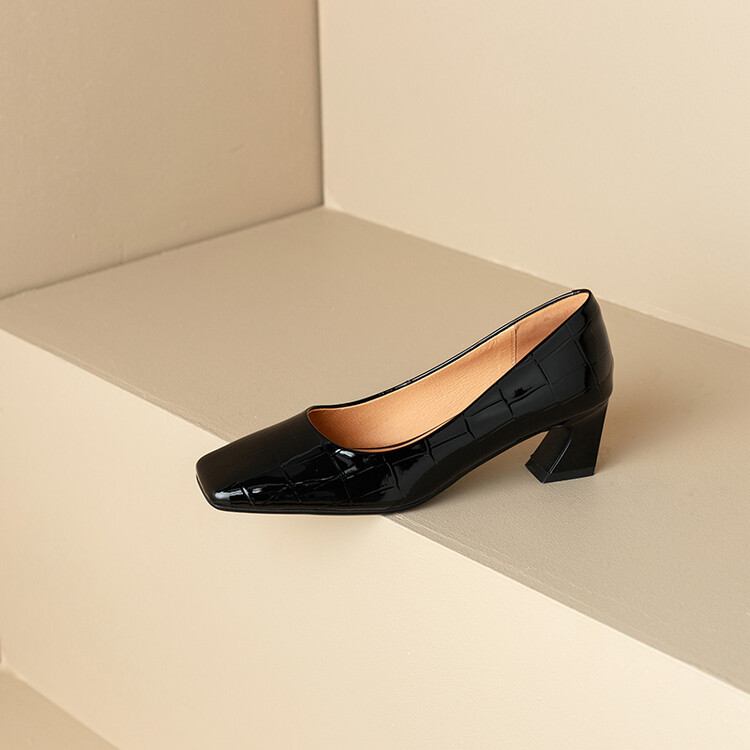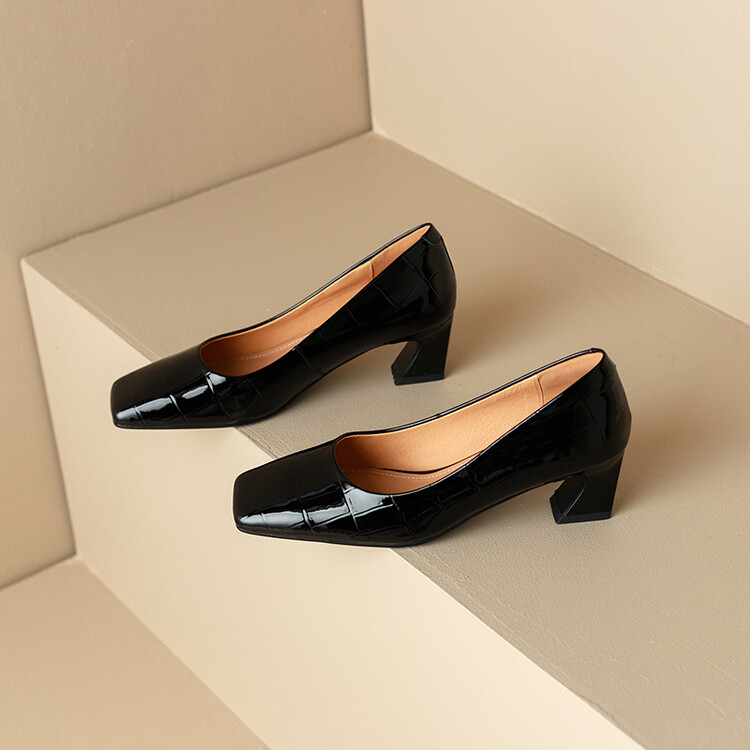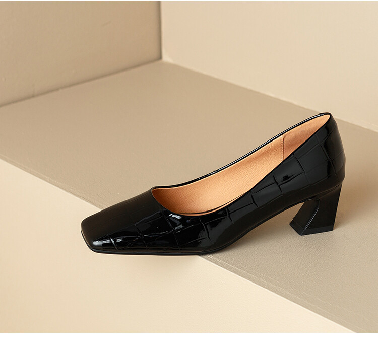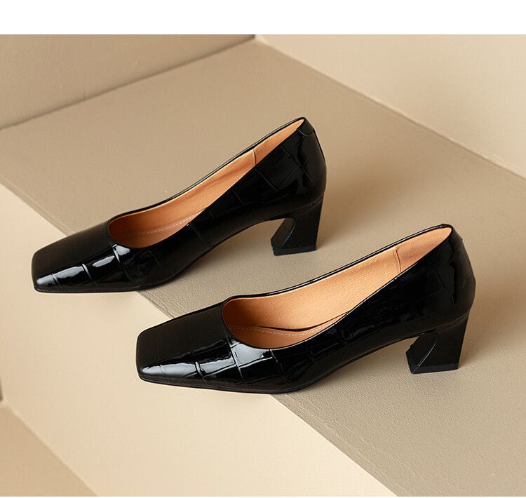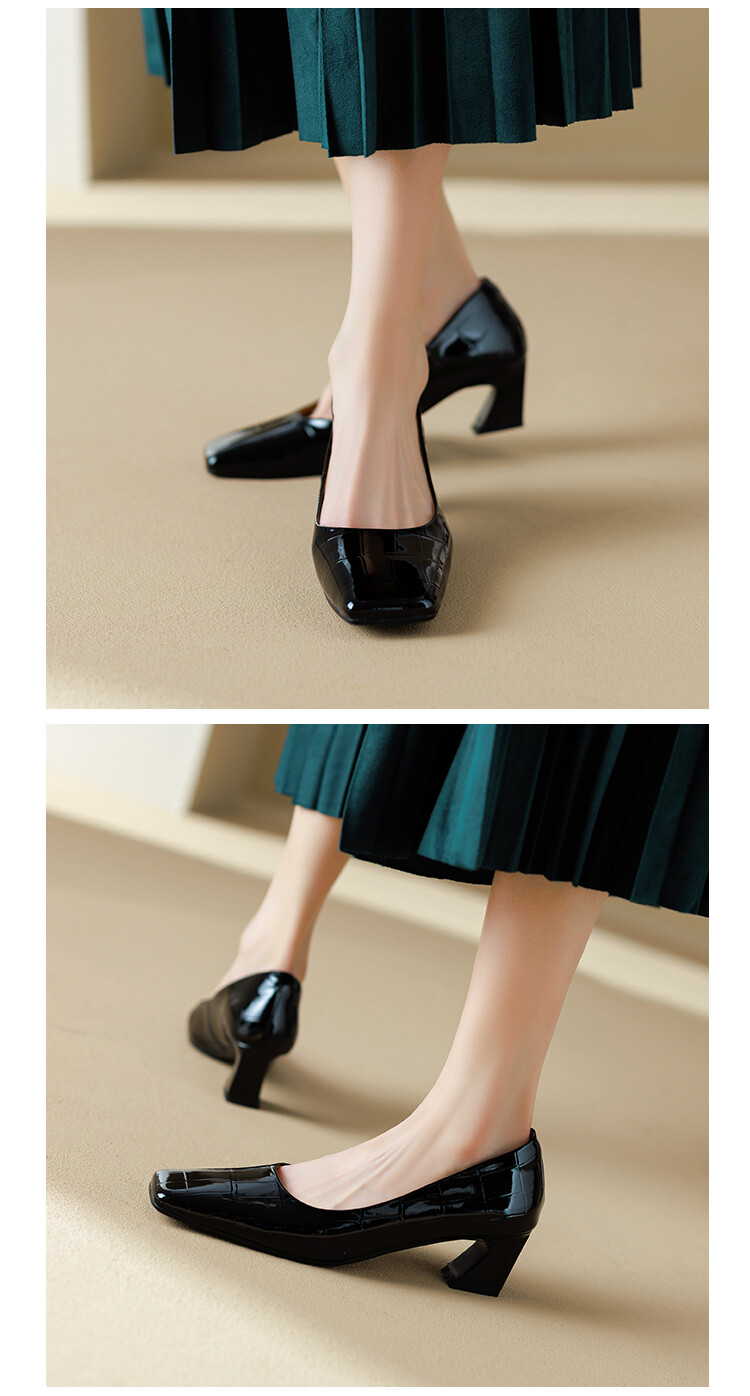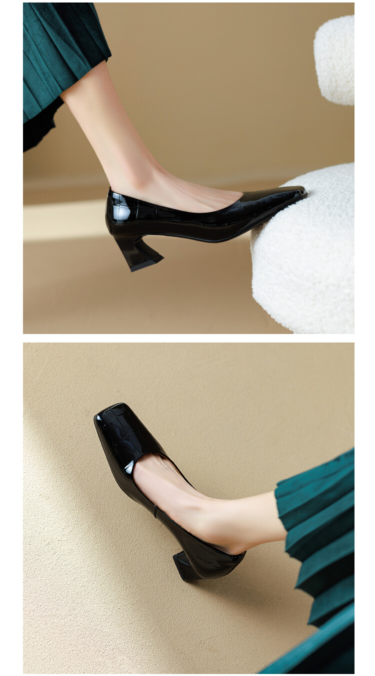 【预售5天】法式时尚酒红色方头小短跟单鞋2024年春季新款职业通勤低跟女鞋SY&G2002-1