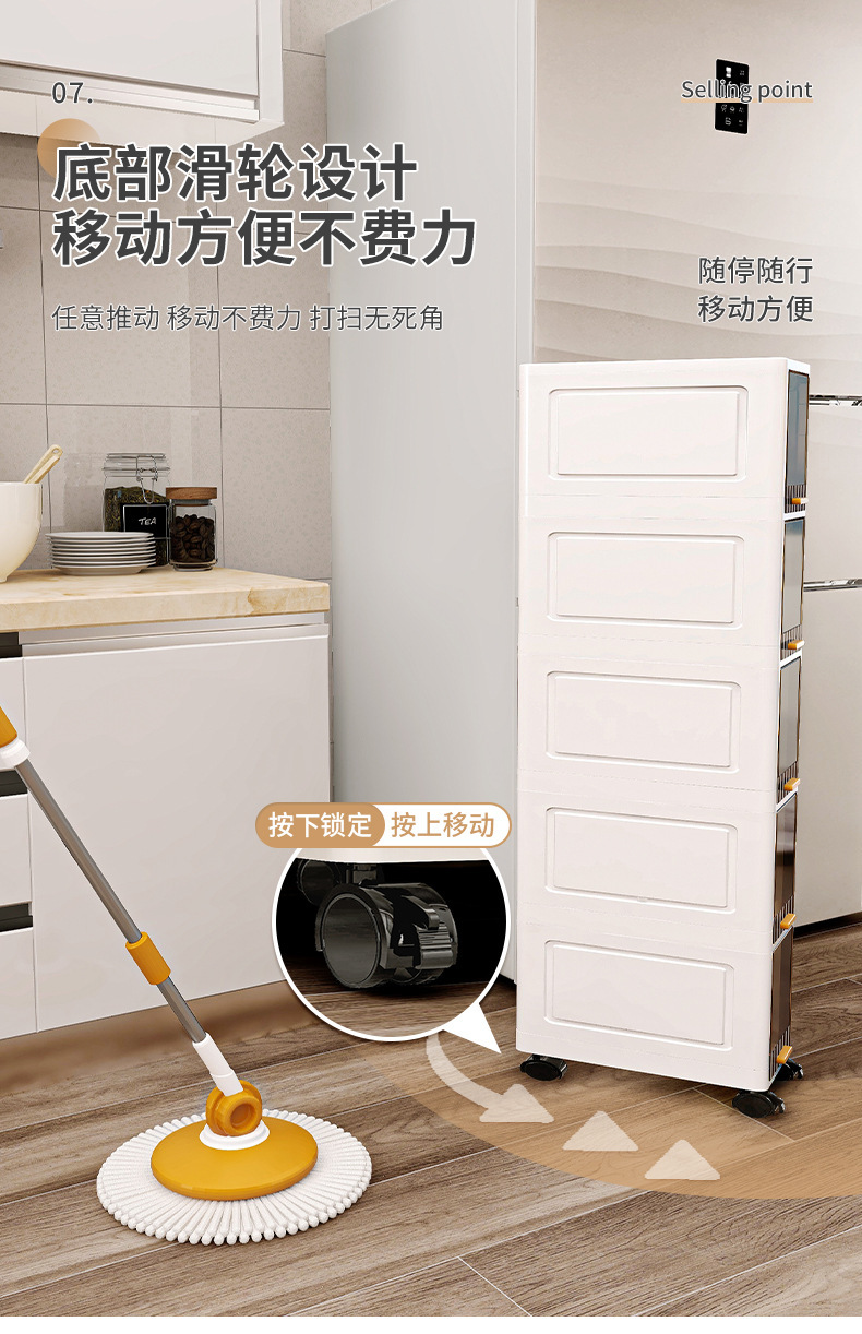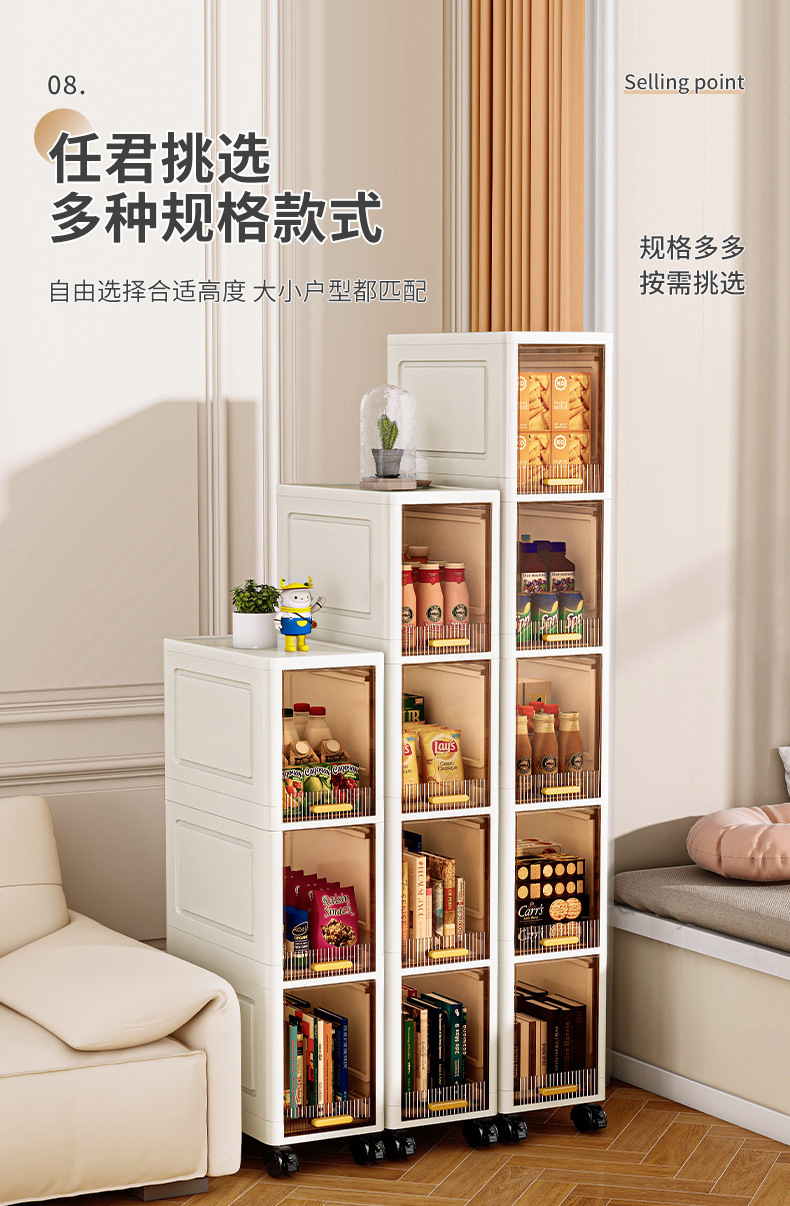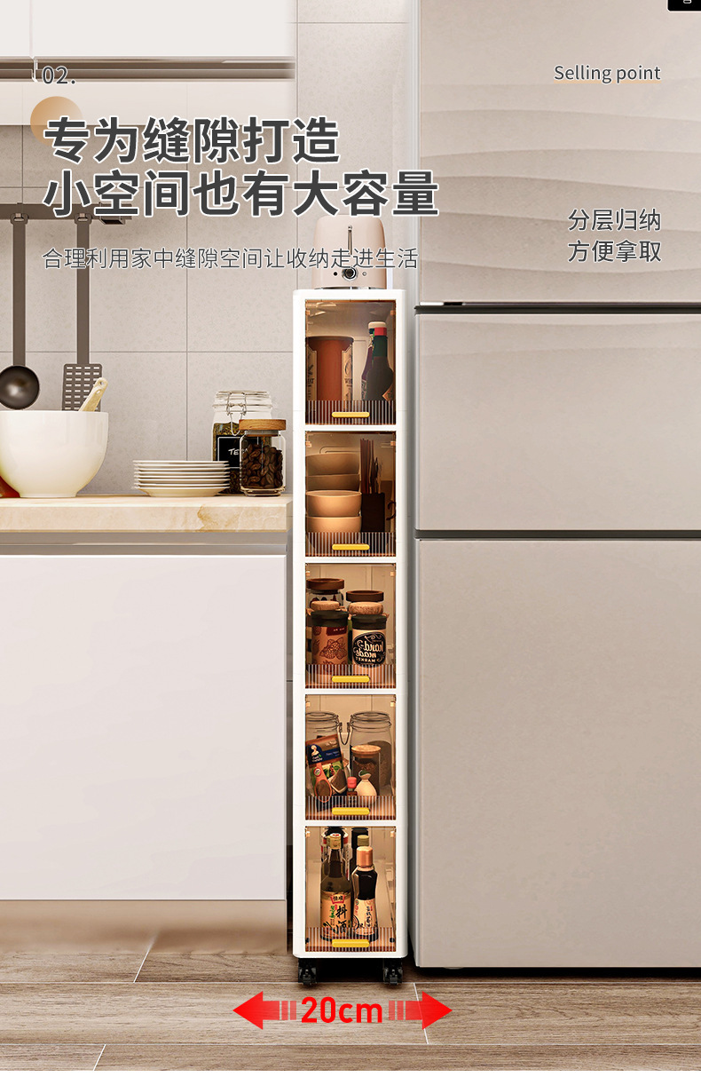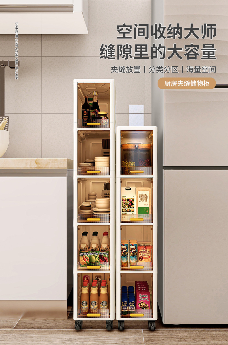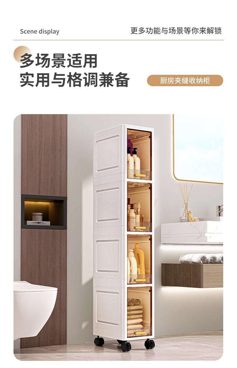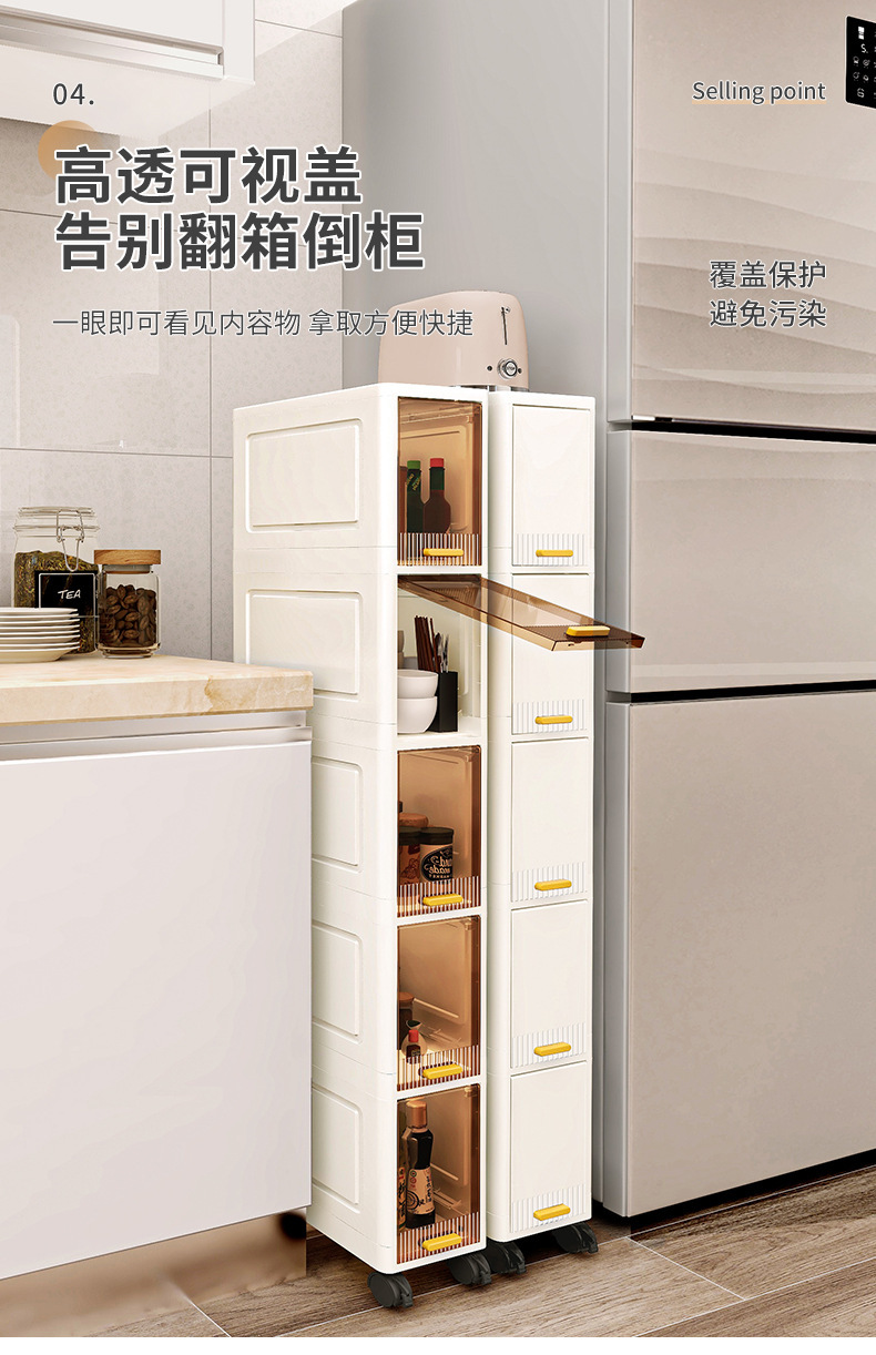 【加厚夹缝收纳柜】厨房缝隙置物架 卫生间多层翻盖储物柜客厅零食柜子