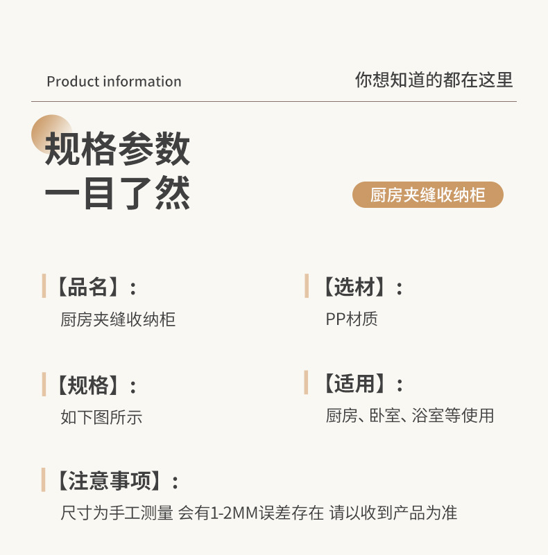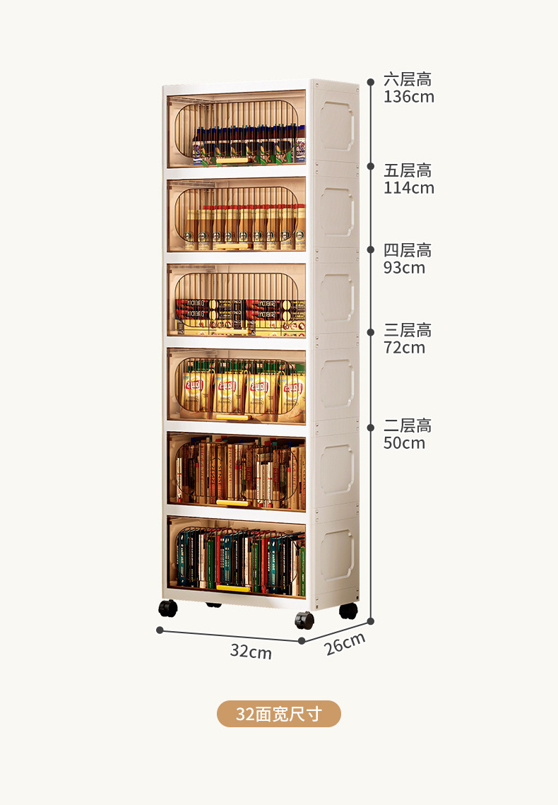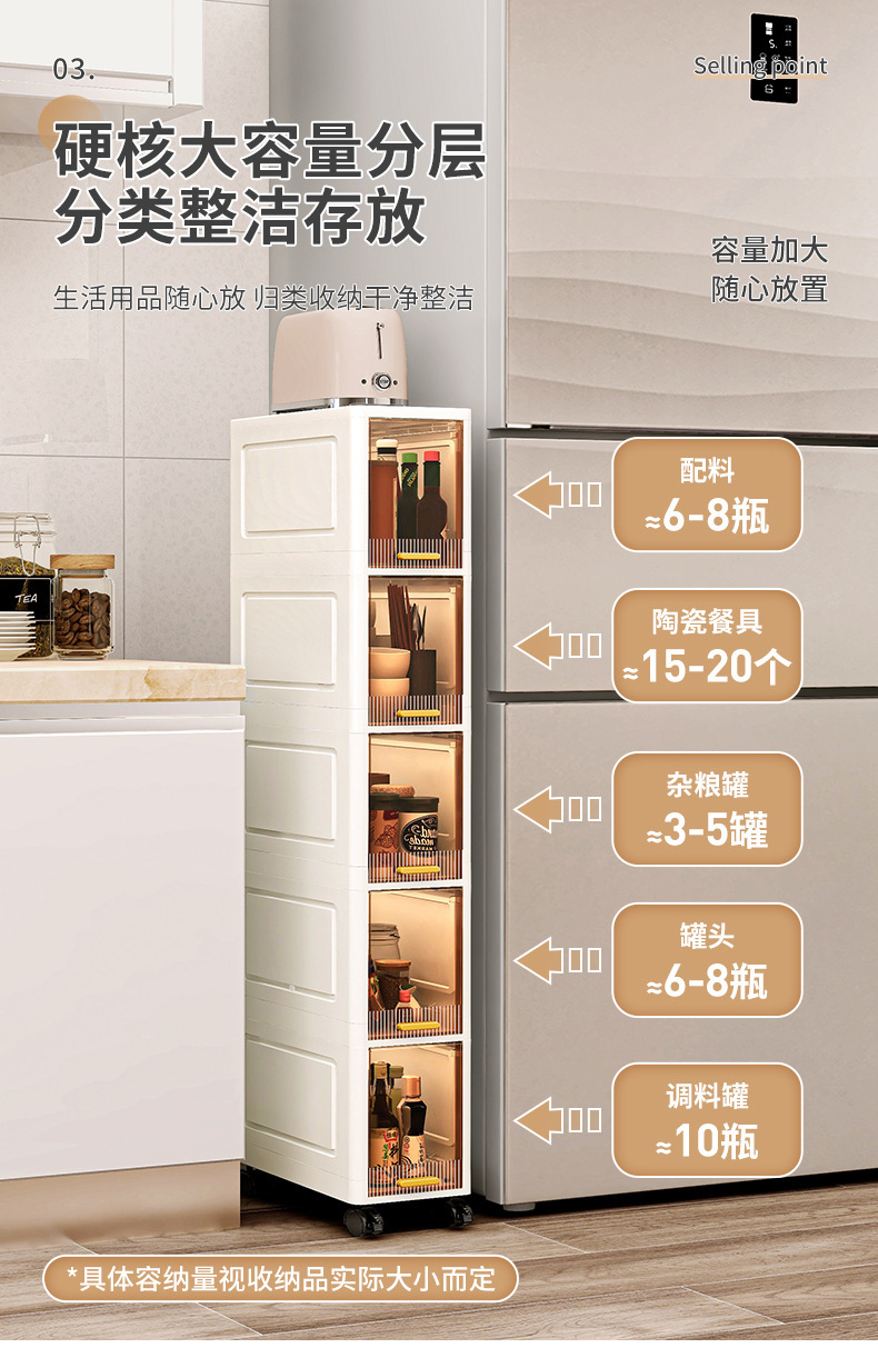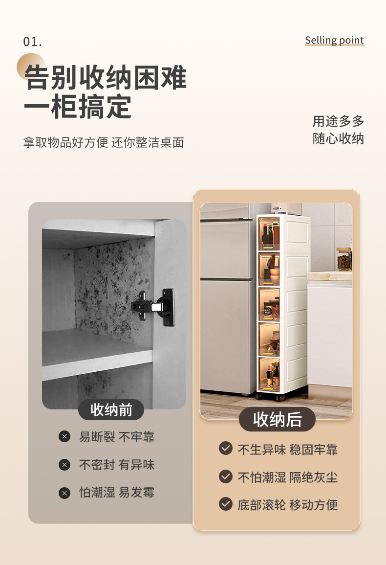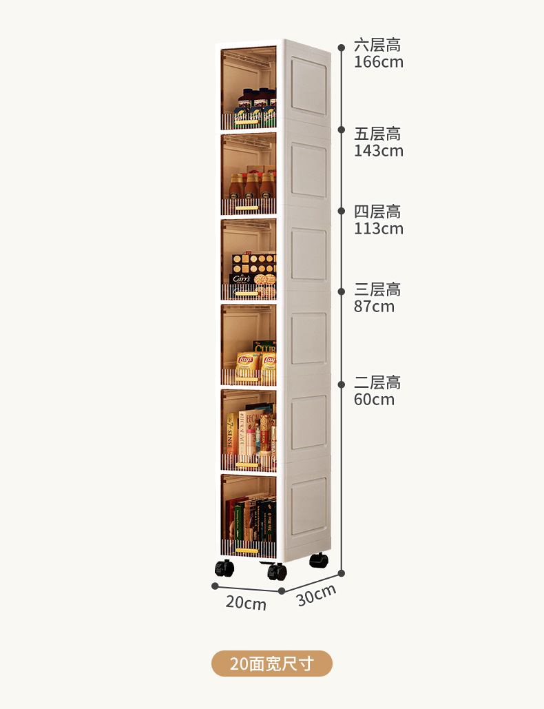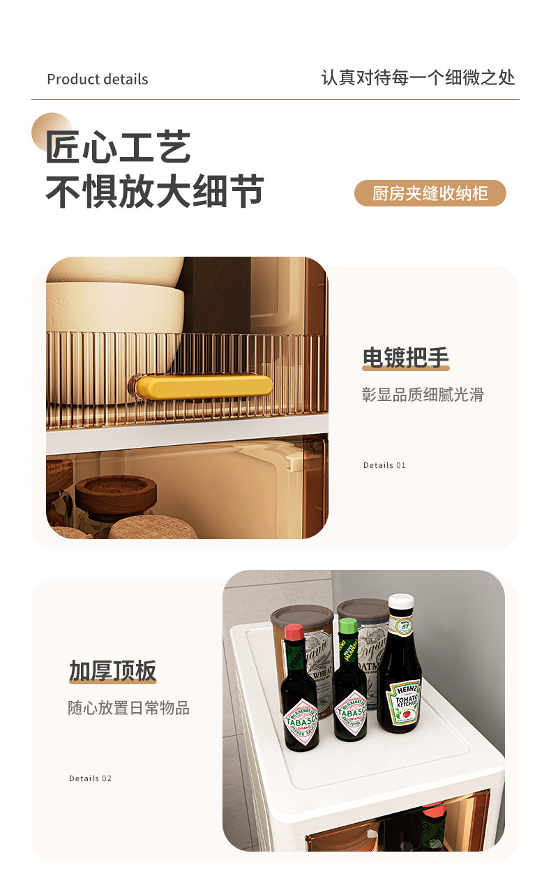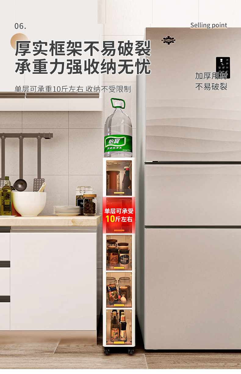 【加厚夹缝收纳柜】厨房缝隙置物架 卫生间多层翻盖储物柜客厅零食柜子