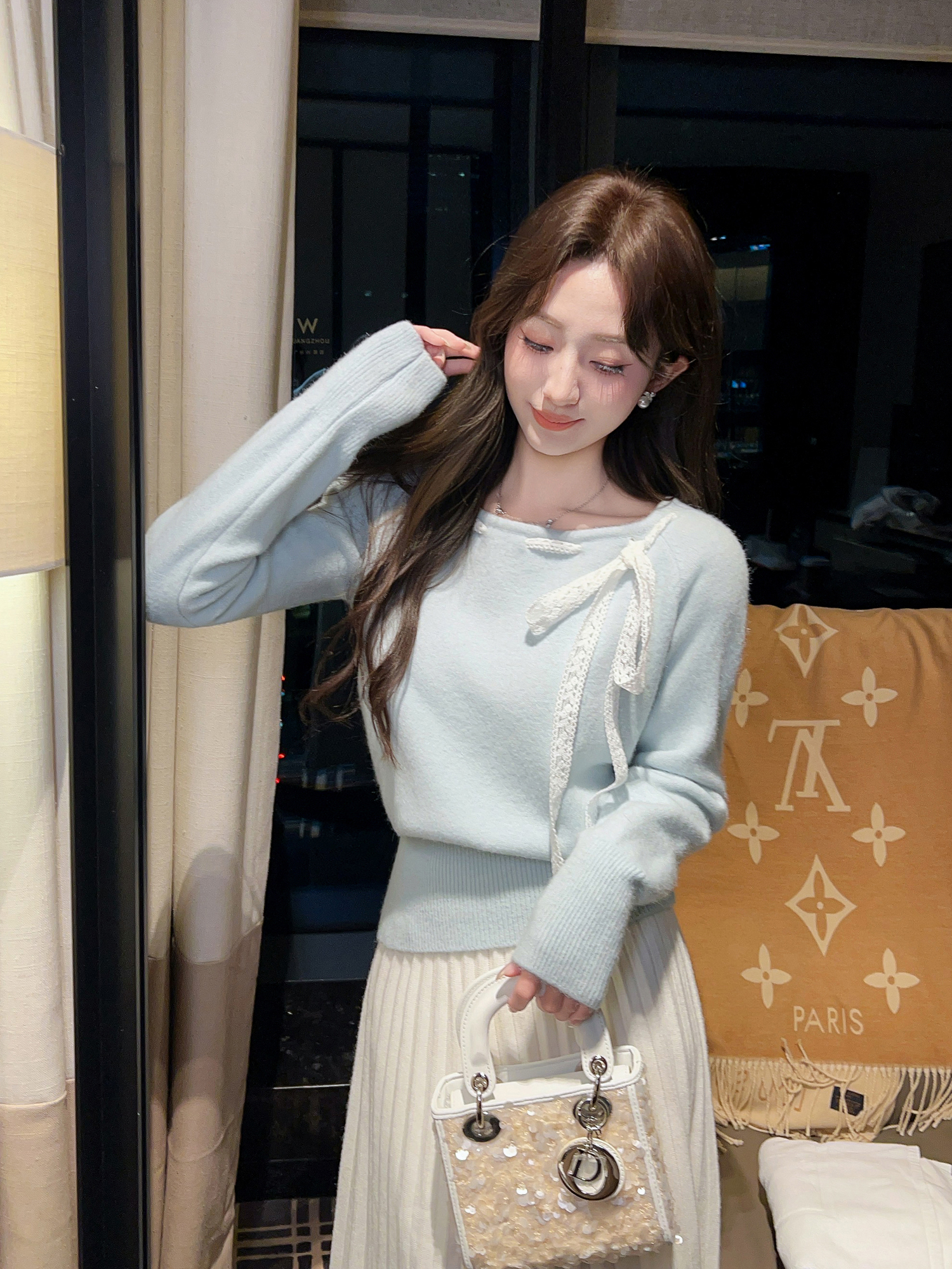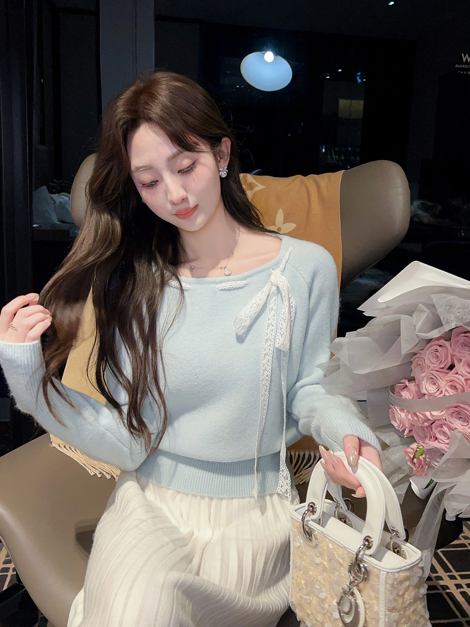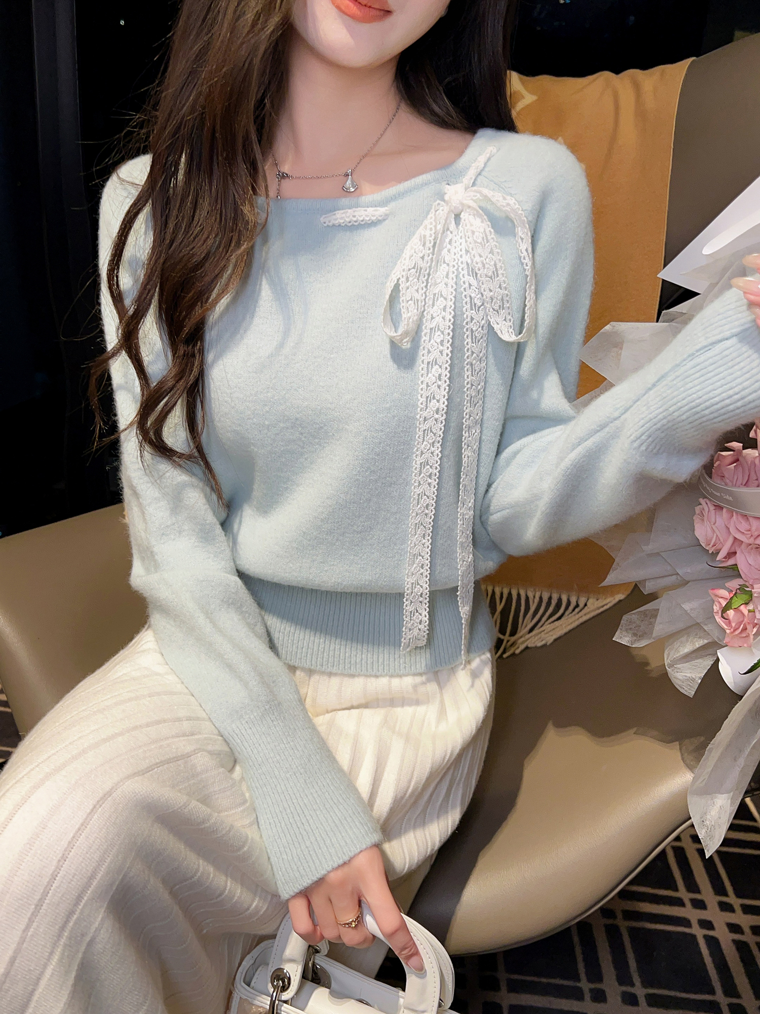 张心子【甜美主义】蝴蝶结丝带毛衣设计感小众上衣 U2601013