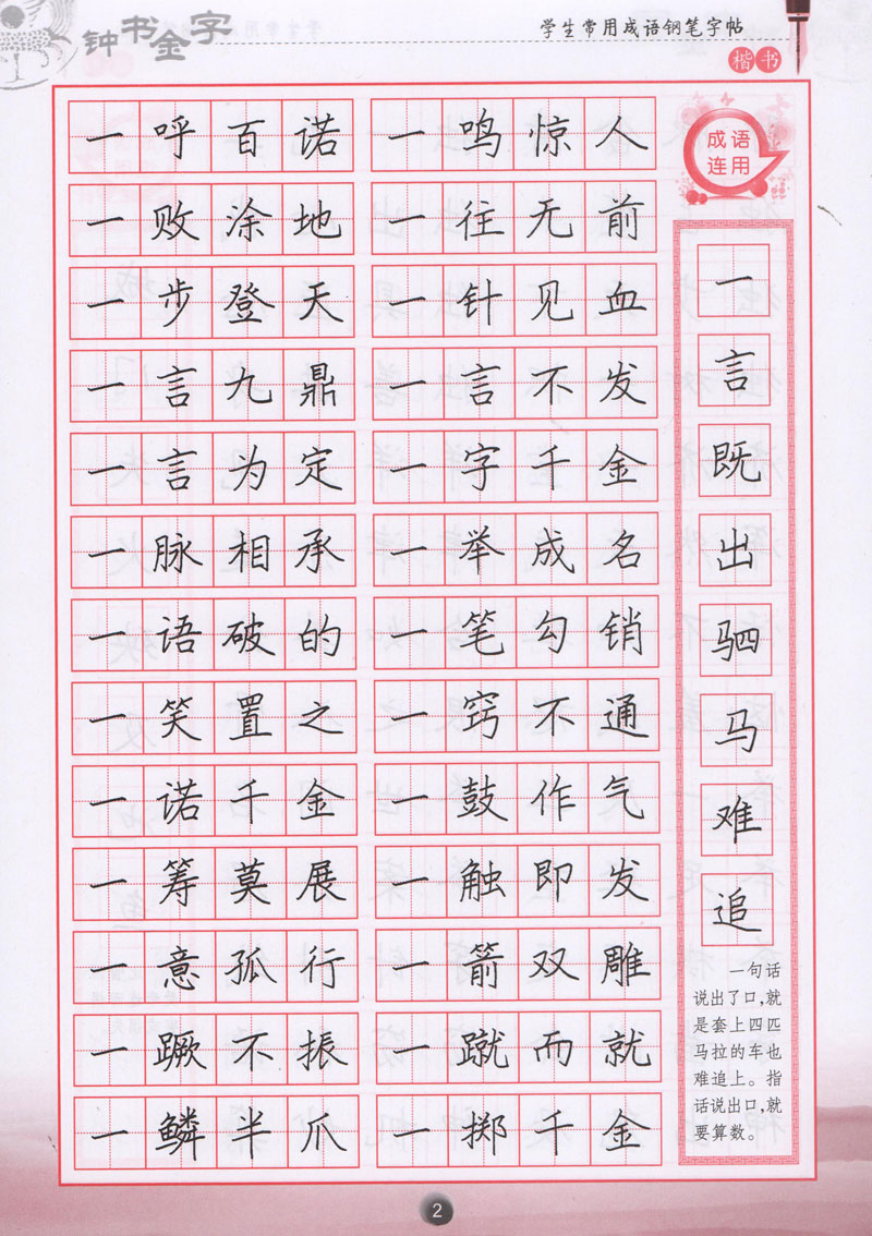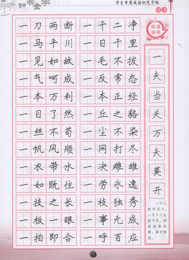 钟书金字 学生常用成语钢笔字帖(楷书) 柳长忠/著 钟书金牌正版教辅字帖 上海大学出版社