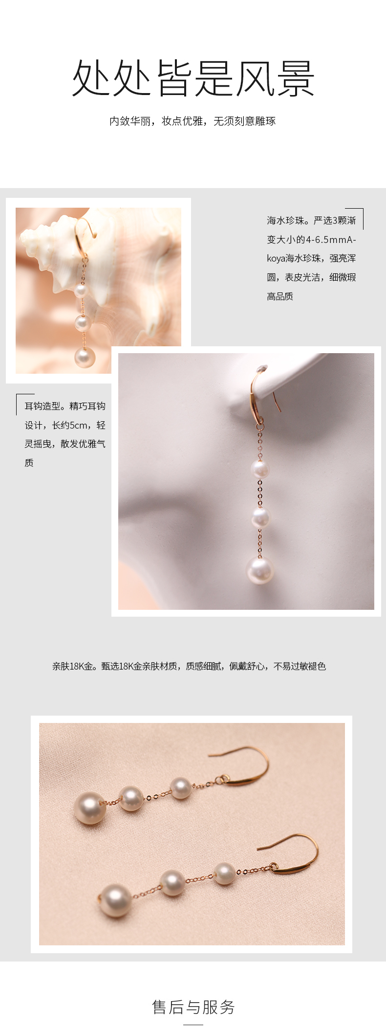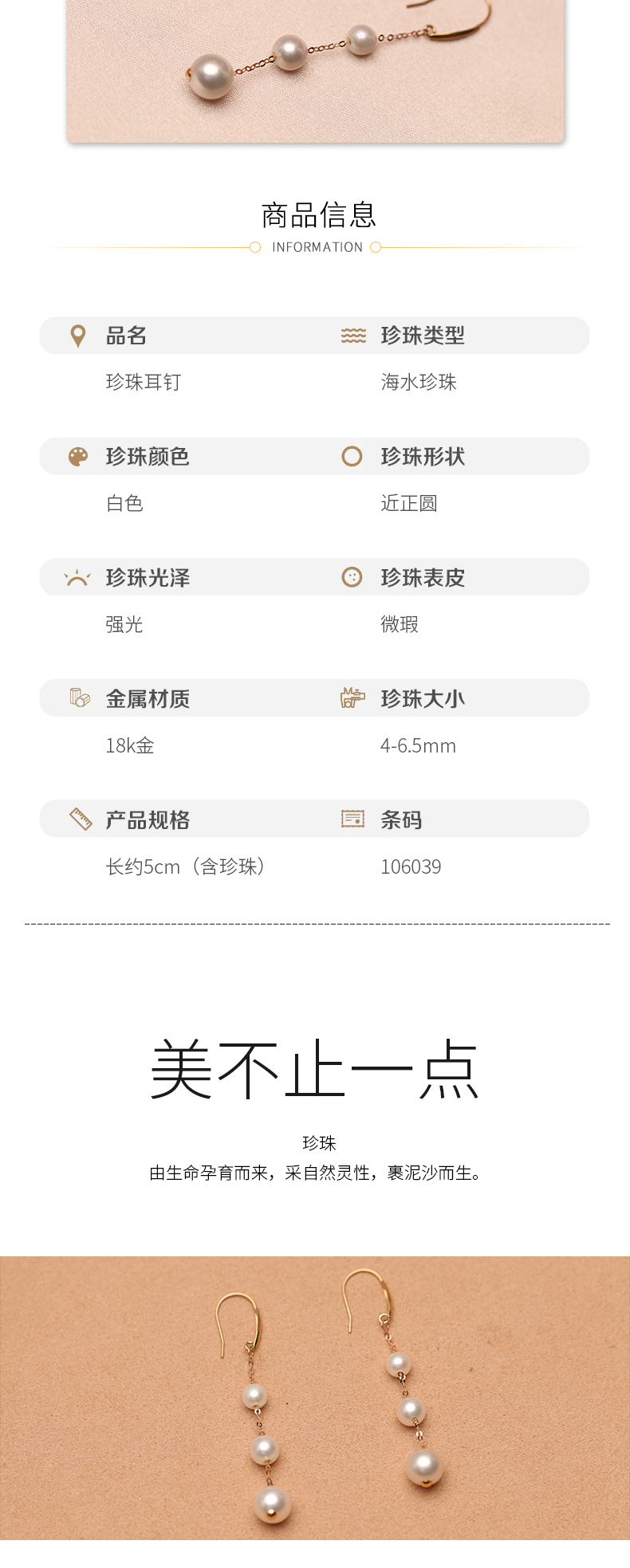 美裕 【心弦】金18K海水珍珠耳钉 4-6.5mm白 106039