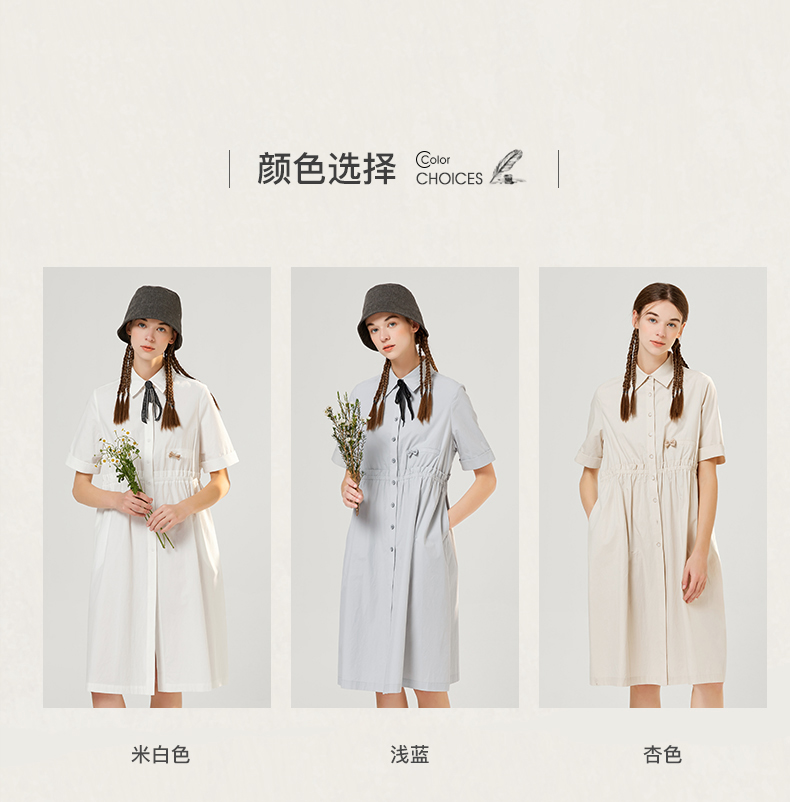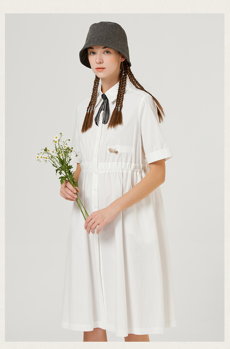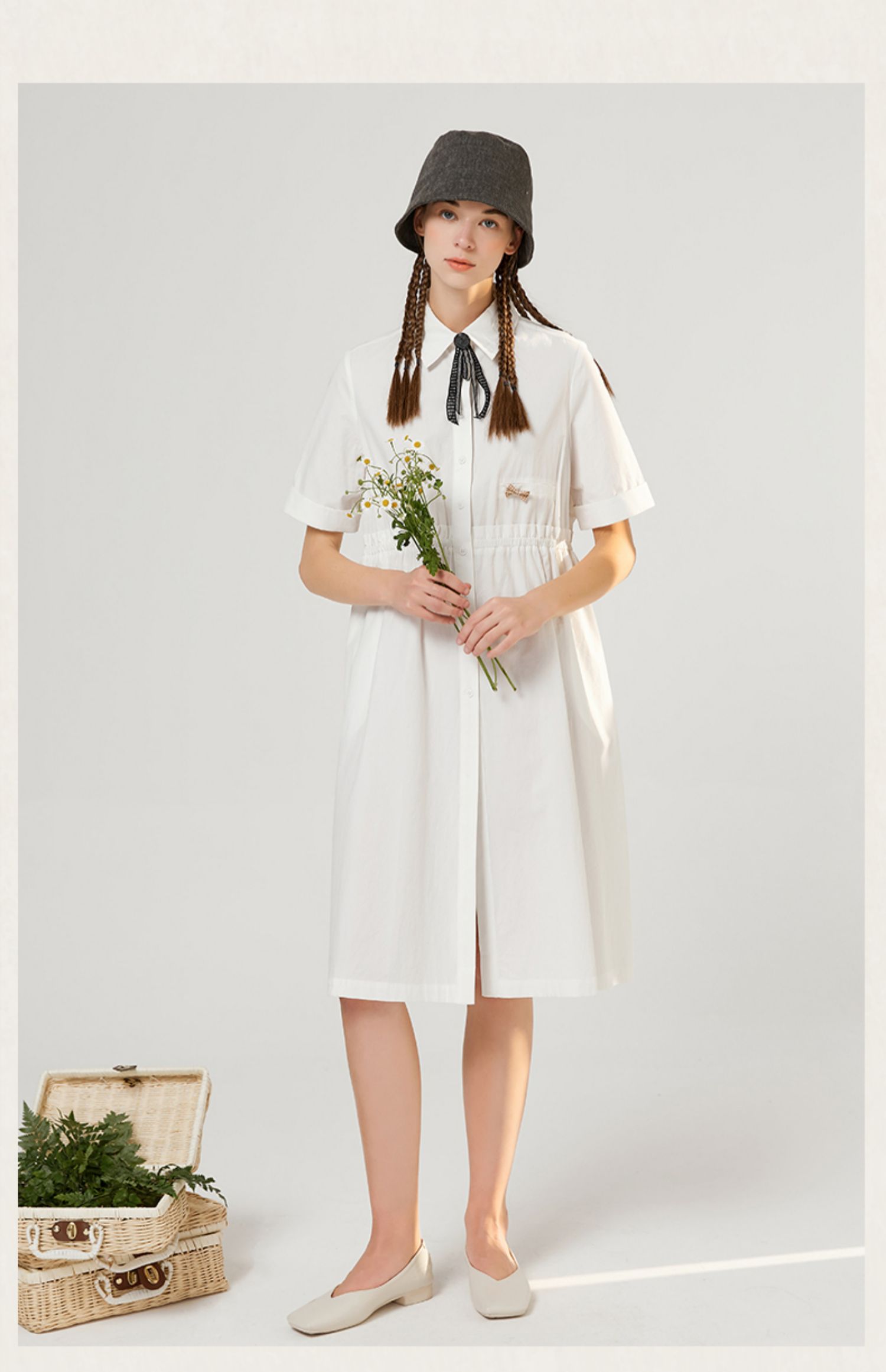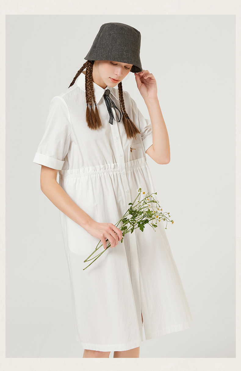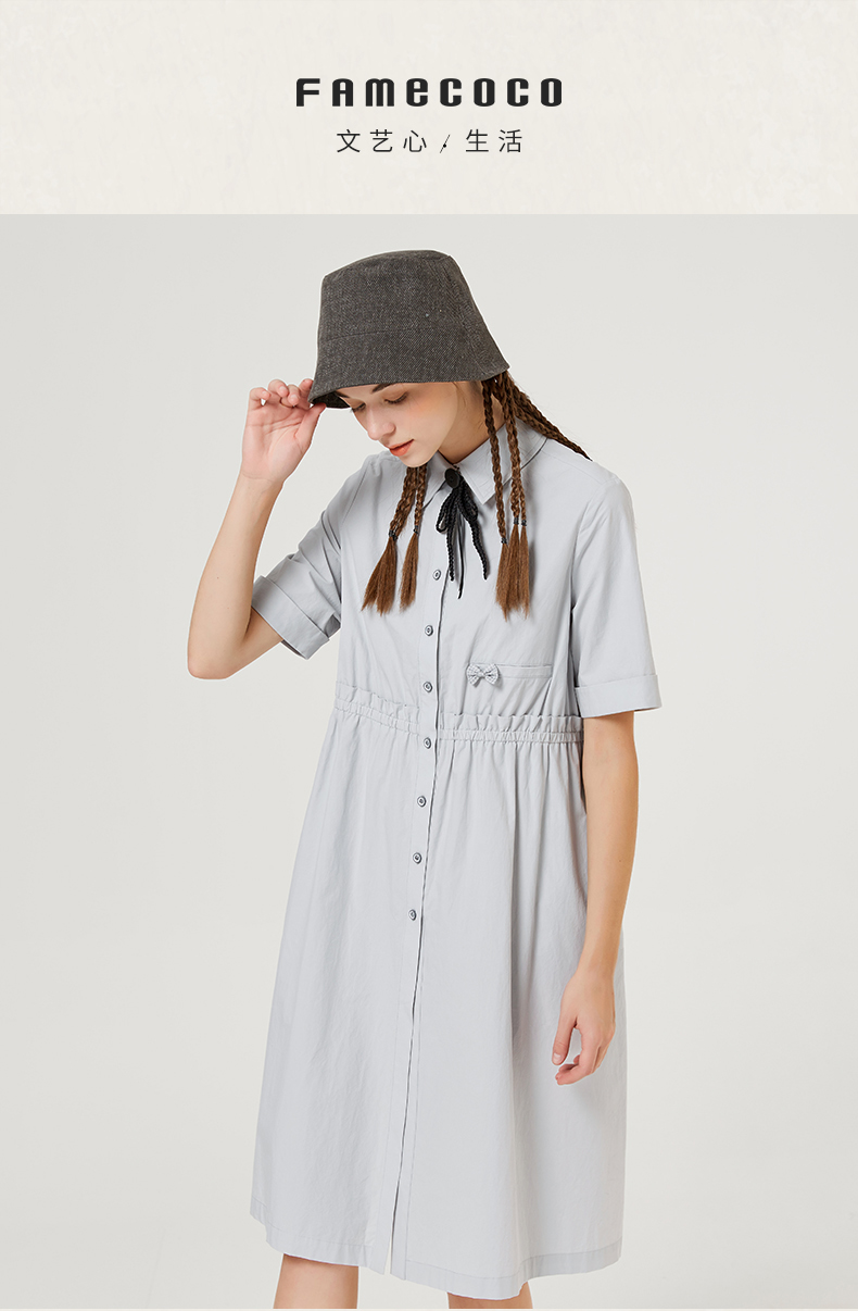 famecoco范可儿休闲宽松纯棉短袖连衣裙女夏季新款气质通勤衬衫裙F223FA012
