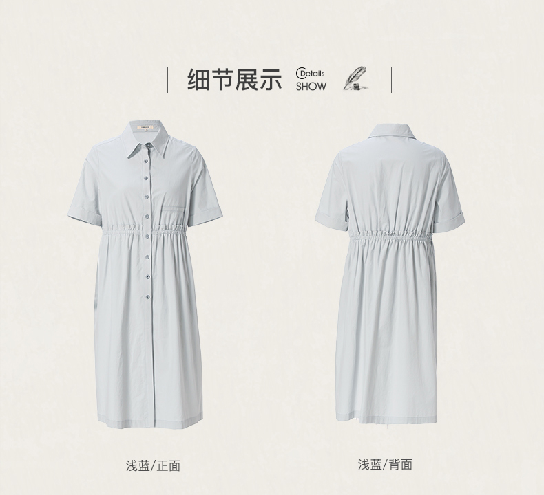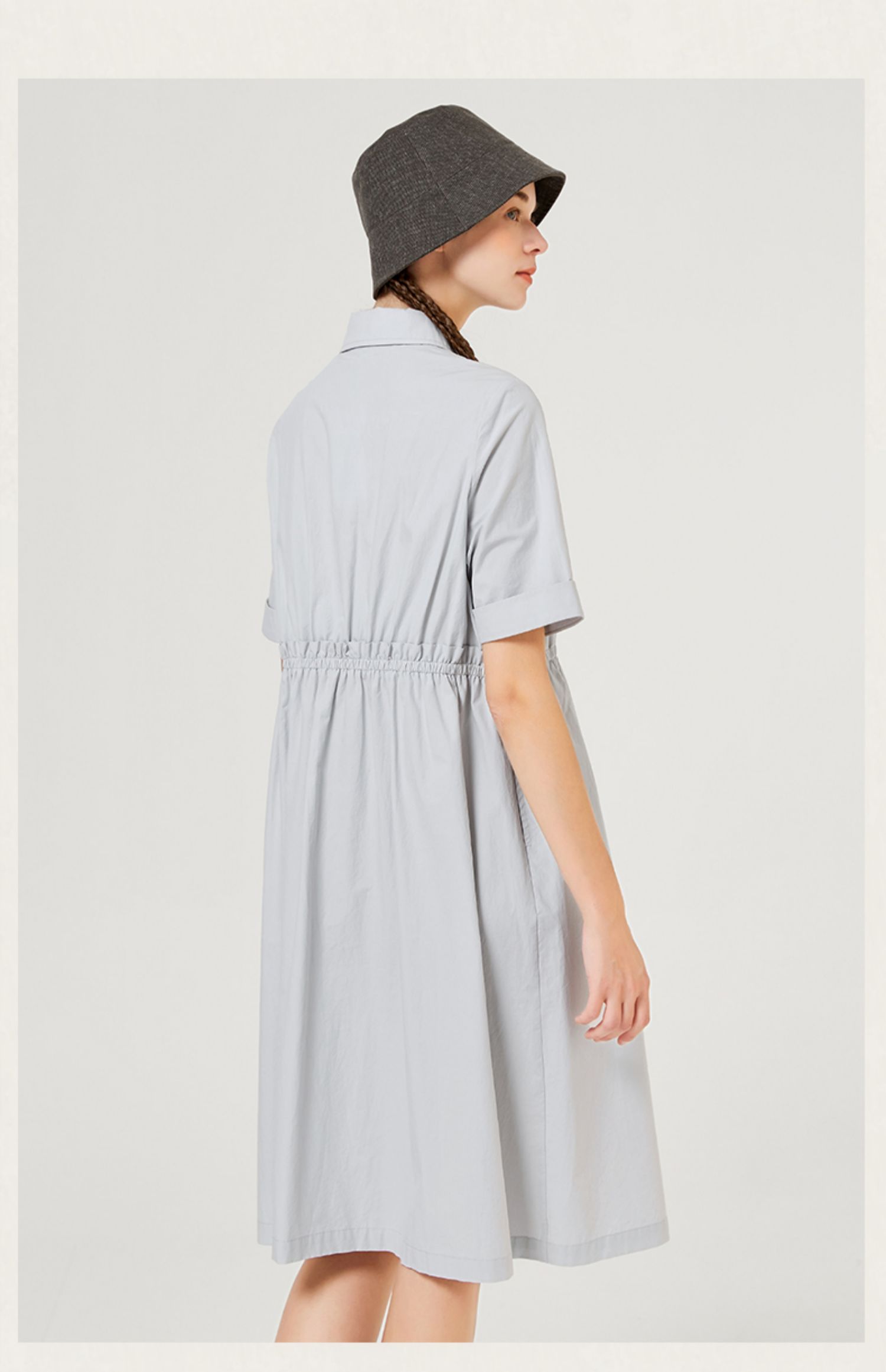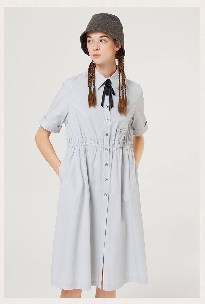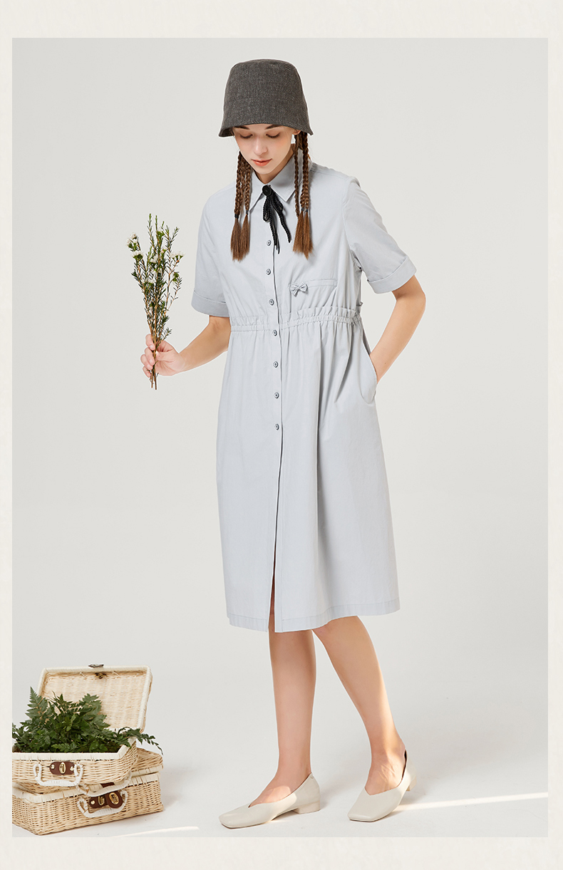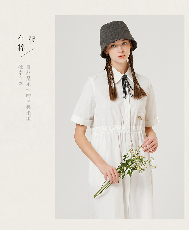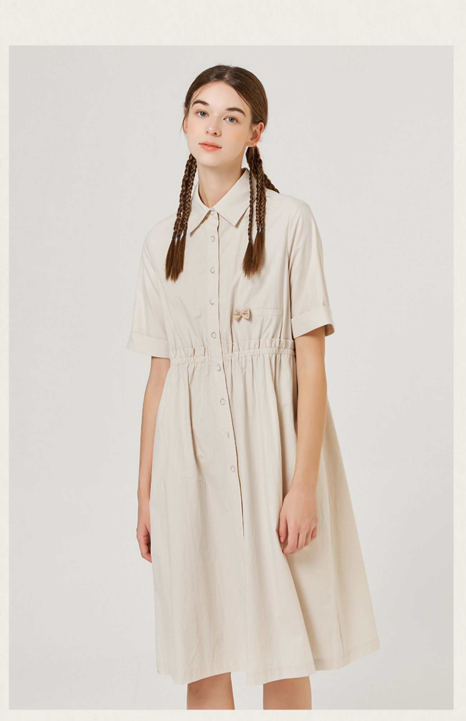 famecoco范可儿休闲宽松纯棉短袖连衣裙女夏季新款气质通勤衬衫裙F223FA012