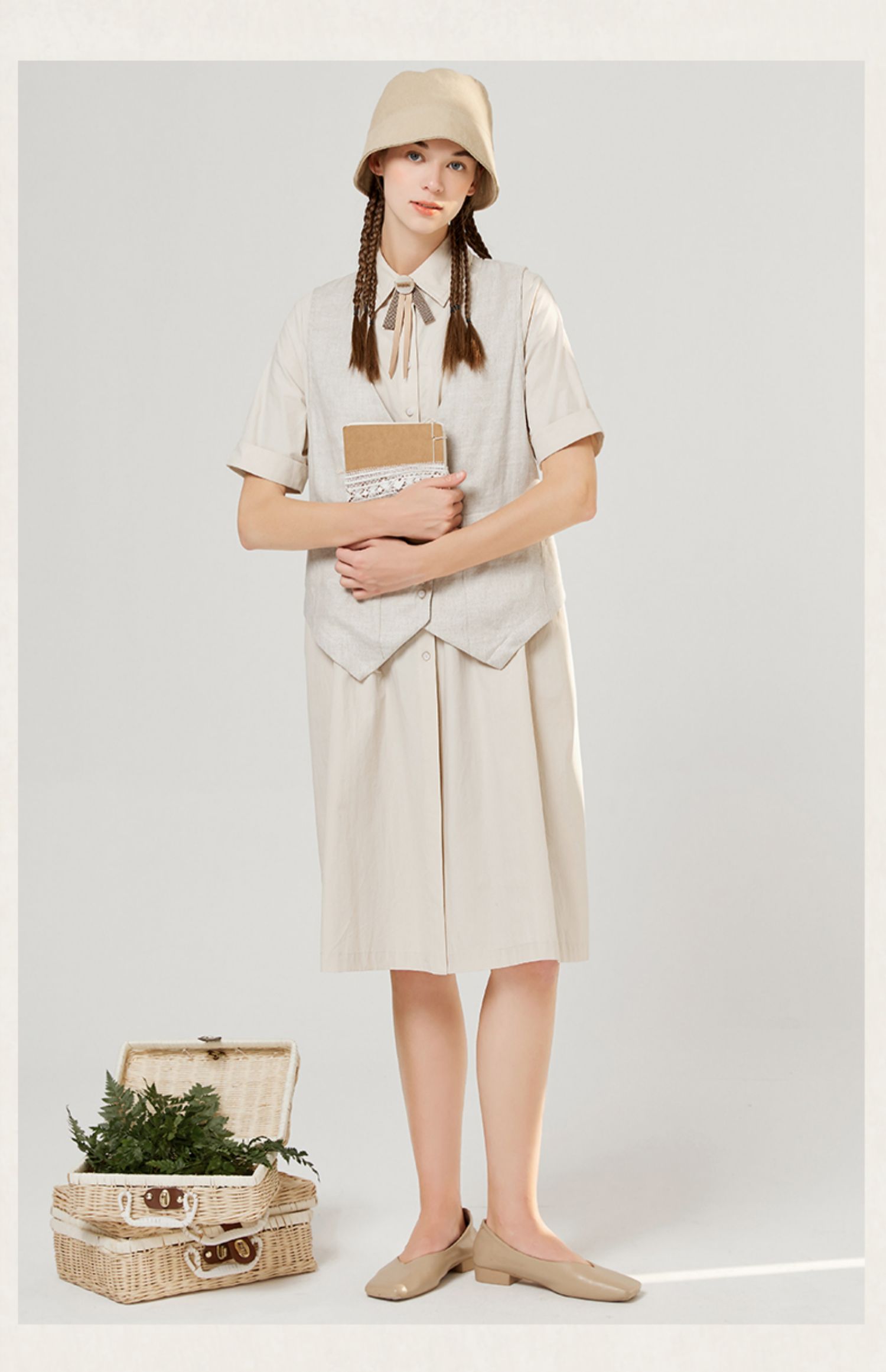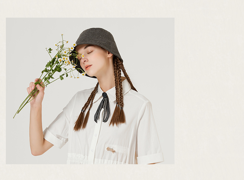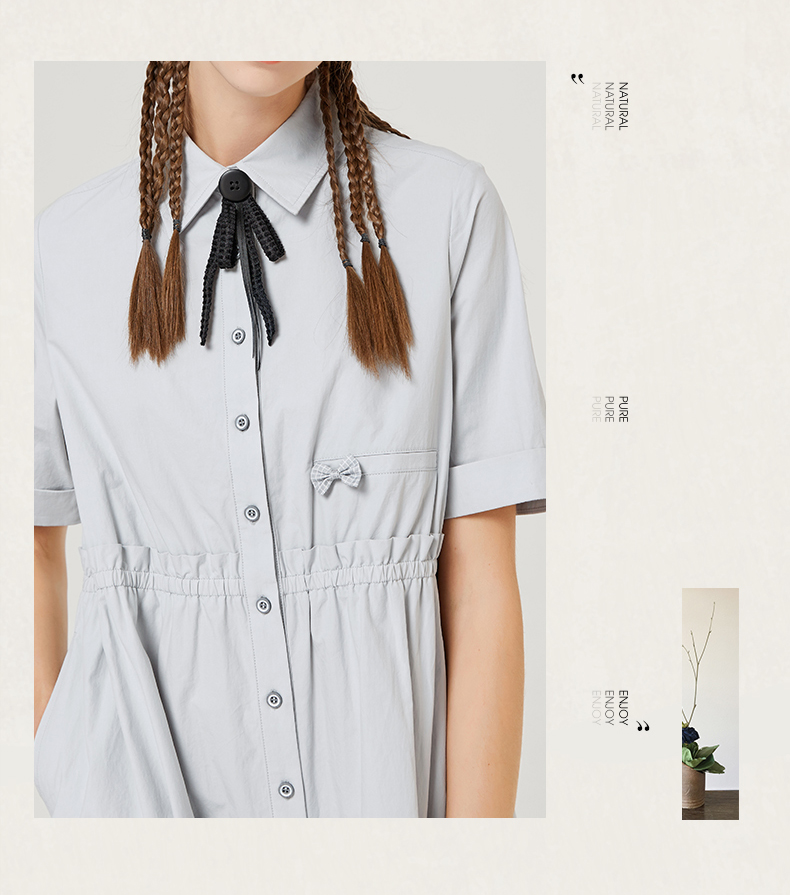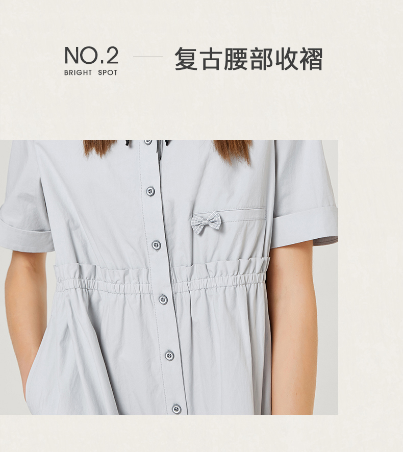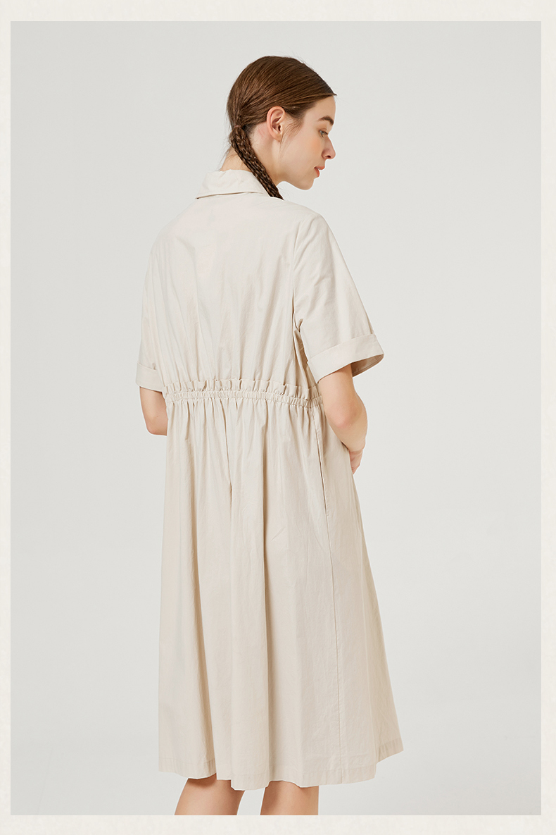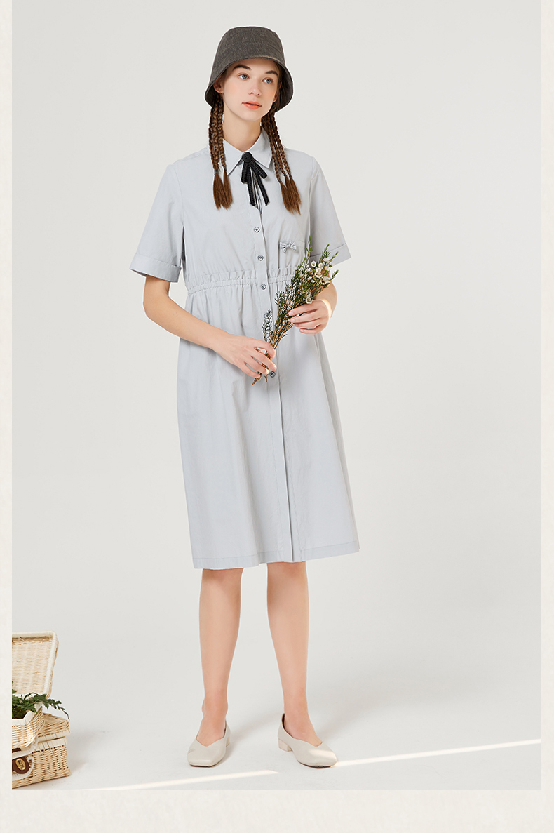 famecoco范可儿休闲宽松纯棉短袖连衣裙女夏季新款气质通勤衬衫裙F223FA012