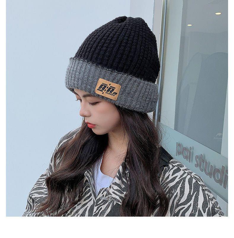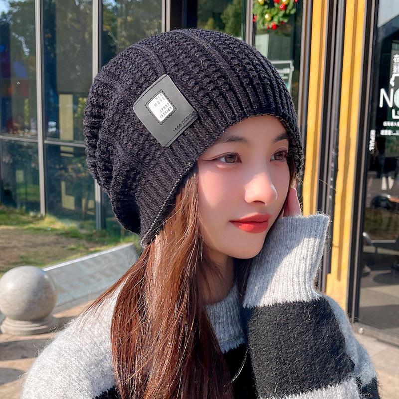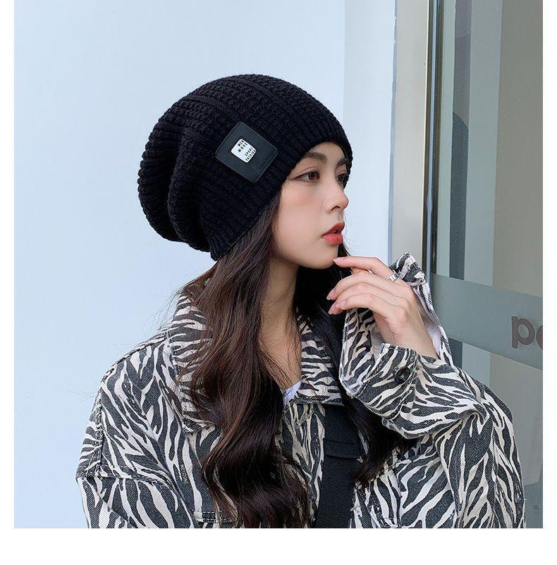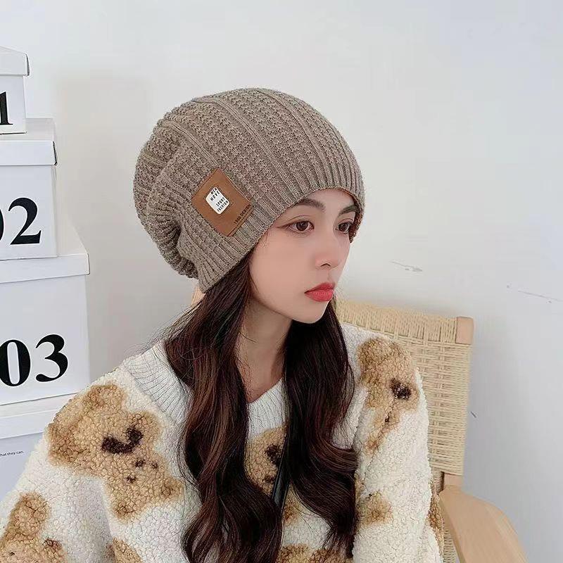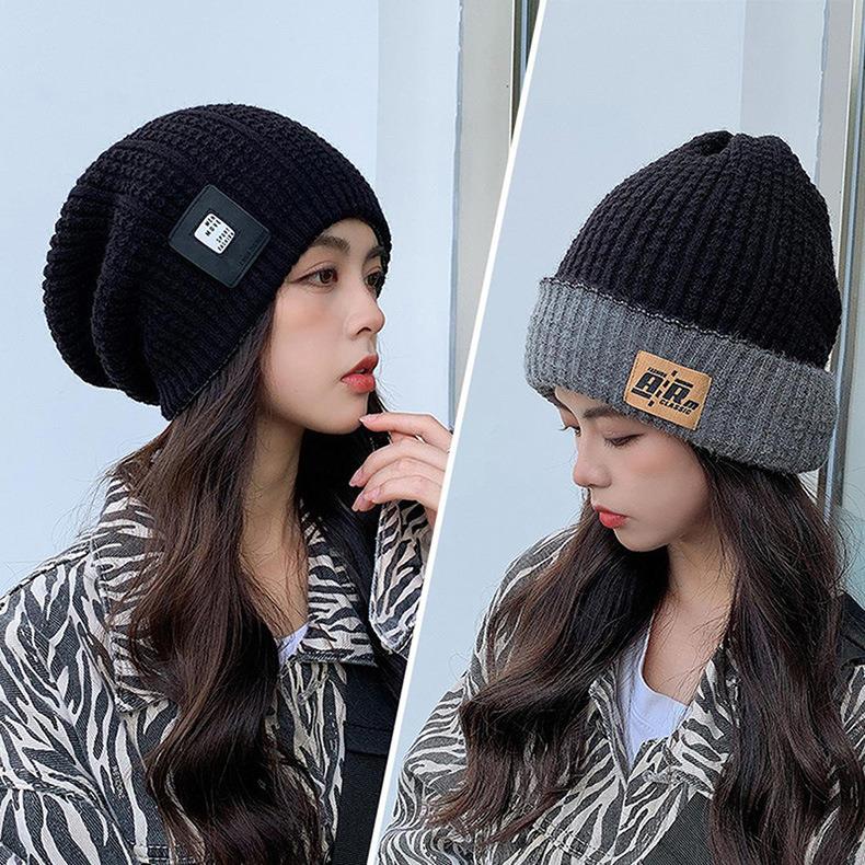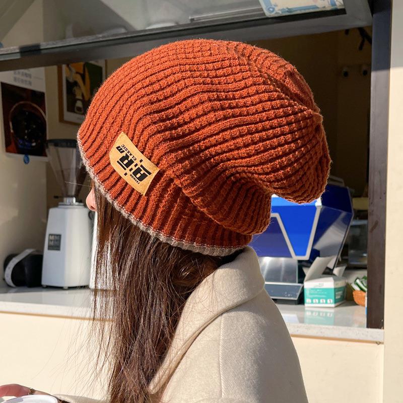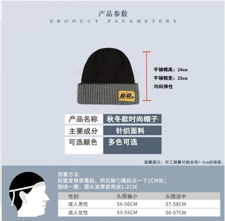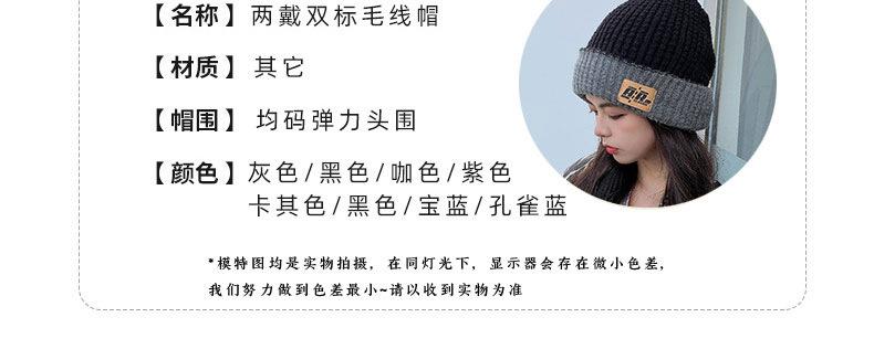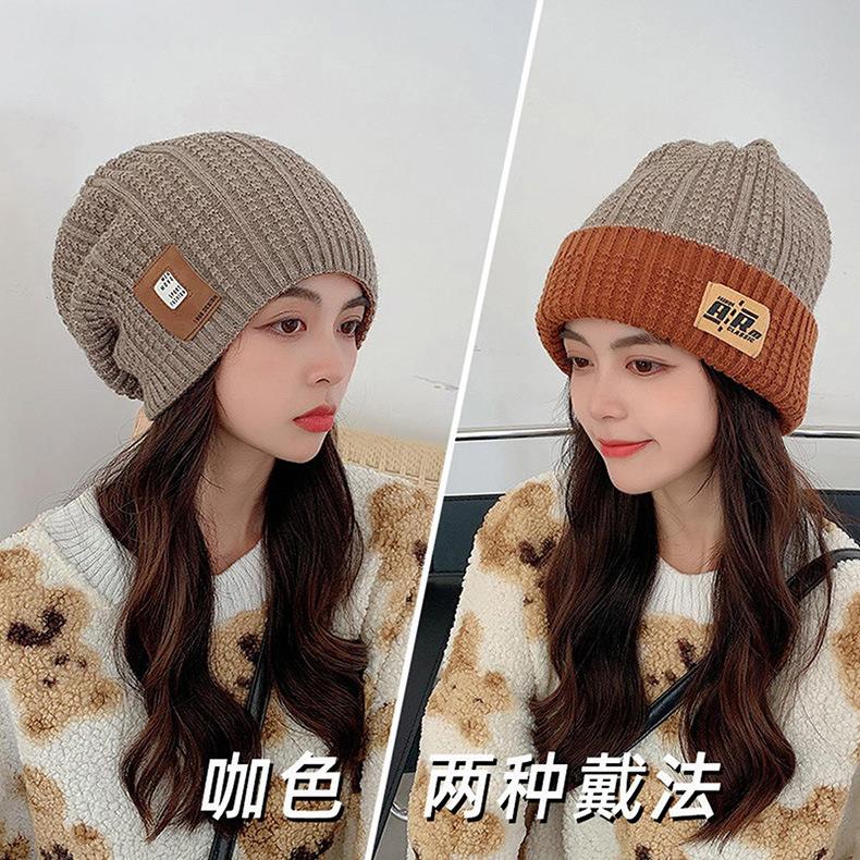 网红帽子女秋冬韩版百搭毛线帽潮双面贴标保暖冷帽大头围针织帽子