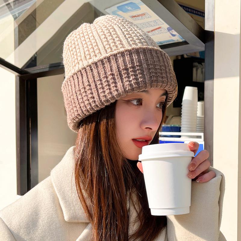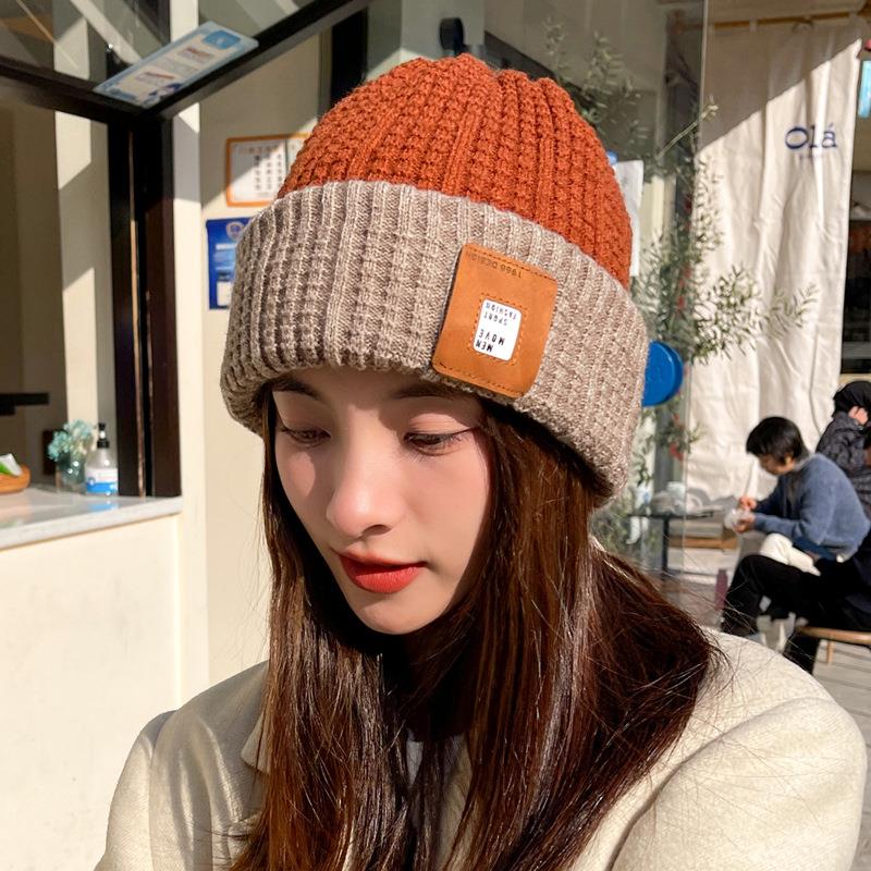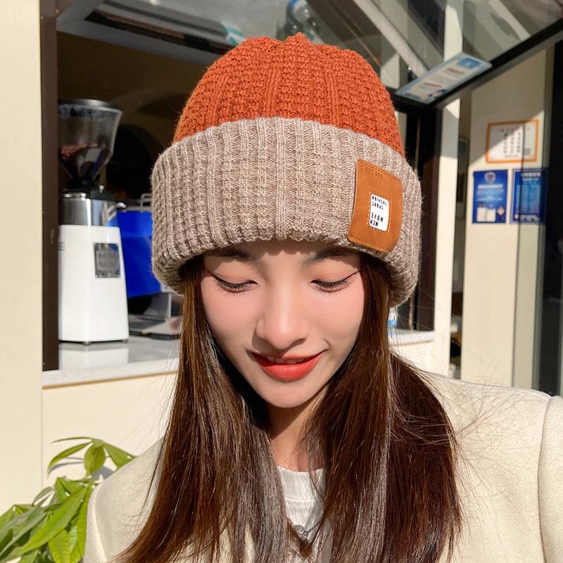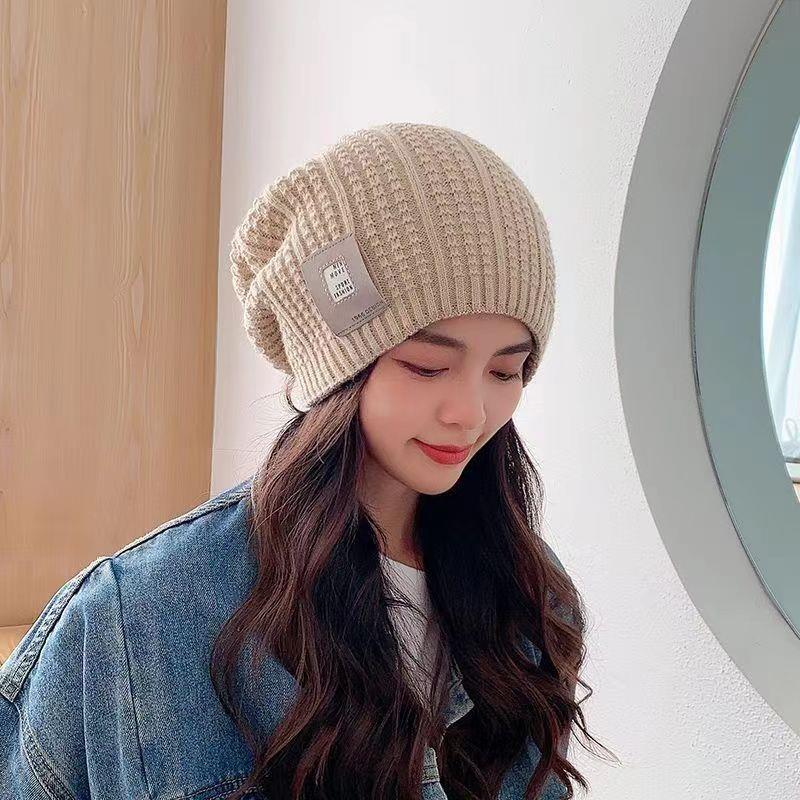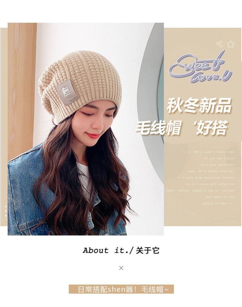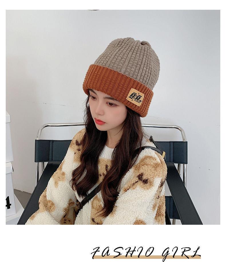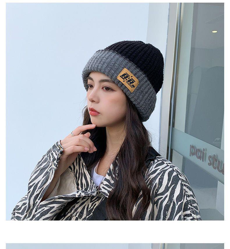 网红帽子女秋冬韩版百搭毛线帽潮双面贴标保暖冷帽大头围针织帽子