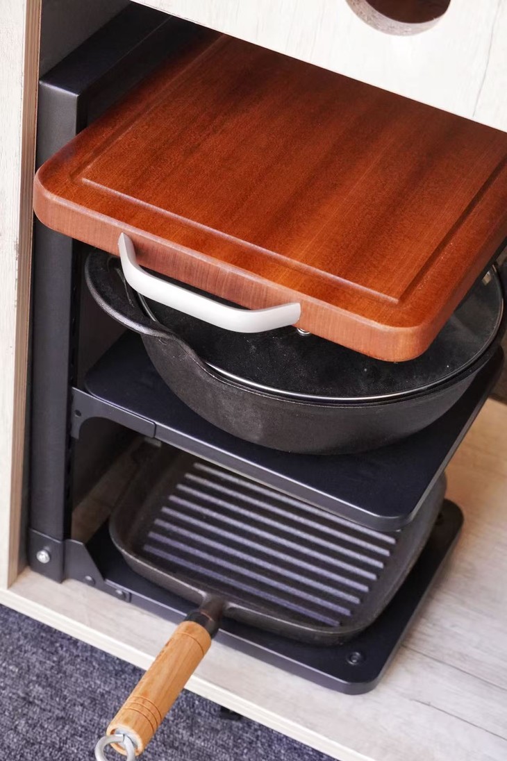 一到赶时间做饭 拉开橱柜想拿一个炒菜锅时 却总是不小心碰倒叠放的其他锅具 各种厨具一起倾倒,真是令人烦恼 尤其是各种尺寸大小锅具混作一团 想要拿取时,翻的叮当作响、乱七八糟