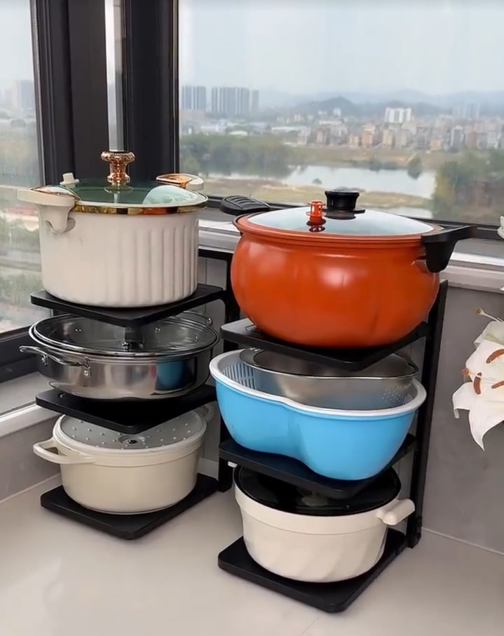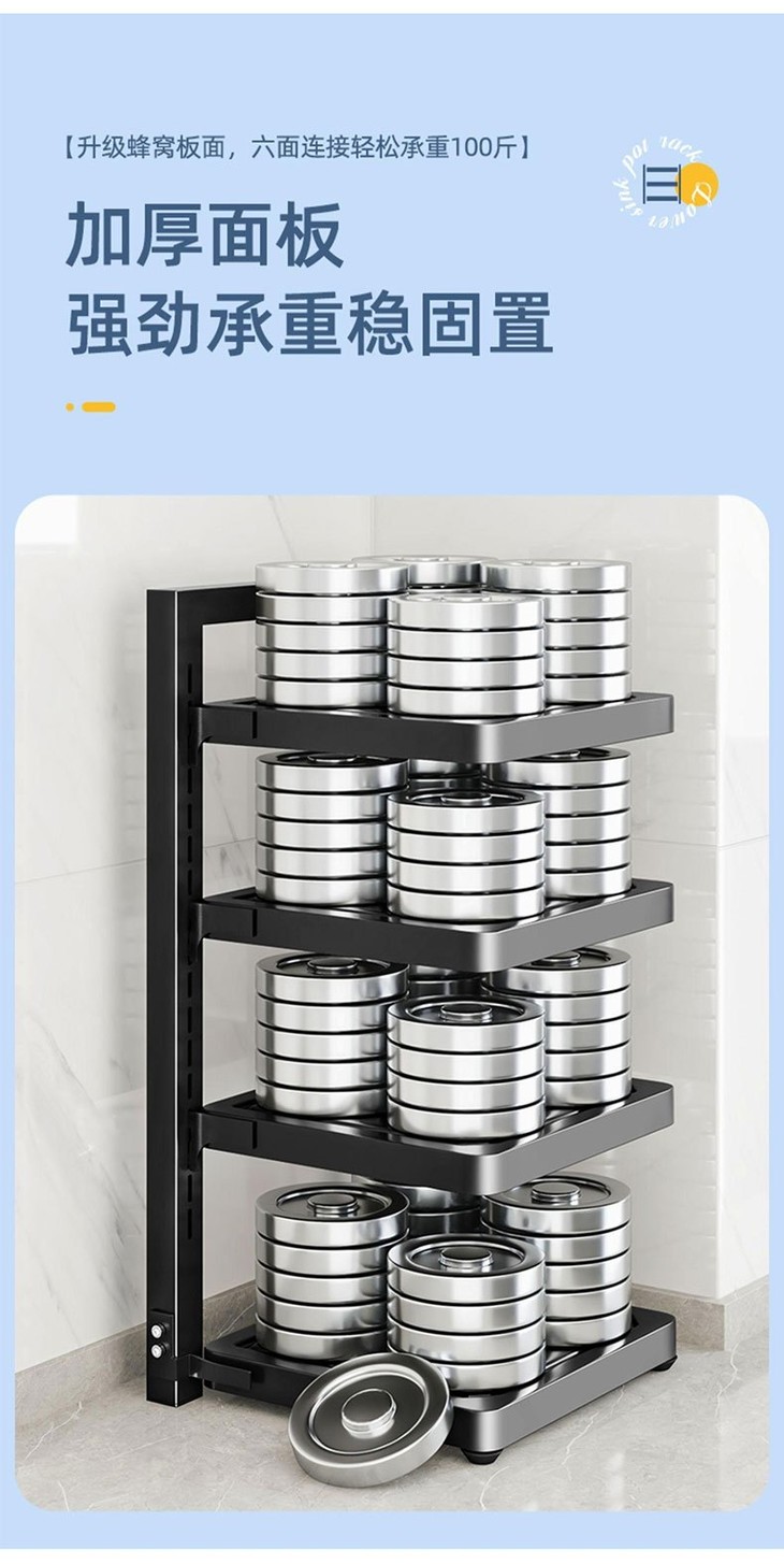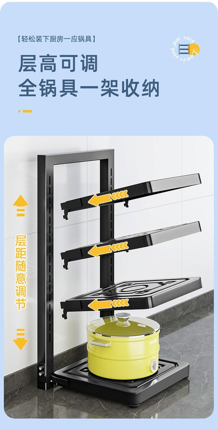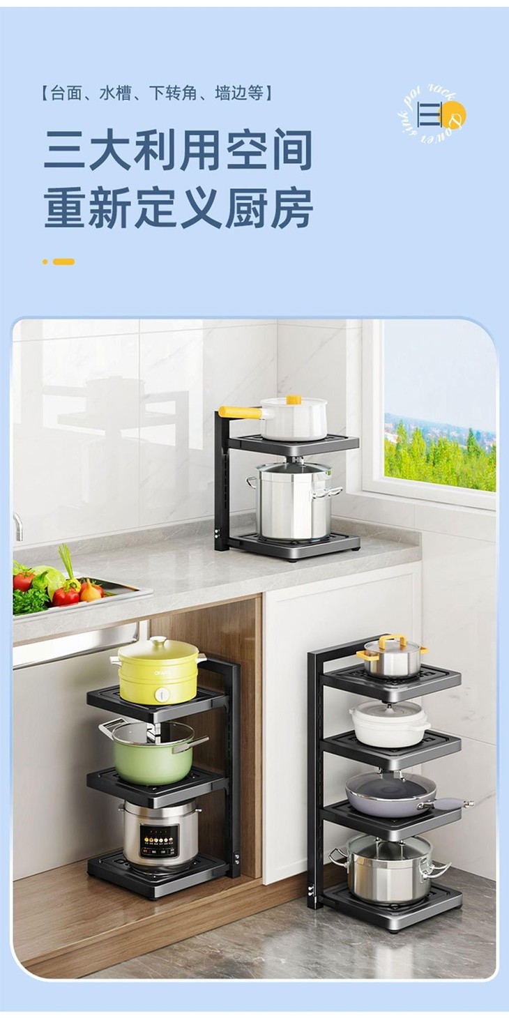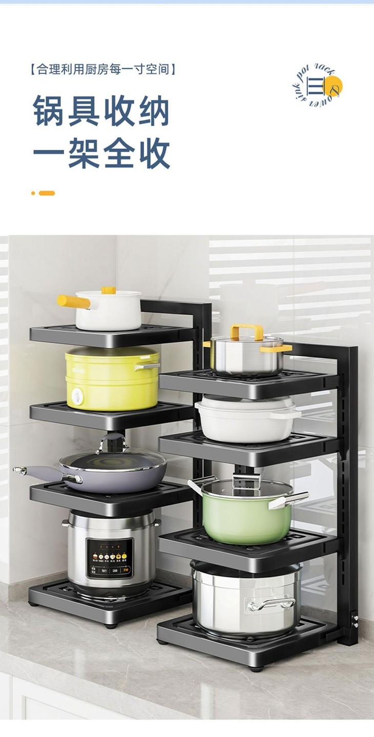 🌸一个顶十个❗❗还厨房一个干净整洁【Trees&wind锅具收纳架】 🌳多层可调节,各种锅具杂物都能分区摆放 ✅层高可随意调节,各种尺寸的锅都能放