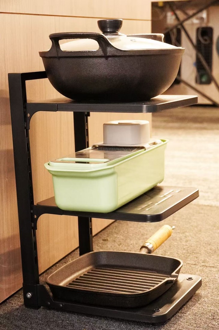 🔺这个时候只需要一个【Trees&wind锅具收纳架】 就能够让所有锅具摆放整齐 可自由调节间距,无论是哪一种规格锅具可以放置 加厚钢材架构,稳固超强承重,经久耐用 厨房锅具收纳问题,直接一架搞定~