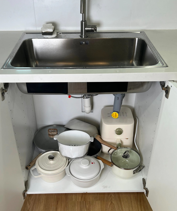 尤其水槽是厨房中最易藏污纳垢的场所 所有的杂物堆积于此 找东西时要翻箱倒柜,不仅显得凌乱 还会影响到人的心情