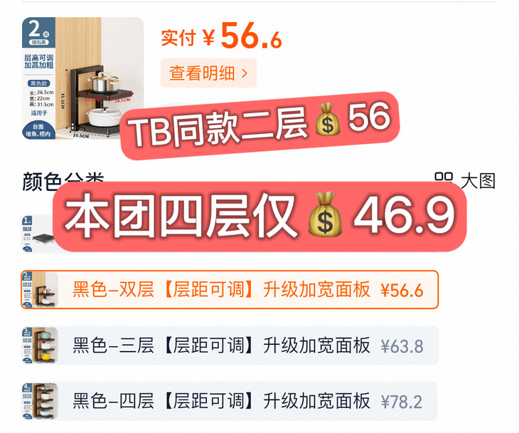 相信大家家里的厨房都缺这样一个置物架 因为真的太实用了 🔥今天开团享超值福利好价 二层💰29.9元,三层💰36.9元,四层💰46.9元 线上同款二层的价格本团直接拿下四层 价格实惠,品质不打折扣,速囤❗