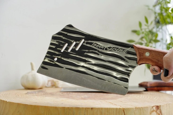 刀具的外观设计也非常精美 🔺锻打锤纹的刀身不仅具有独特的视觉效果 还能有效防止食材粘连 避免了食材粘刀的烦恼,提高了烹饪效率