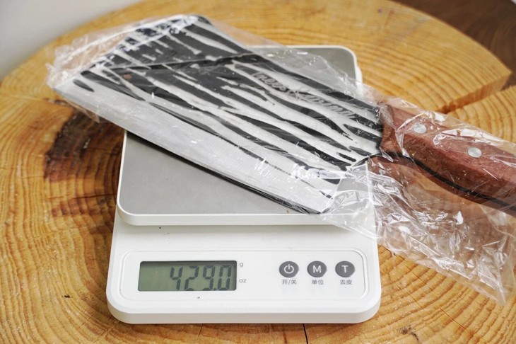 🔺砍骨刀作为厨房中的 “大力士” 在处理排骨、大腿骨、筒子骨等坚硬食材时发挥着至关重要的作用 这套刀具套装中的砍骨刀重430克,重量适中 既能保证足够的砍切力度,又不会因为过重而难以操控