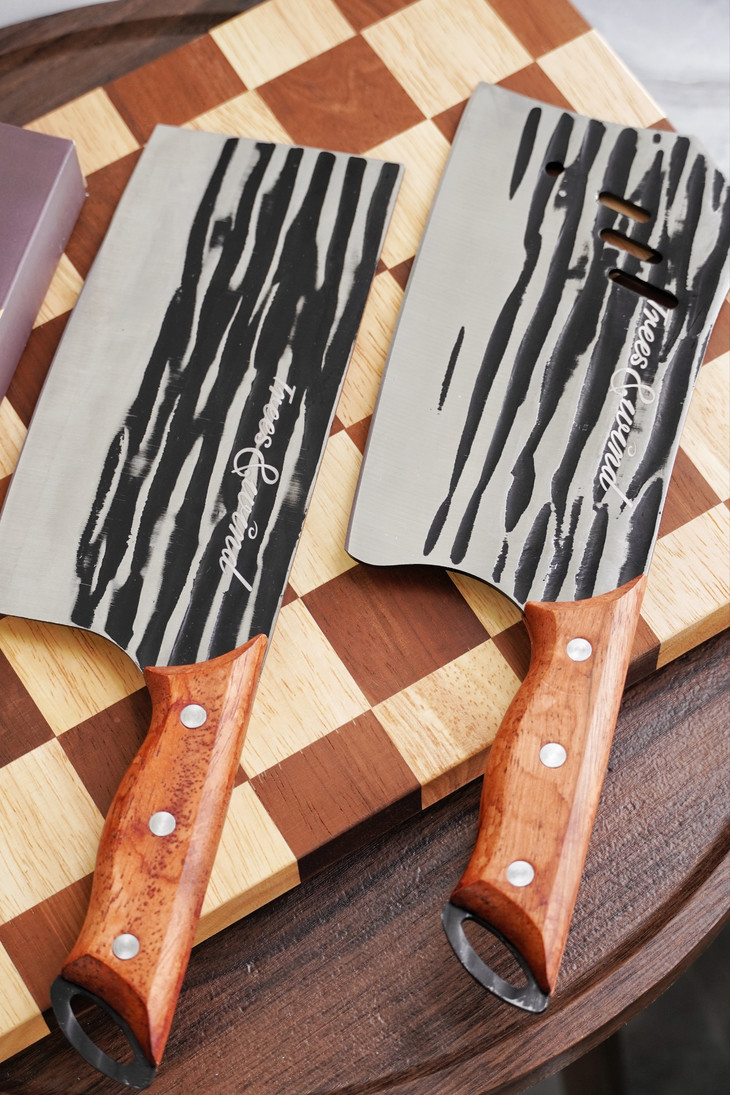 既然说到了中厨刀有多好 那今日强推一套来自刀剪之城阳江的厨房全能技法好刀 🔺Trees&wind锤纹斩切刀+砍骨刀 双刀套装 满足厨房中各类切、砍、剪需求 性价比直接拉满,它就是你执掌美味的魔法权杖!!