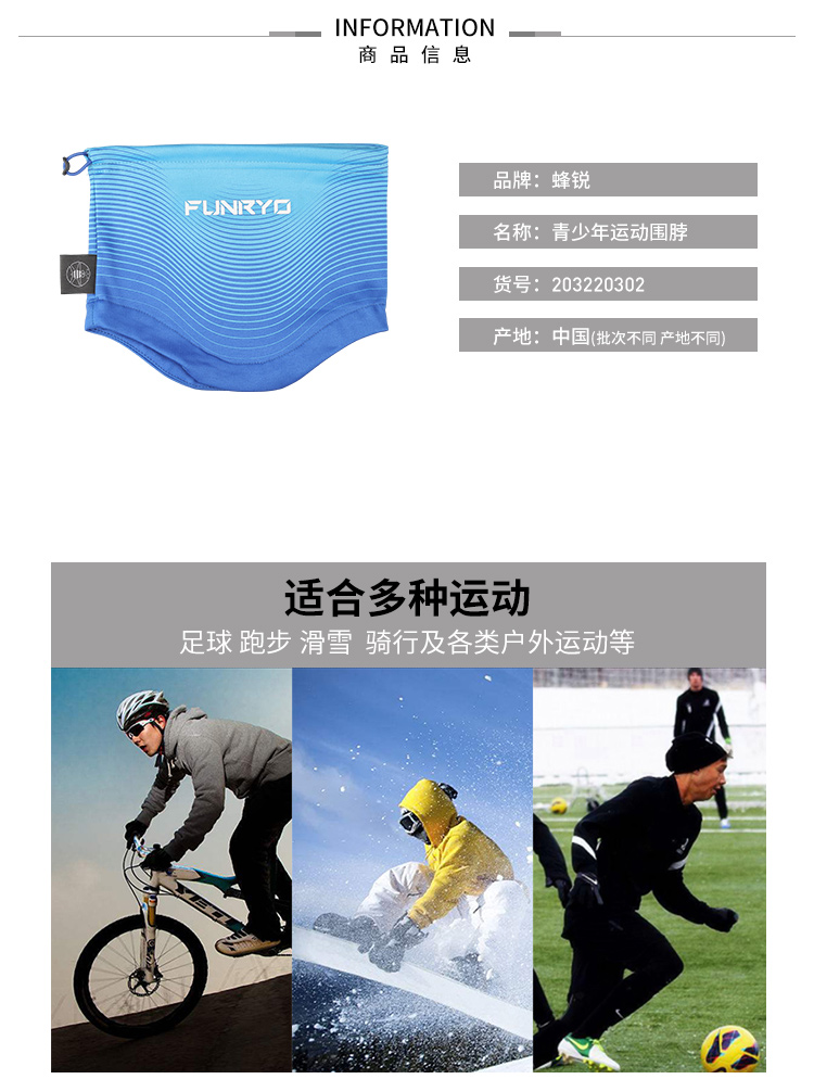 蜂锐FUNRYO青少年2020新款防风抗寒保暖运动围脖围巾