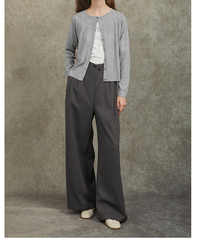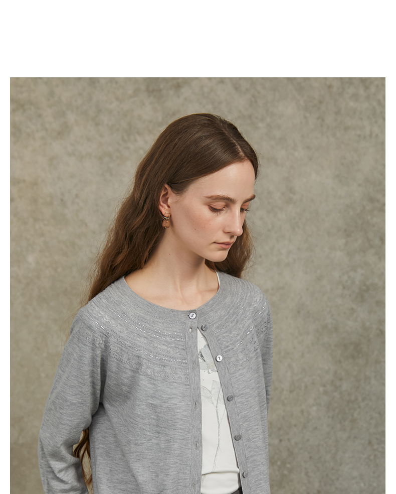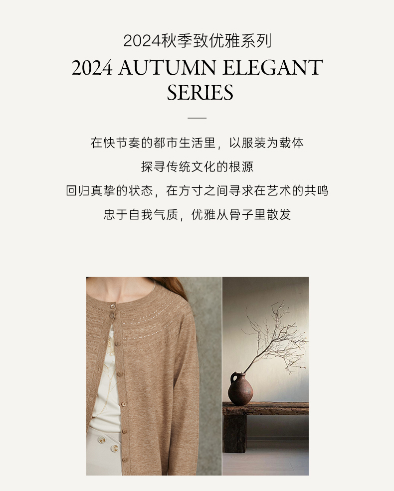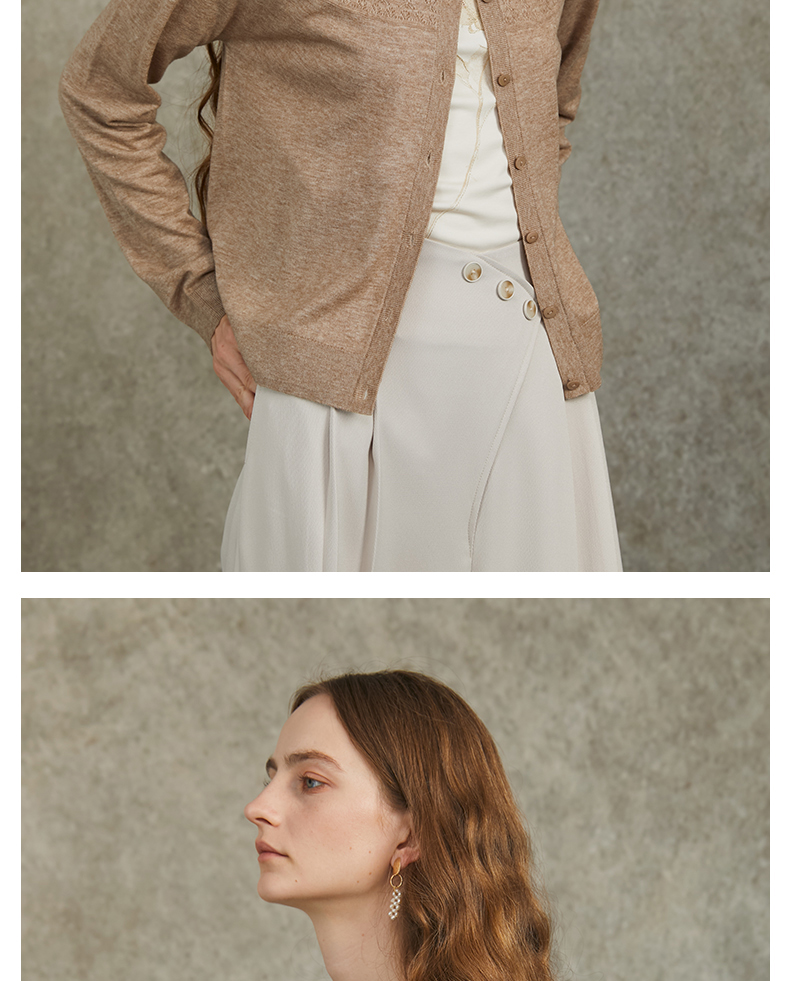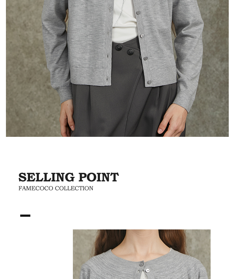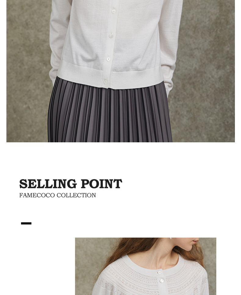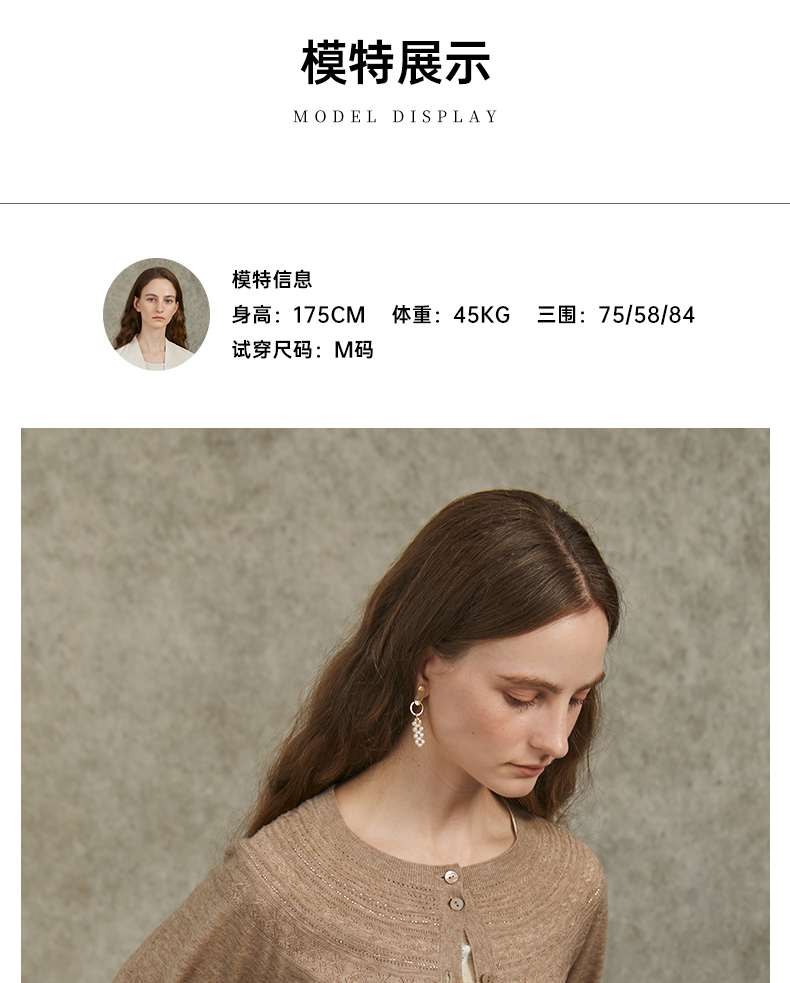 Famecoco范可儿圆领针织开衫设计感镂空雕花羊毛外套FAC6DE005