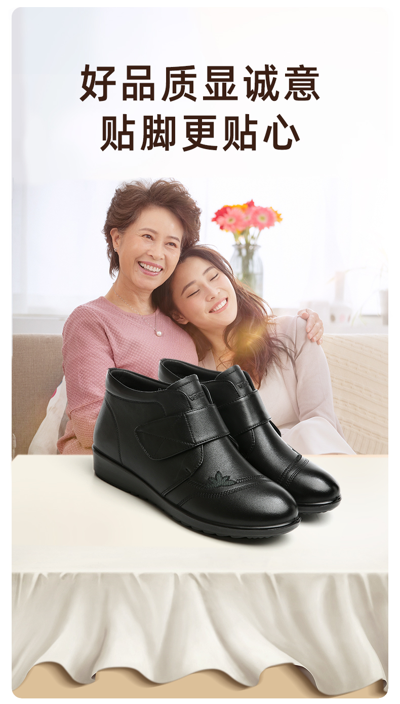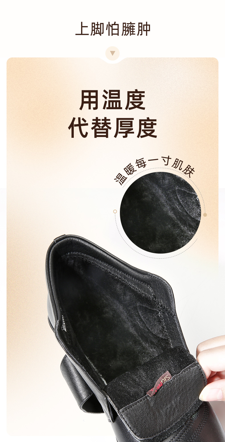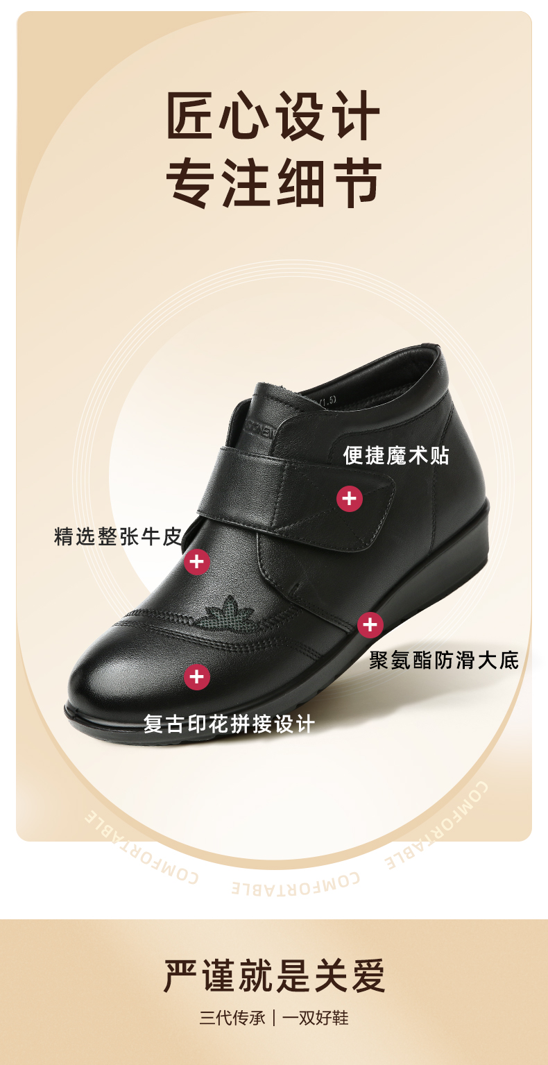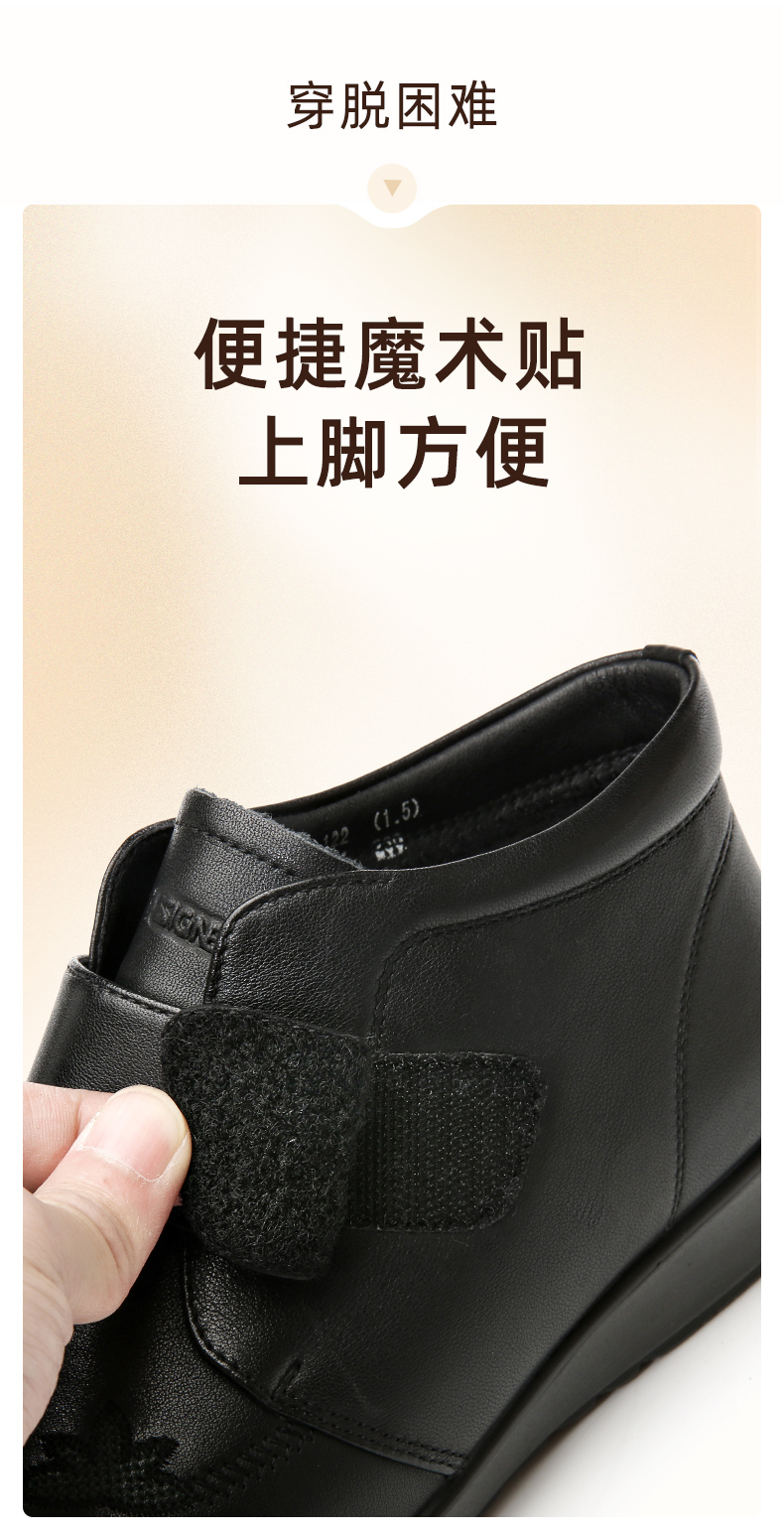 信诺真皮鞋子妈妈加绒女2022新款秋冬季中老年人休闲皮鞋平底棉鞋22M630-121