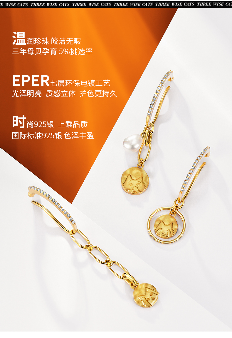 卡蒂罗 三不猫纯银耳饰小众设计高级感珍珠长款耳坠单只生日礼物