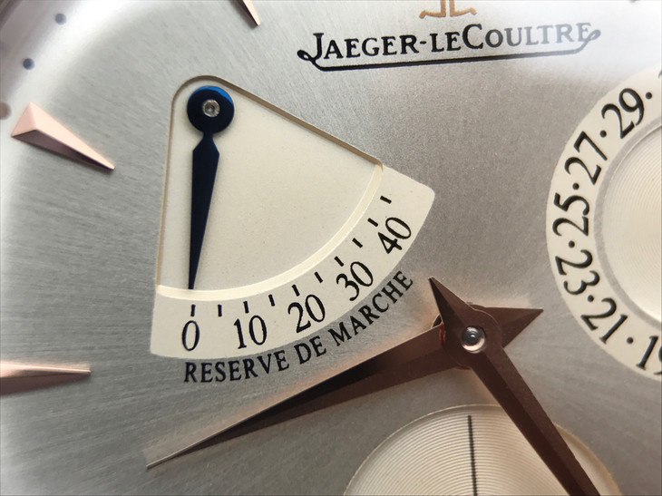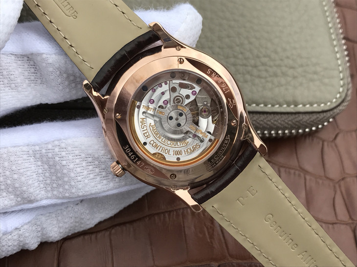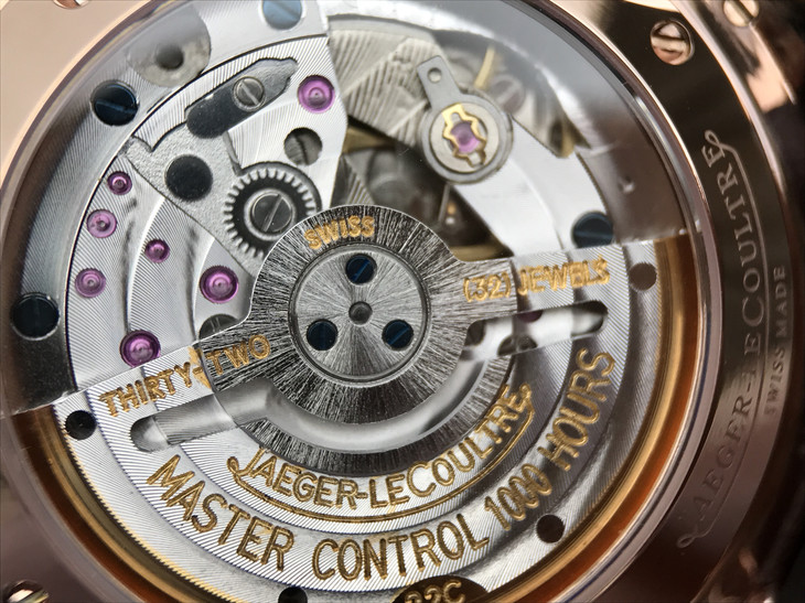 积家Q1372520小丑v6版,39mm标准尺寸。克隆原版938机芯:1、表盘10点钟位置动能显示窗的刻度0对准了英文开头字母R,和原装字面一摸一样。2、两点钟刻度对准了日历小盘的数字刻度5。3、和正品指针一样指针为一半抛光一半喷砂。原版克隆正品938机芯,反复调试机芯没有问题才出货,真正乱真的小丑。