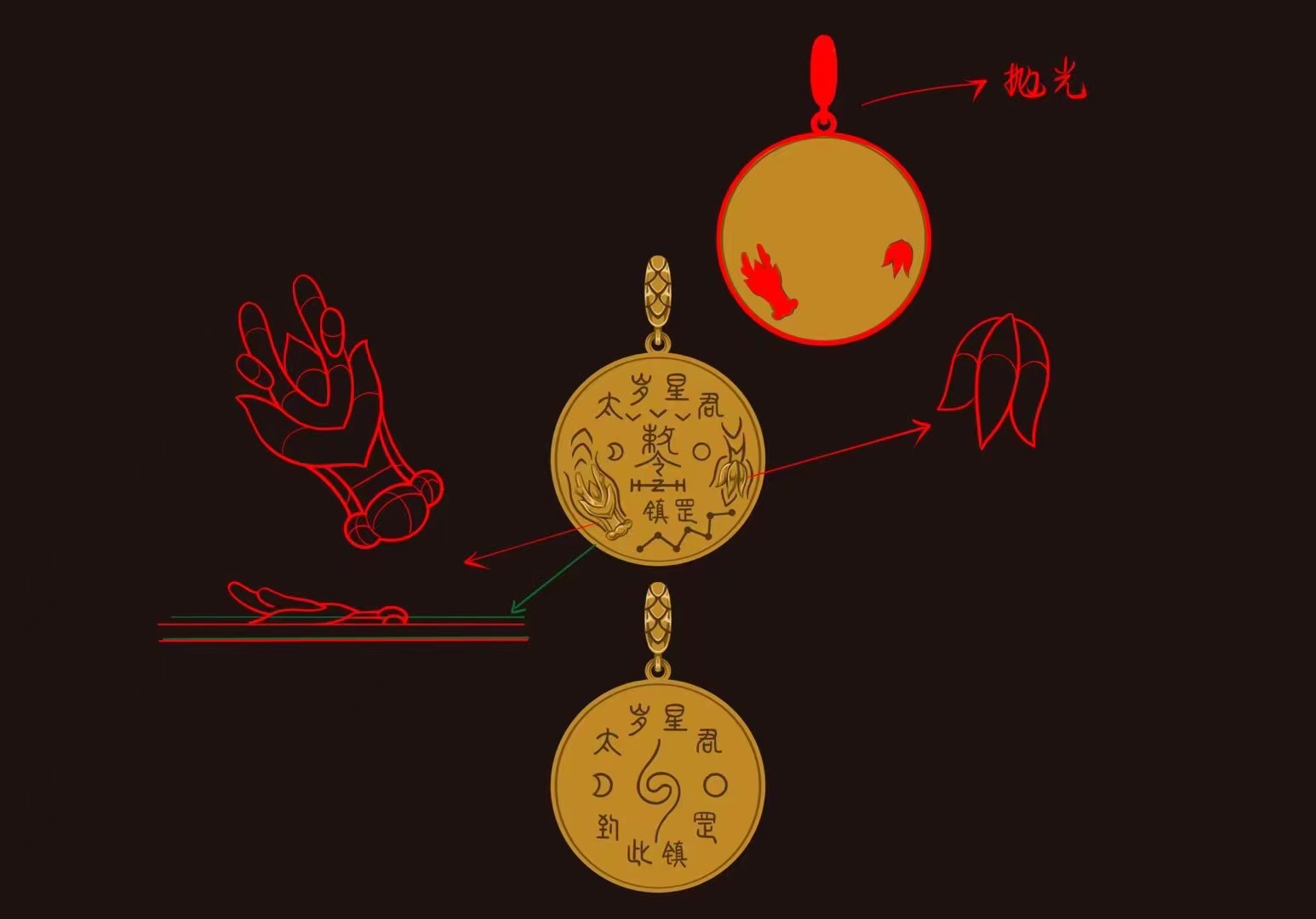 来吧,我们来感受一下金版破太岁的细节。2024破太岁金版我们做了三个款式: